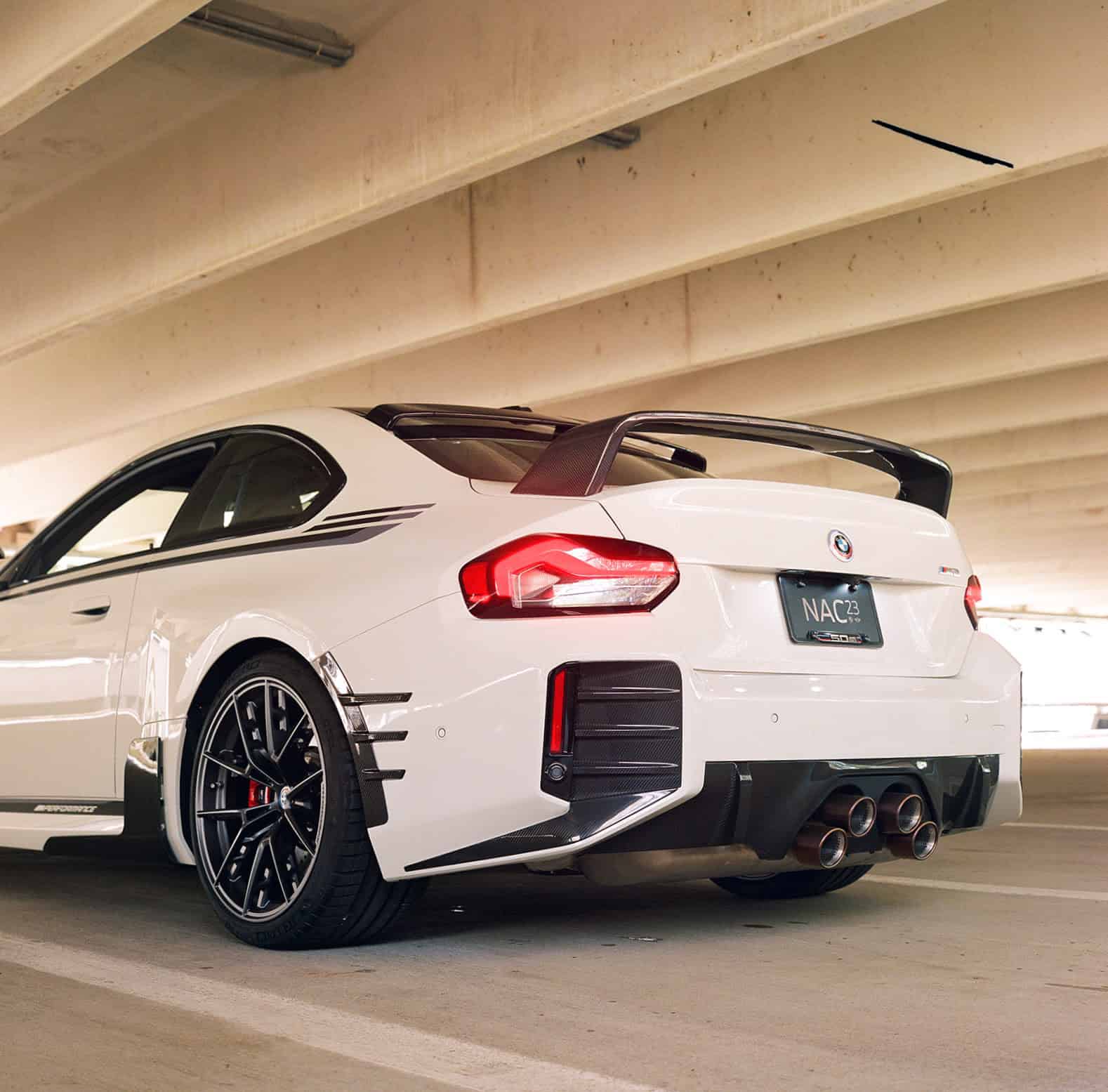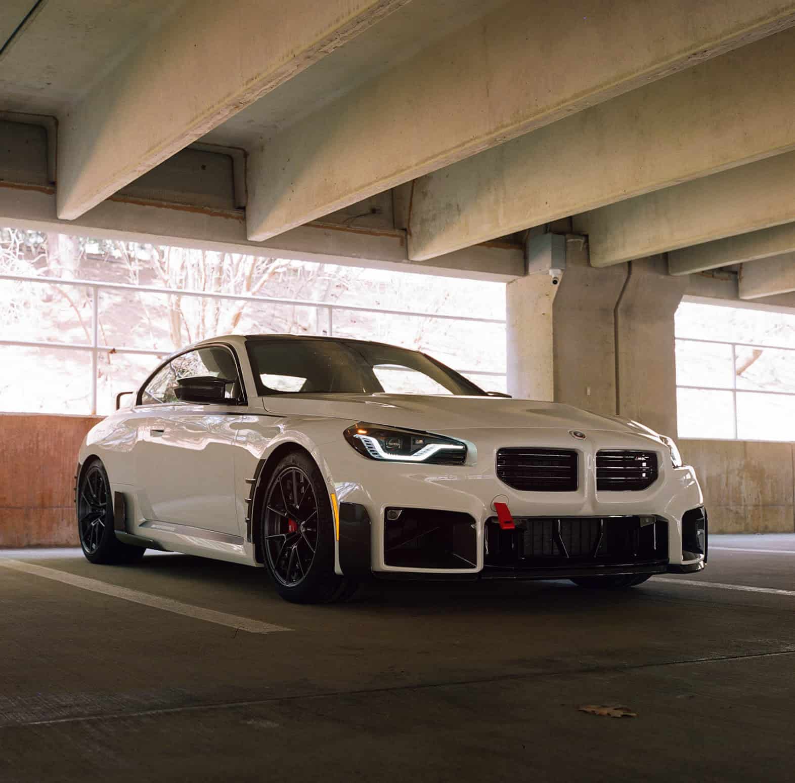 The actual parts themselves in these photos aren’t anything new, as we’ve already seen the M2’s suite of M Performance parts. However, the M2 that BMW kept trotting out to display its M Performance parts was wrapped in an orange livery that isn’t available to customers, which was a bizarre decision. Sure, it looked interesting but it gave off the completely wrong impression of what customers could expect from their cars. This one looks just like a car that customers can expect when they spec M Performance cars on their car, in a realistic location. It is cool to see what the heavily customized M2 looks like in a very real life setting, like a parking garage. It proves just how well the M2 will stand out with these parts.
