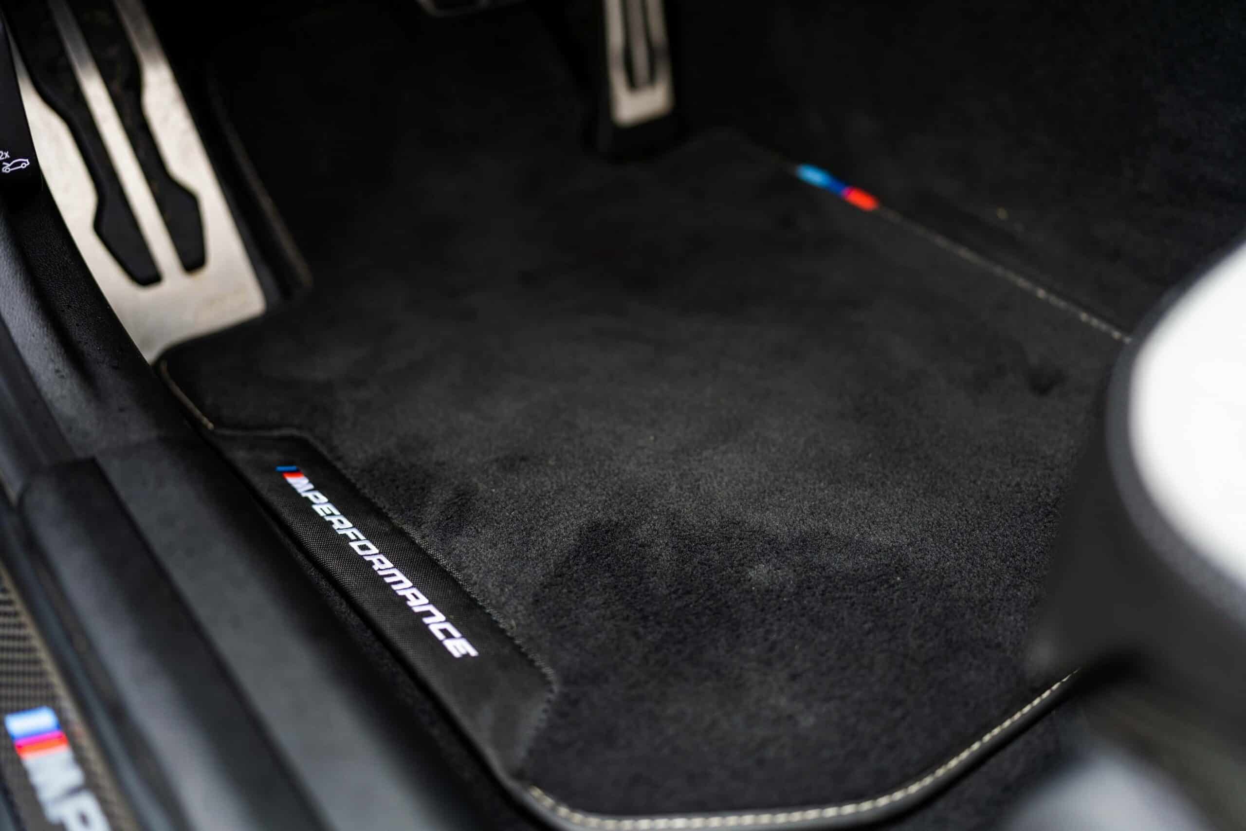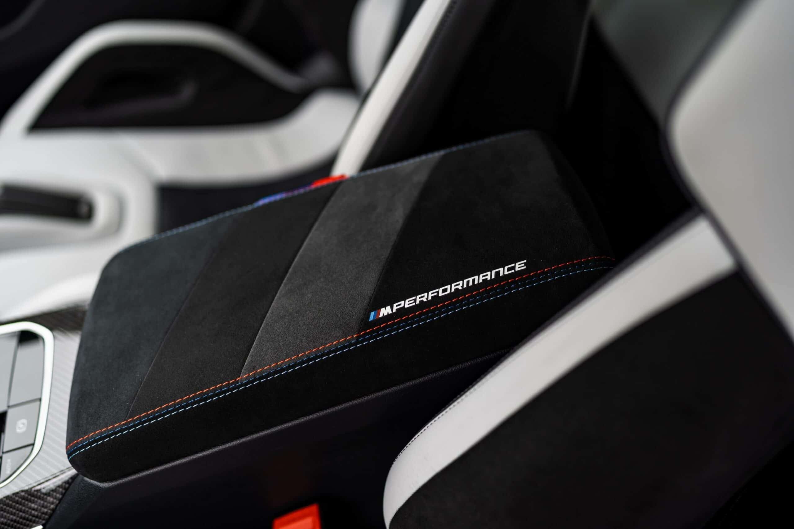 The interior is also far from being standard since it has the optional carbon bucket seats flanking a central armrest wrapped in Alcantara while carrying M Performance branding. The latter is also noticeable on the floor mats and carbon fiber ornament on the side sills. As for the upholstery, it’s a two-tone Silverstone/Black look that extends onto the door cards and the bottom half of the dashboard.