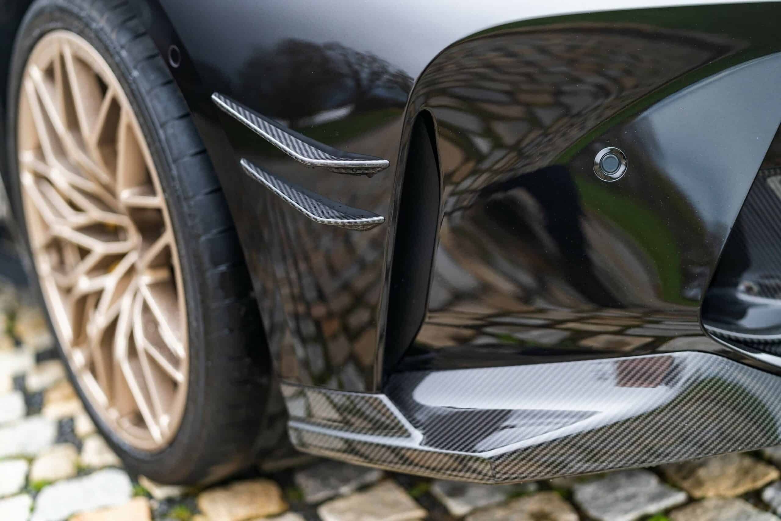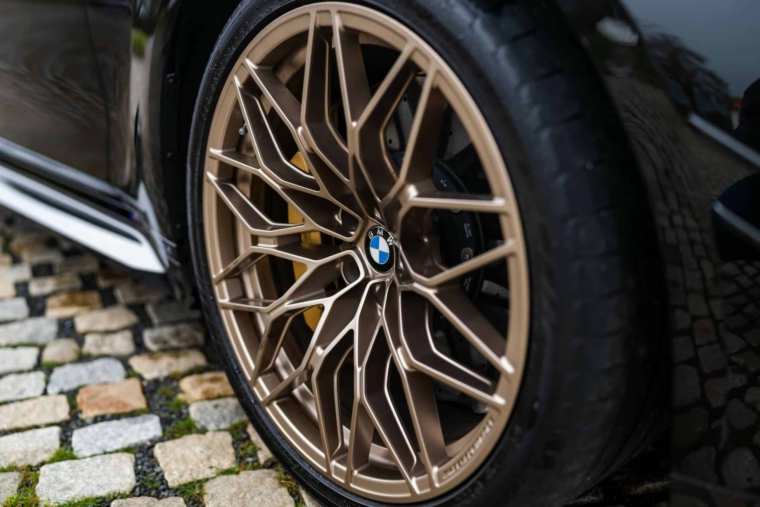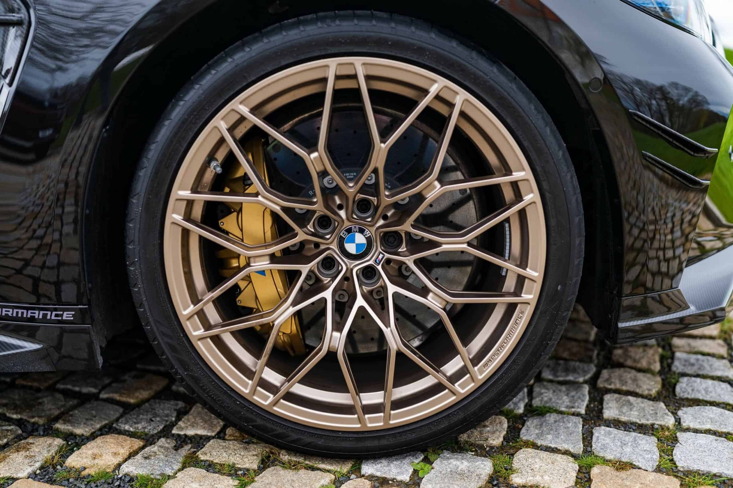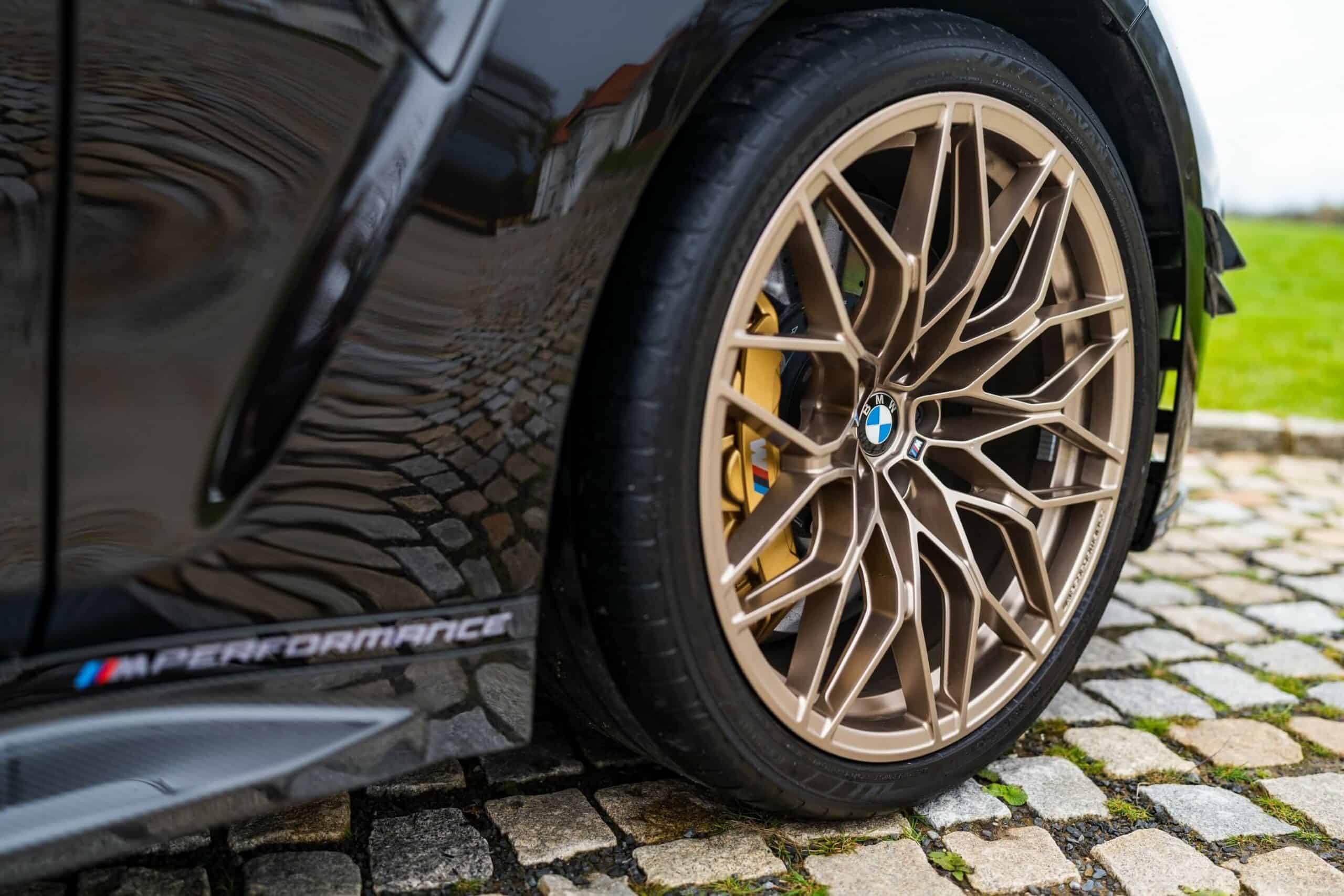You can spot one of the upgrades from a mile away as the AMG C63 Estate rival was fitted with the 1000 M Gold/Bronze wheels part of the MPP catalog. These strikingly contrast the dark body while blending nicely with the gold calipers reserved for the superior brake setup. With the M3 Touring featuring a dark finish, the carbon fiber add-ons might go unnoticed until you get closer to the car.