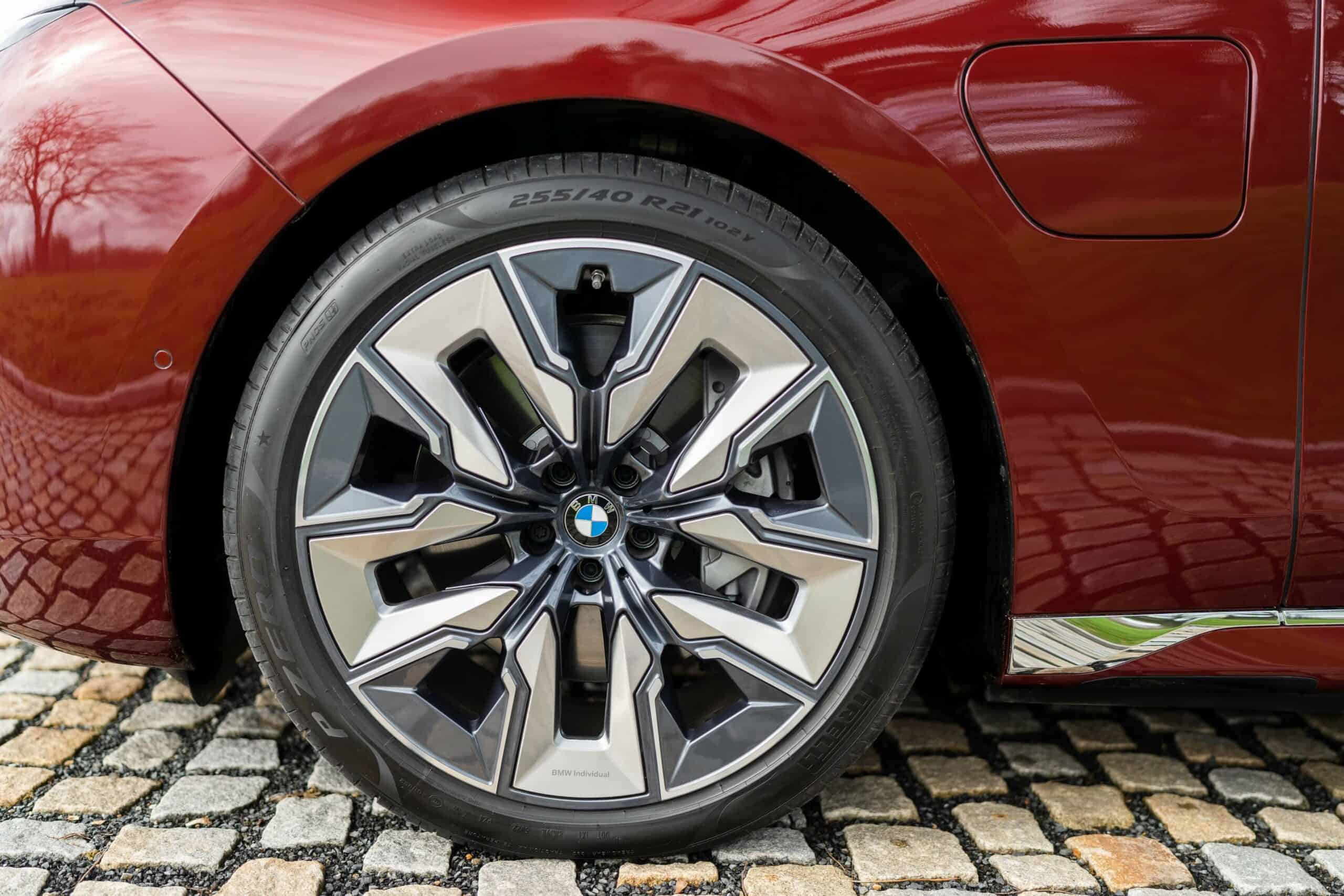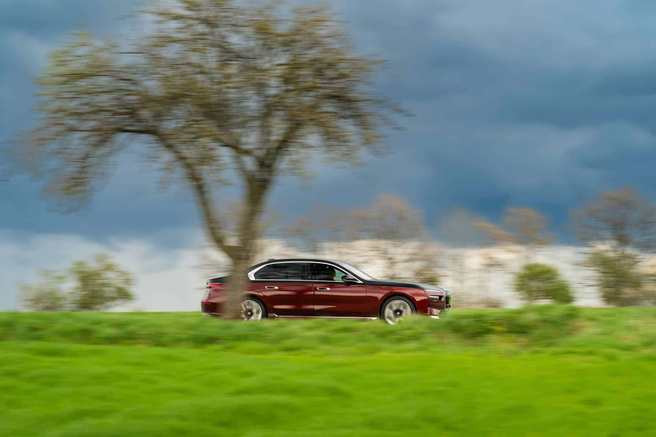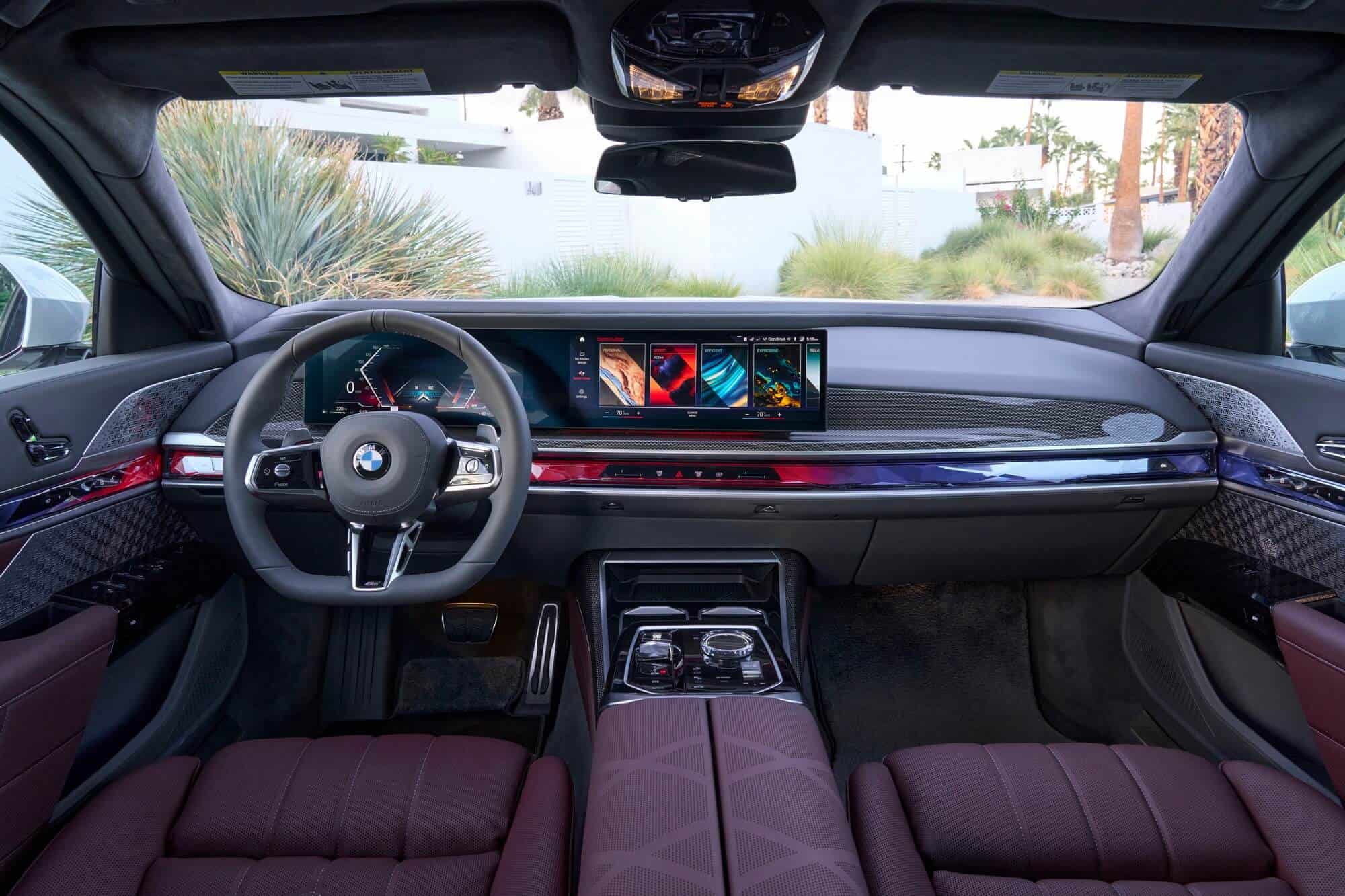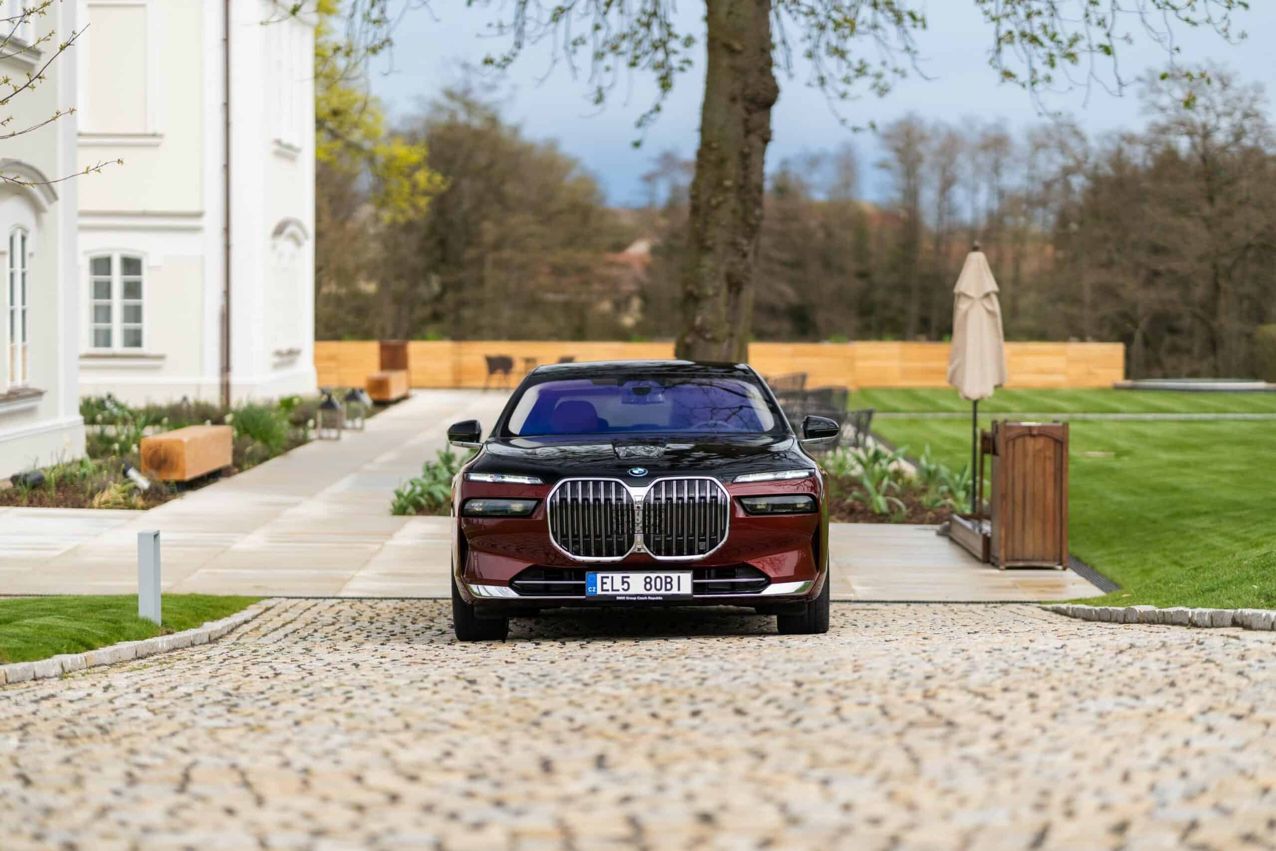 As you can probably tell by the chrome accents, it does away with the M Sport Package (or the M Sport Package Pro) and sticks to the base Design Pure Excellence trim. The Mercedes S-Class rival is wearing a two-tone paint by combining Aventurine Red Metallic for the bottom half of the body with Sapphire Black for the upper section. It rides on the larger 21-inch wheels featuring a bi-color finish.