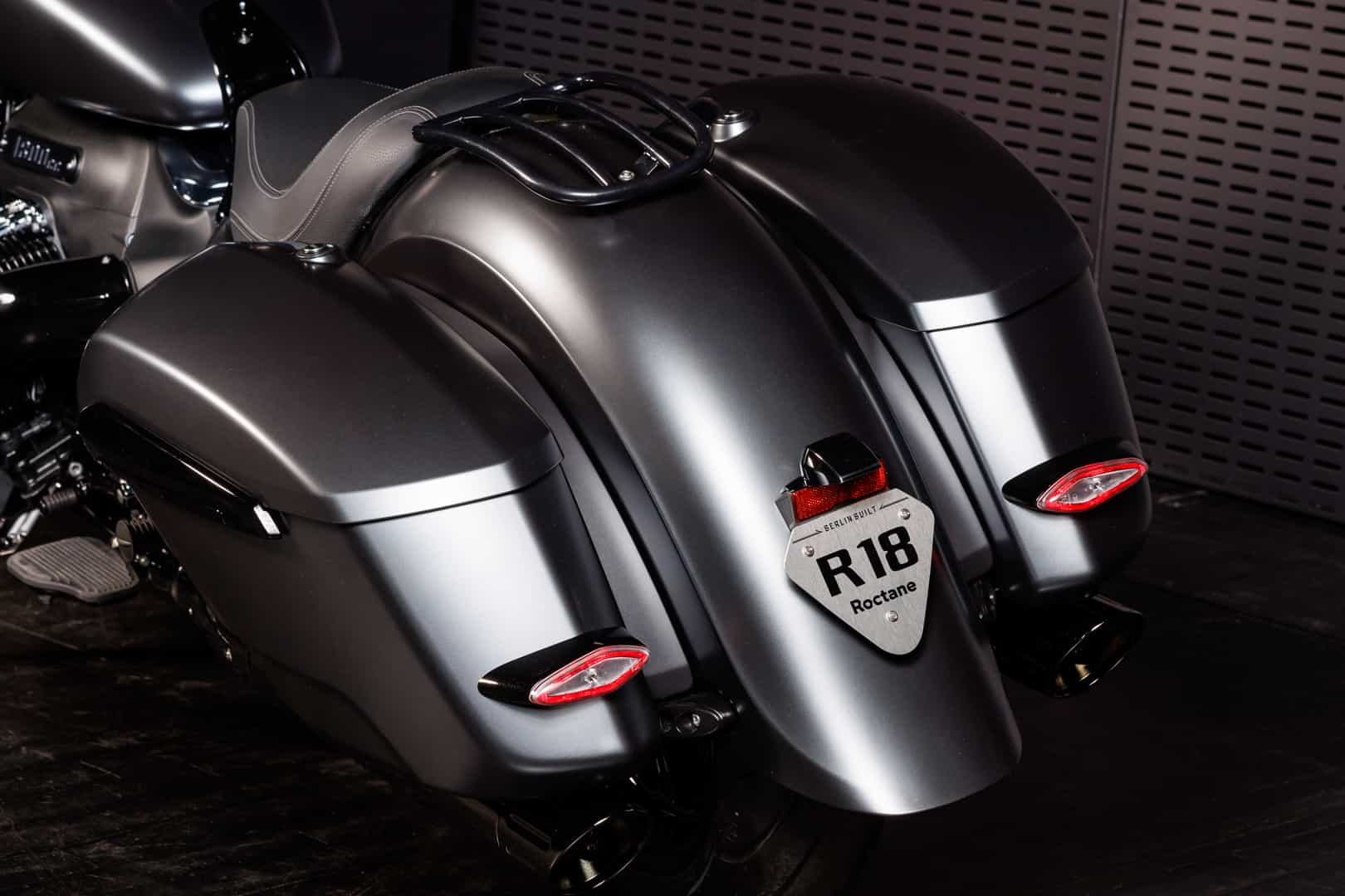The Roctane’s custom bagger-style (thanks to the “saddle bag” cargo cases mounted to the sides of the rear) telegraphs the bike’s long-distance cruising attitude. That’s ultimately what the BMW R 18 Roctane is for, crossing vast amounts of land in one sitting, without being fatigued or bored. In recent years, BMW has been more well known for high-performance bikes, rather than grand touring ones. So the R 18 Roctane is a good refresher to the public that BMW has been good at such bikes for decades. To remind riders of the brand’s two-wheeled heritage, the Roctane’s central instrument dial reads “BERLIN BUILT.”