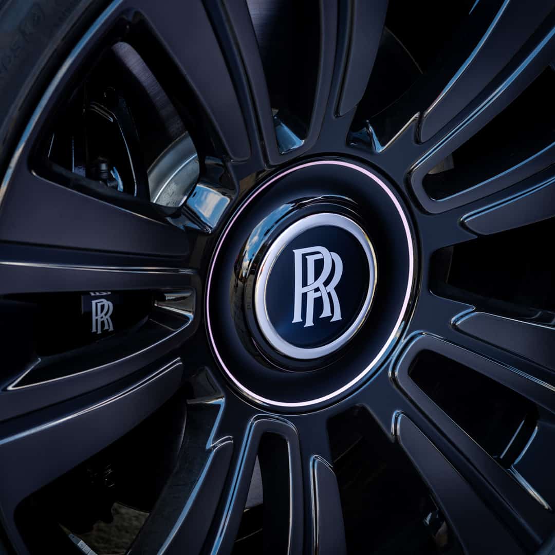 A bespoke rose logo is embroidered into the seat backs and applied to various different surfaces throughout the car, including the rear seat waterfall and the tray tables. It’s also seen in the LED Startlight headliner, as Rolls created the rose in lights.