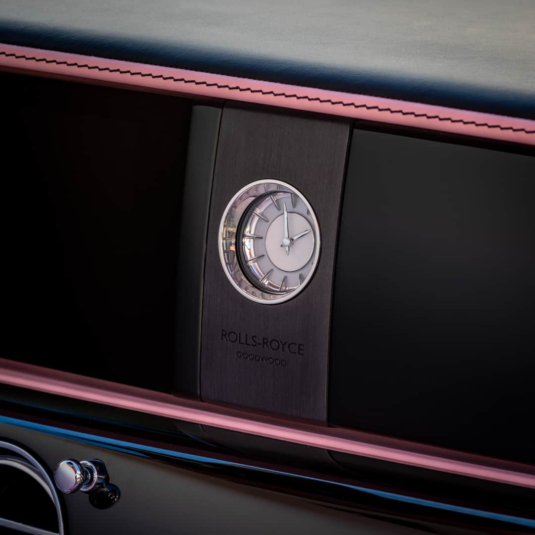 That same color scheme makes its way to the inside, as well. It’s a mostly monochromatic interior, color almost entirely in Champagne Rose. Only black trim, a black dashboard top, and black stitching contrast the luxurious pink interior. Here is where Rolls-Royce sets itself apart from other automakers, too. To make the entire cabin one consistent shade of Champagne Rose, it actually created several slightly different variants of the color, so it remains consistent throughout different materials. Different materials reflect light differently, which can make its look vary to the human eye. So Rolls adjusted the color according to each different material, so that doesn’t happen.