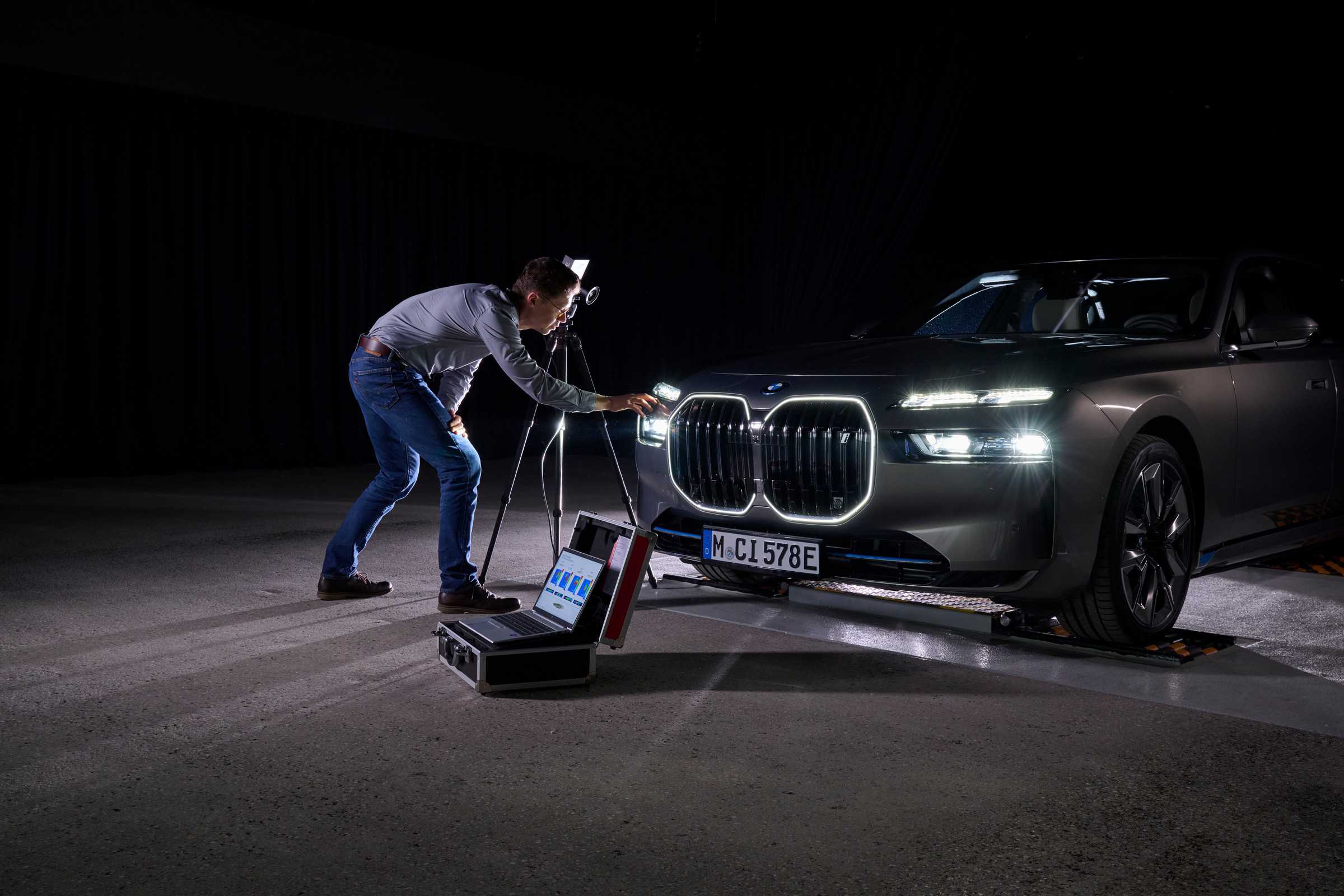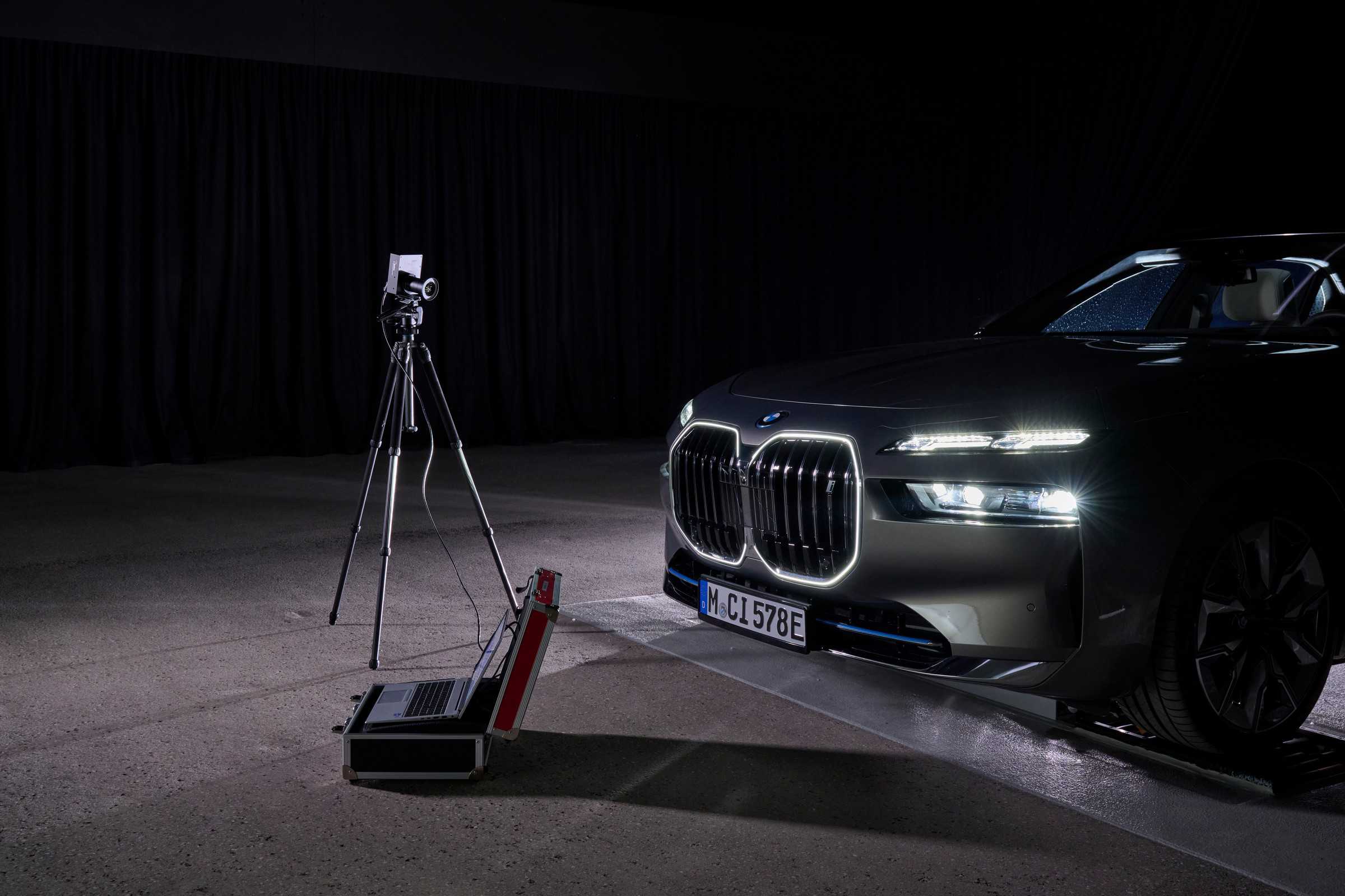 The test wall alone is 18 meters wide and three meters high and is being used to analyze future highly adaptive headlights. There’s also a daylight wall measuring ten meters wide and five meters tall to test turn signals and daytime running lights. Even BMW’s so-called “light carpets” can be tested there.
