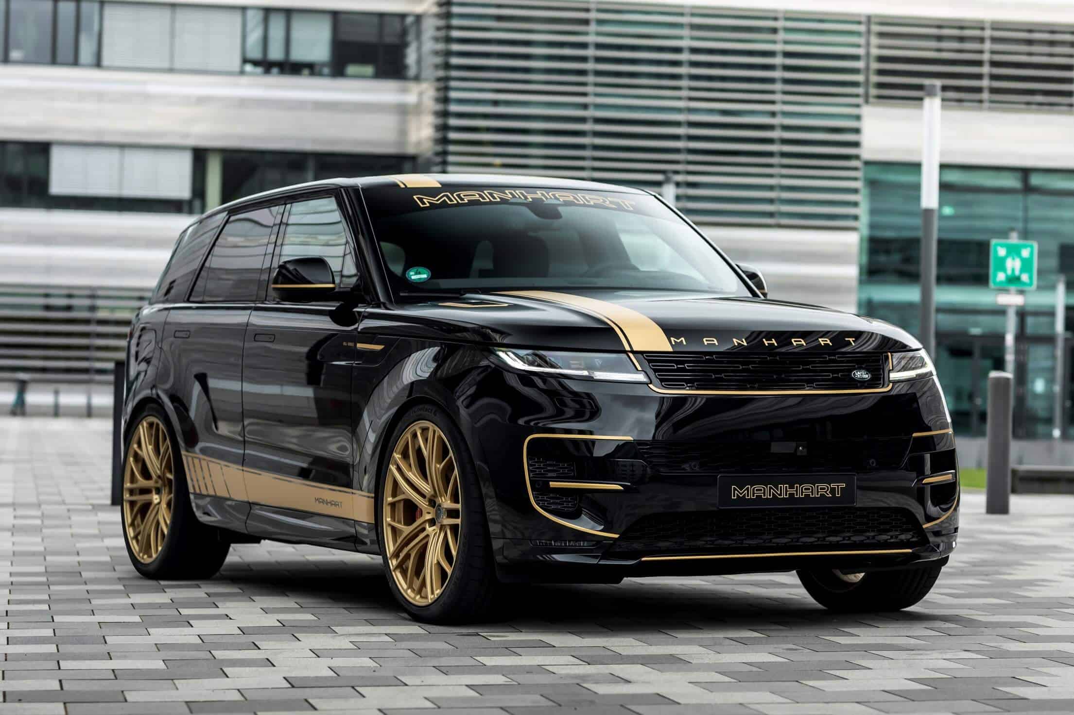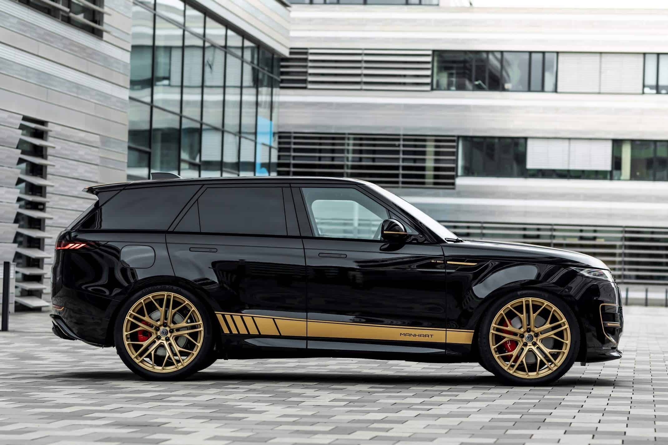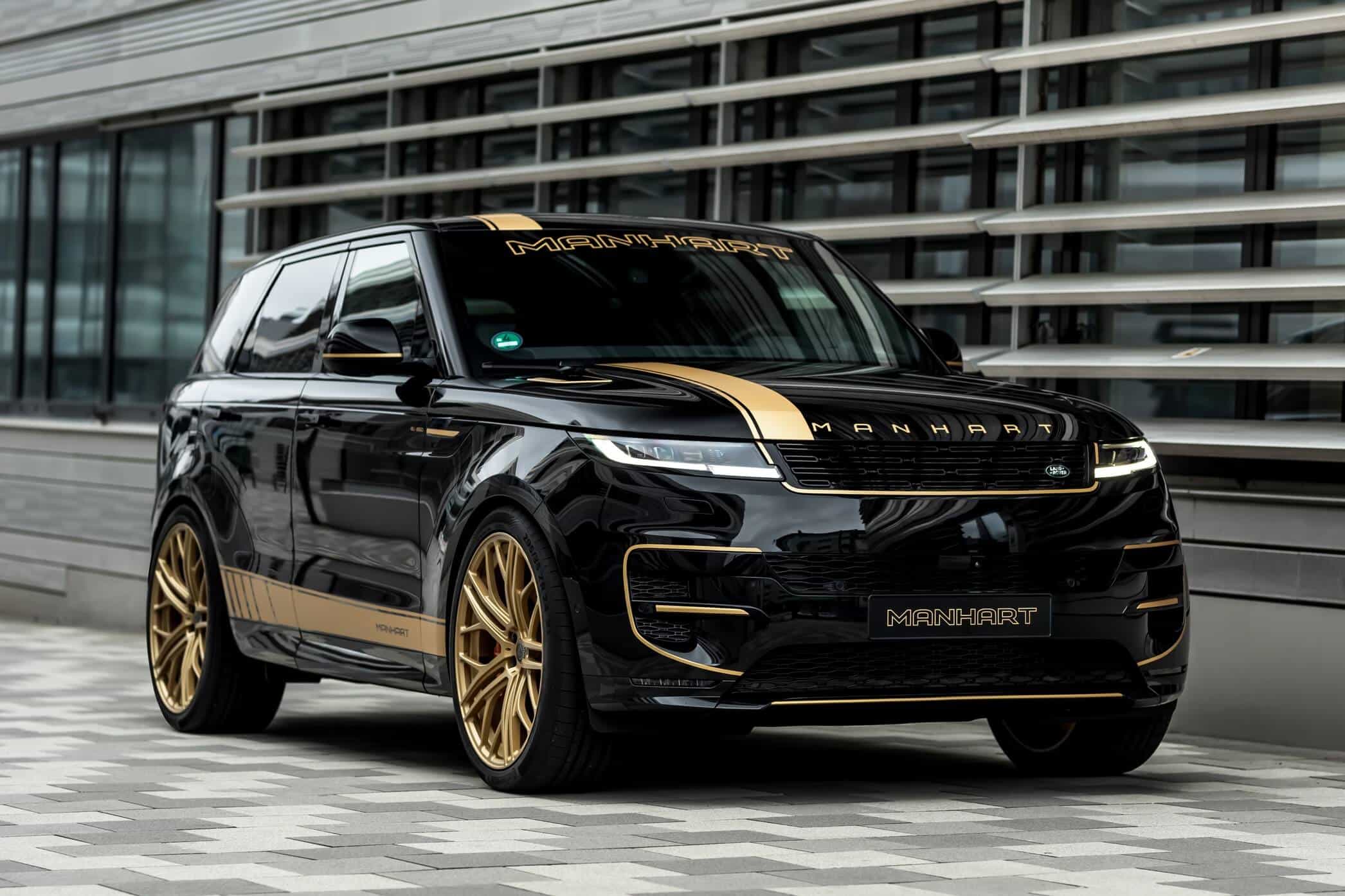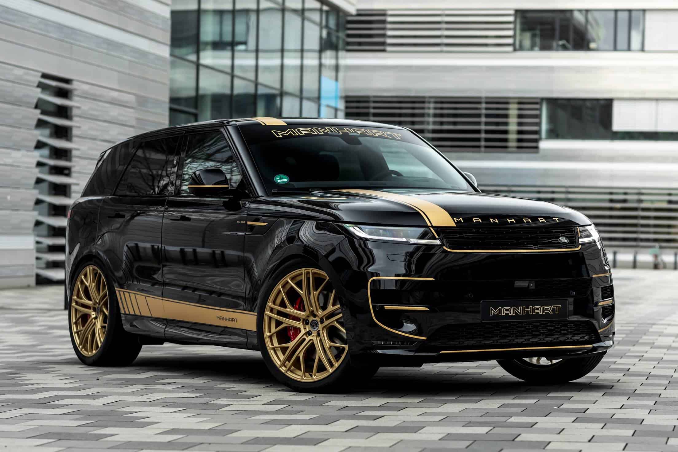 Aside from fiddling with the V8 engine, the aftermarket specialists have brought the British luxury SUV closer to the road by 40 millimeters by modifying the suspension. The tuner also installed massive 24-inch wheels wrapped around in 295/35 ZR24 tires to lend the Range Rover Sport a more aggressive stance. In typical Manhart fashion, the black body is contrasted by a plethora of gold accents we’ve seen on plenty of BMW projects.
