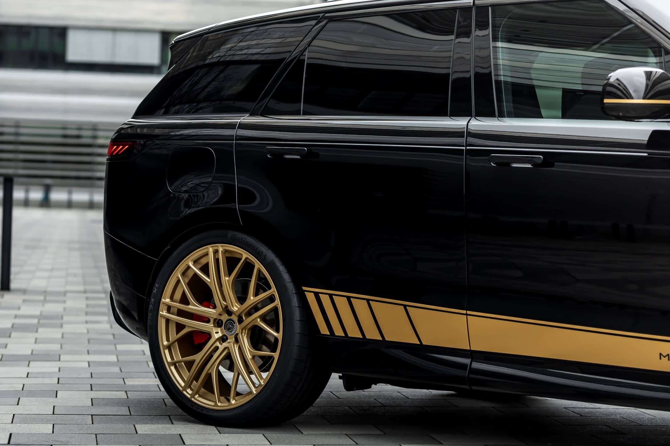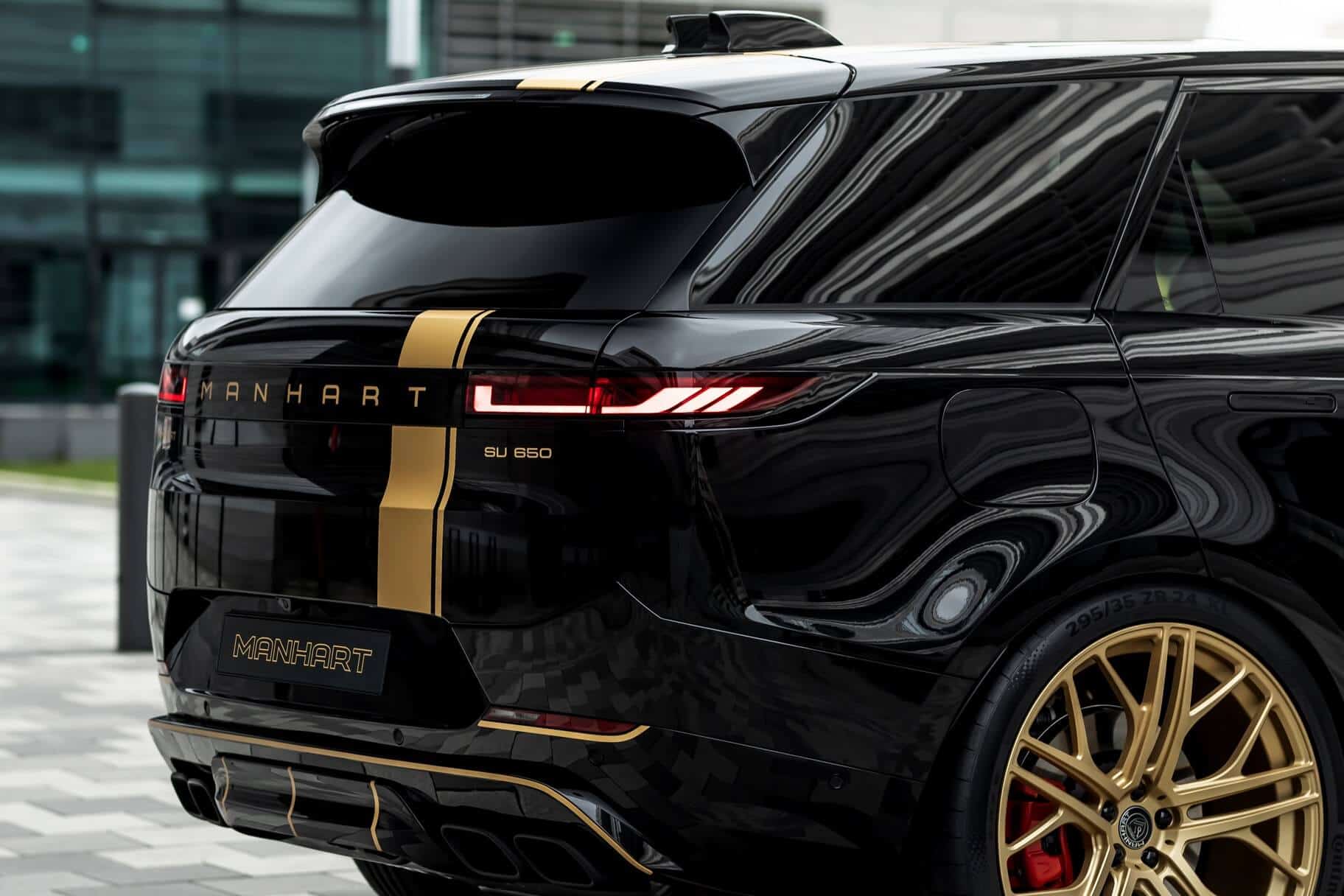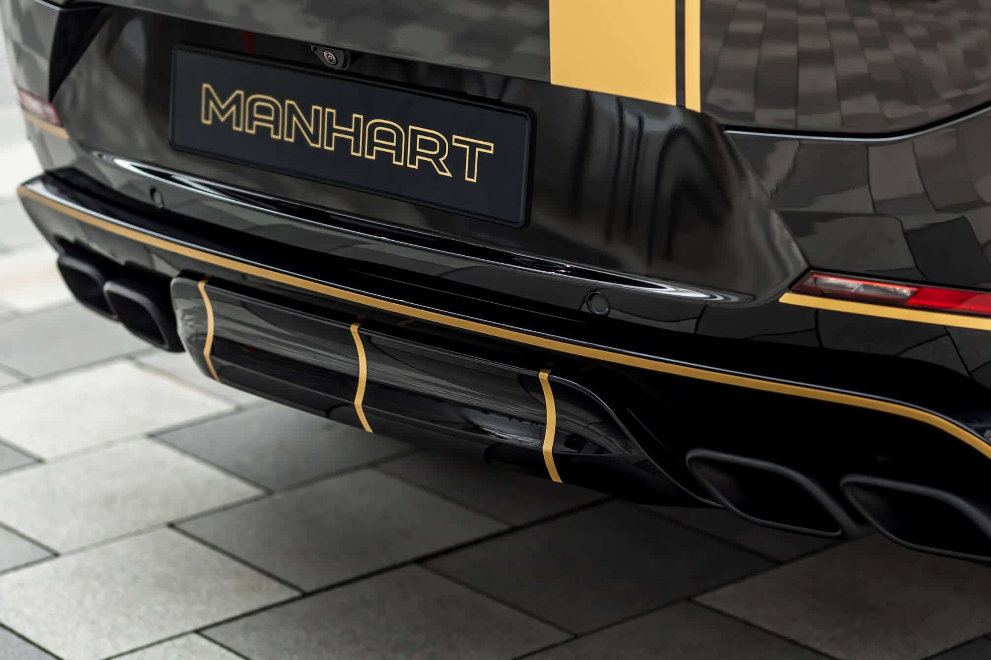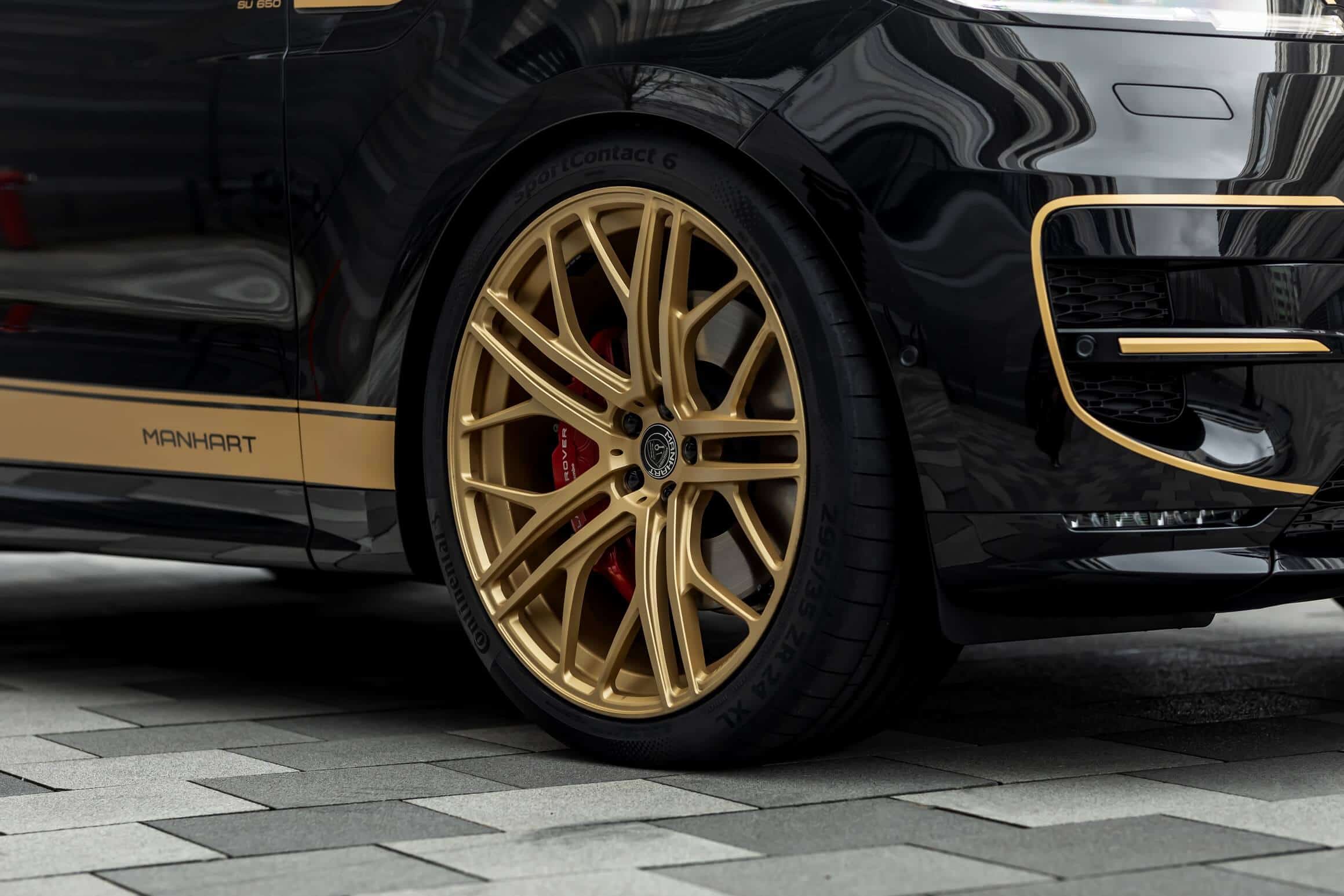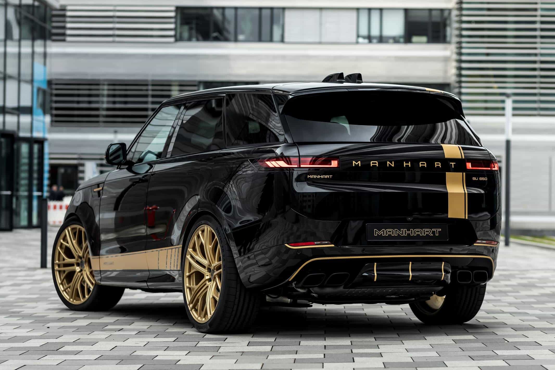 Aside from fiddling with the V8 engine, the aftermarket specialists have brought the British luxury SUV closer to the road by 40 millimeters by modifying the suspension. The tuner also installed massive 24-inch wheels wrapped around in 295/35 ZR24 tires to lend the Range Rover Sport a more aggressive stance. In typical Manhart fashion, the black body is contrasted by a plethora of gold accents we’ve seen on plenty of BMW projects.