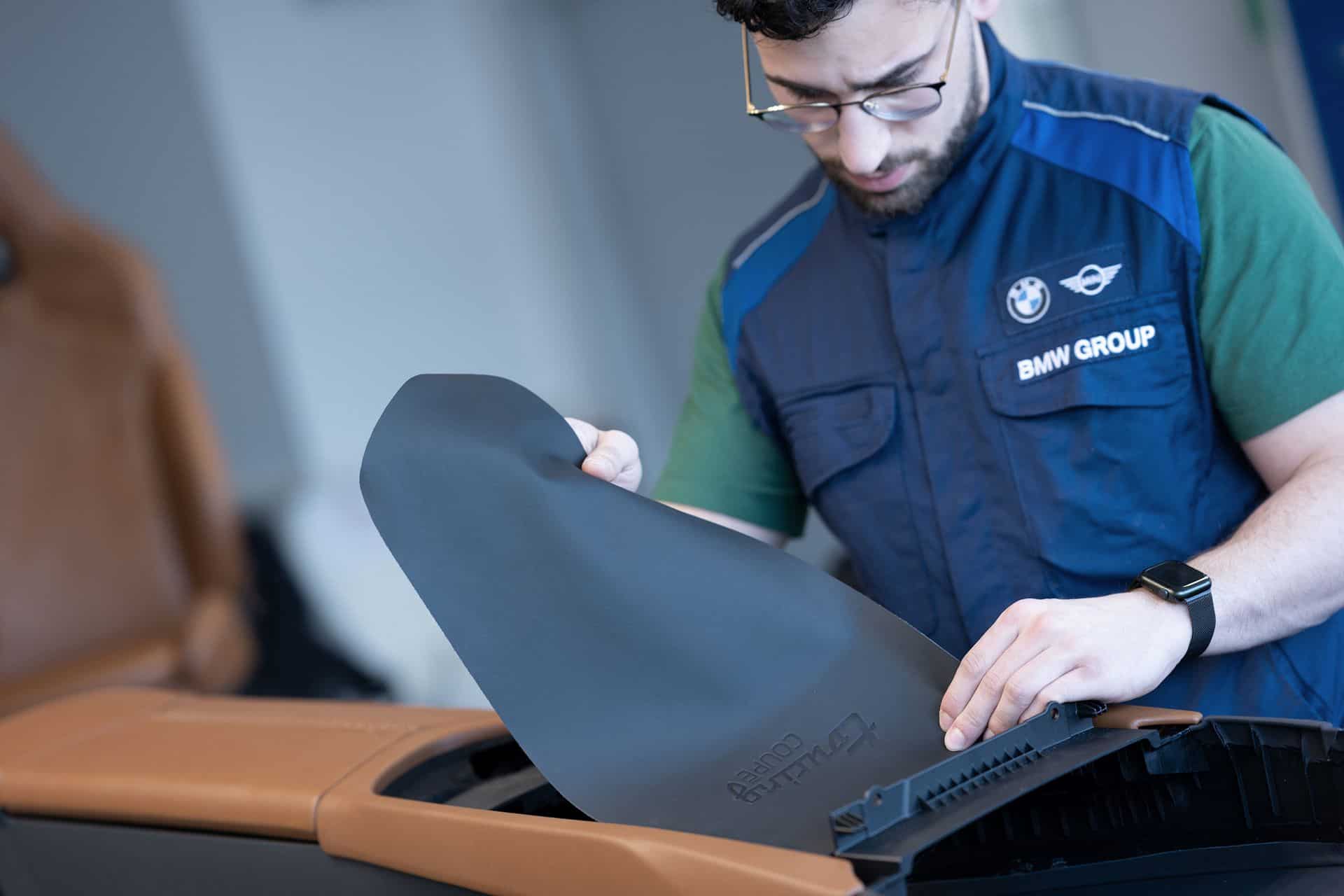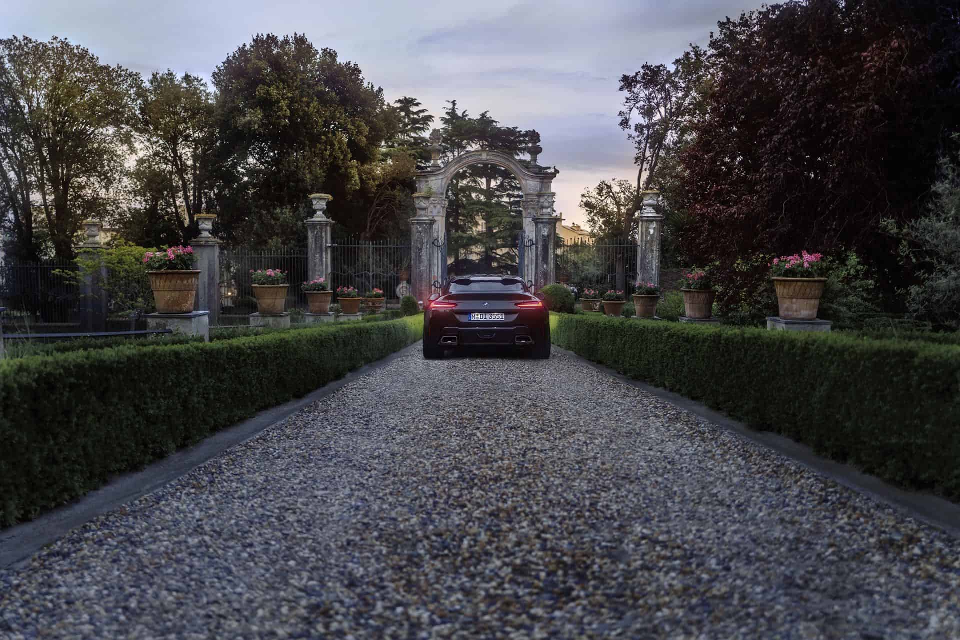 The BMW Z4 is only offered as a two-seat roadster with a fabric folding roof and a traditional trunk. So BMW obviously had an opportunity to create an entirely new hatchback trunk. It features a beautifully sculpted cargo area with gorgeous leather, hold-down straps, backlighting, and even custom luggage made by the Italian leather workshop Schedoni, in Modena. It comes with two large and one small weekender bags, and one garment bag. The very same leather shop makes the bags for Rolls-Royce.