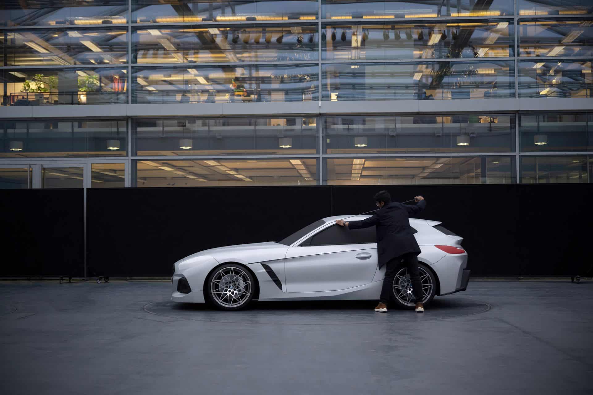 Just like with the original Clown Shoe—which was just a Z3 roadster fitted with a funky roof—the new BMW Touring Concept Coupe started out life as a normal, roadster-only BMW Z4. The fixed roof gives it a shooting brake-style, two-box look but the rest of it is pretty much the same as the standard Z4. So don’t expect a radically different looking car from the A-pillar forward. The only thing that’s changed up front is the addition of new vertical grille slats that are and a slightly different front bumper.