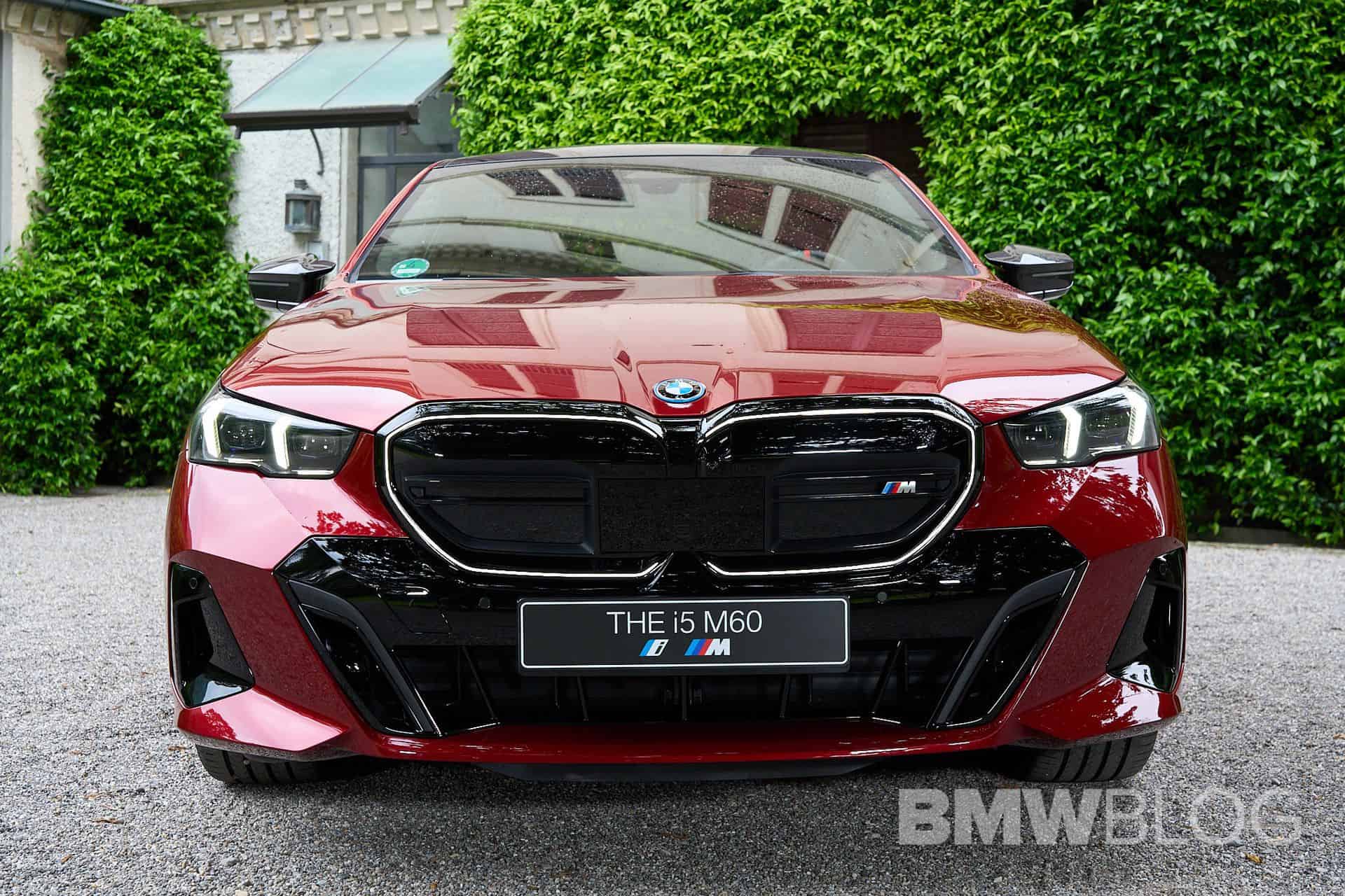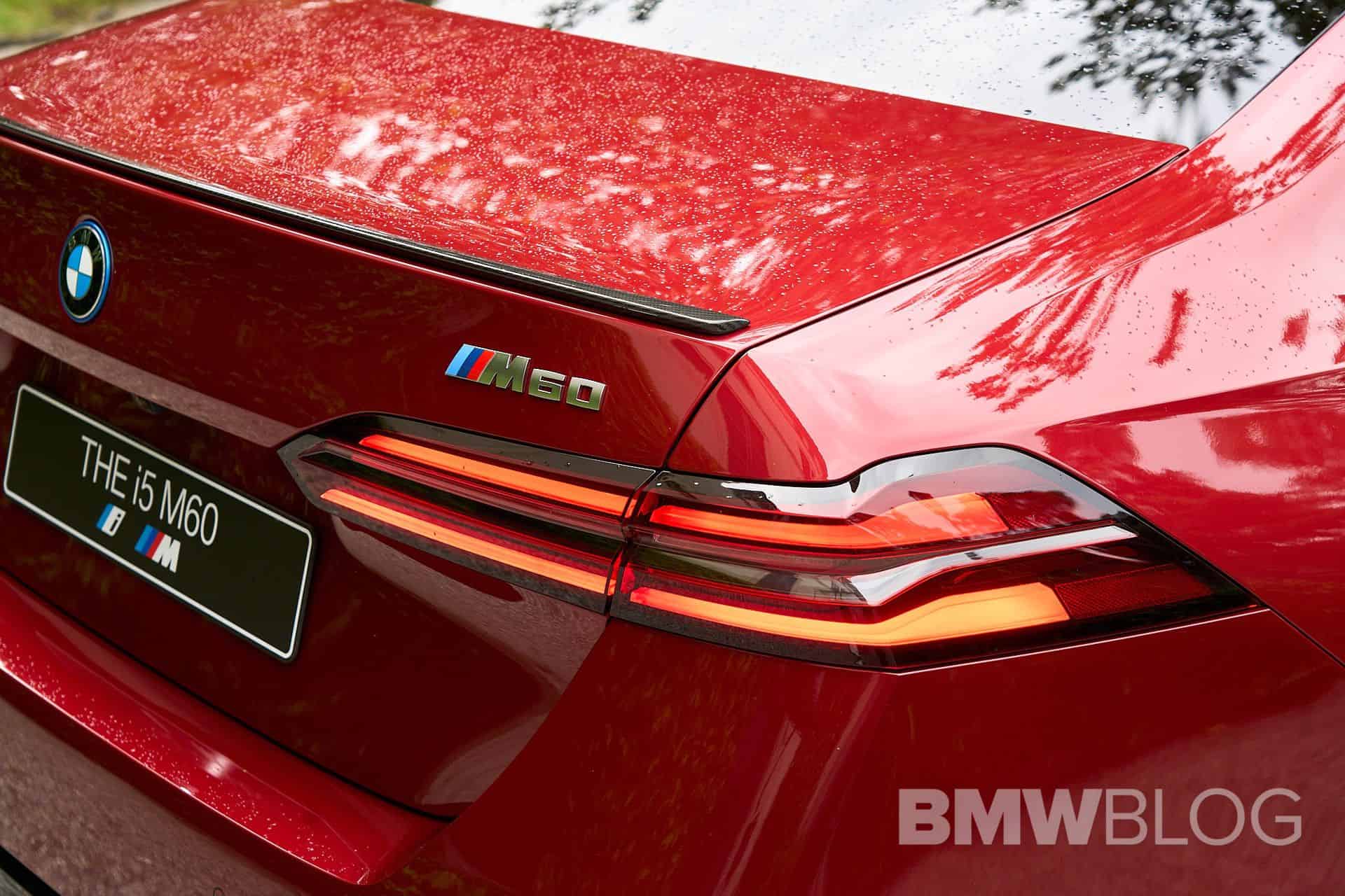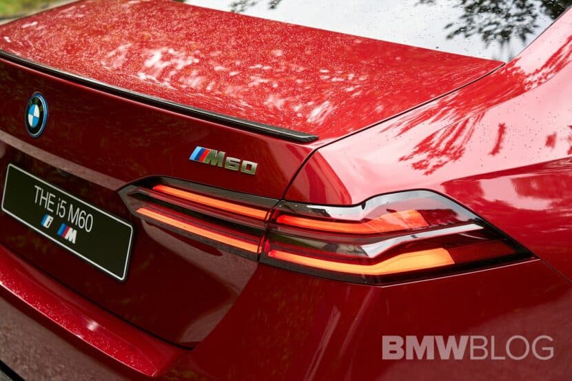 You’ll be seeing more of that black grille with double horizontal slats as BMW Group Head of Design Domagoj Dukec told BMWBLOG it’ll also be found with a similar look on the M5 expected to arrive around 2025 in both sedan and wagon body styles. The i5 M60 highlighted in the video has the M Sport Pro Package, which blacks out certain parts of the car, including the headlights. You’ll also notice the carbon fiber side mirror caps and trunk lid spoiler, along with a sporty diffuser and two-tone 20-inch wheels with red calipers.