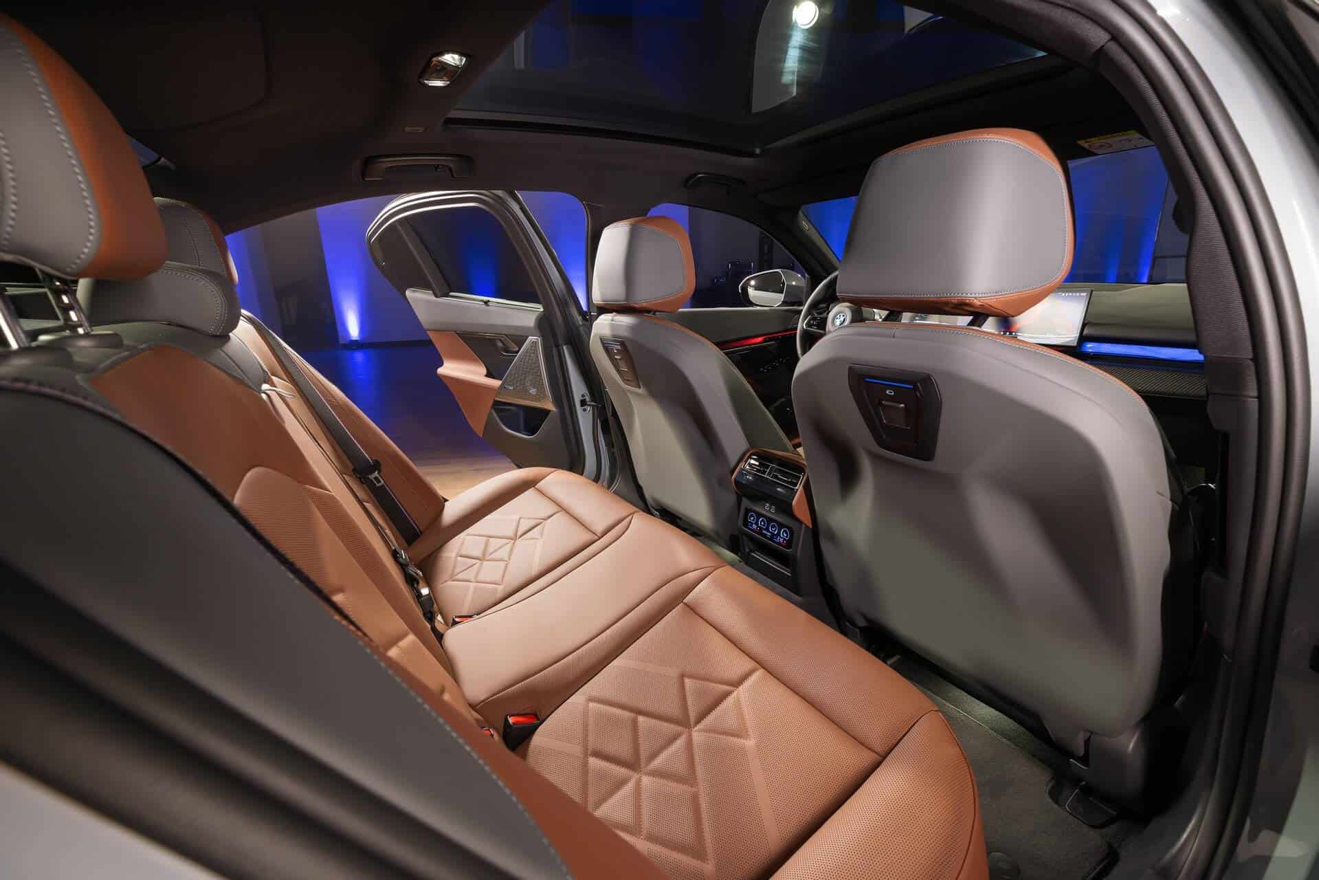 The interior has also been spruced up a bit since it has Merino leather upholstery in Copper Brown and Atlas Grey while the iDrive’s rotary knob has the optional crystal finish. A carbon fiber dashboard trim and flat-bottomed steering wheel give the cabin a sporty vibe even though this isn’t the hotter M60. For better or worse, the screen real estate has never been this generous on the 5er, and we’re not just talking about the two in the front. Rear-seat passengers now have their own display to adjust the temperature and other related settings.