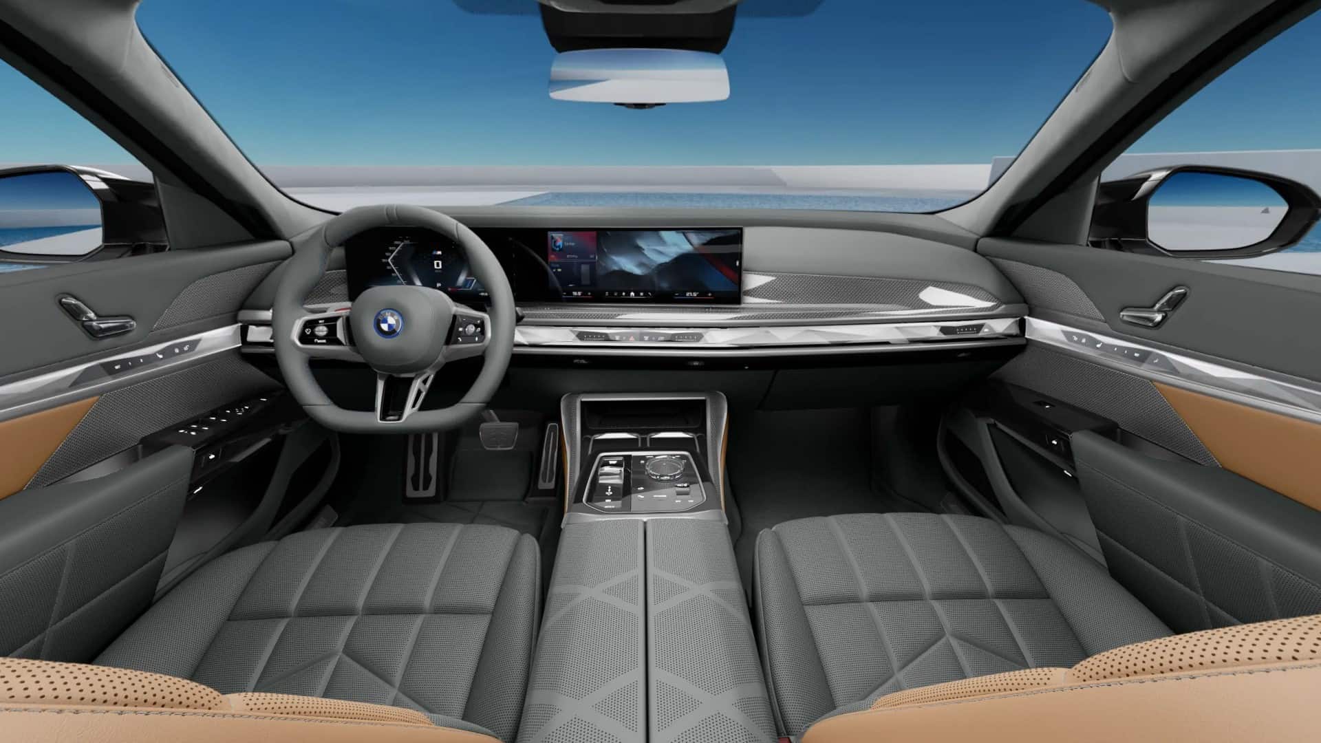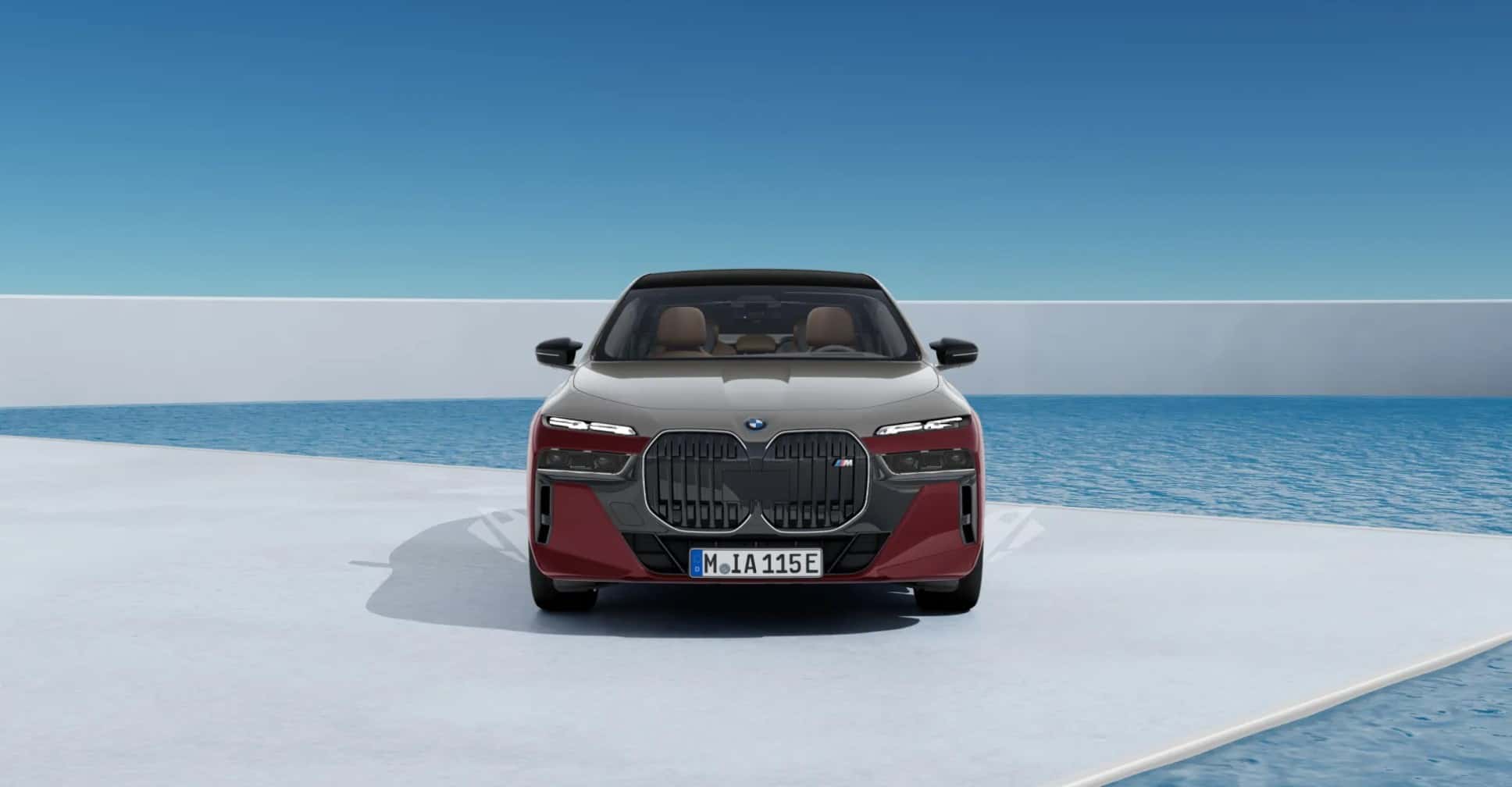 Shown here in screenshots taken from the German market configurator is the i7 M70 with just about all the bells and whistles. The two-tone paint alone costs €12,000 and it combines Aventurine Red for the lower section of the body with Oxid Grey for the upper section. It’s the most expensive option available, followed by the €9,950 Individual interior with Merino leather and carbon fiber.