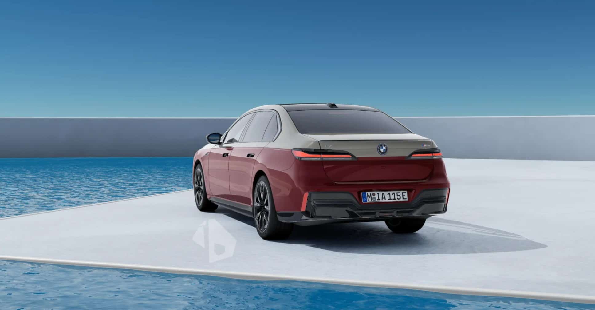 Shown here in screenshots taken from the German market configurator is the i7 M70 with just about all the bells and whistles. The two-tone paint alone costs €12,000 and it combines Aventurine Red for the lower section of the body with Oxid Grey for the upper section. It’s the most expensive option available, followed by the €9,950 Individual interior with Merino leather and carbon fiber.