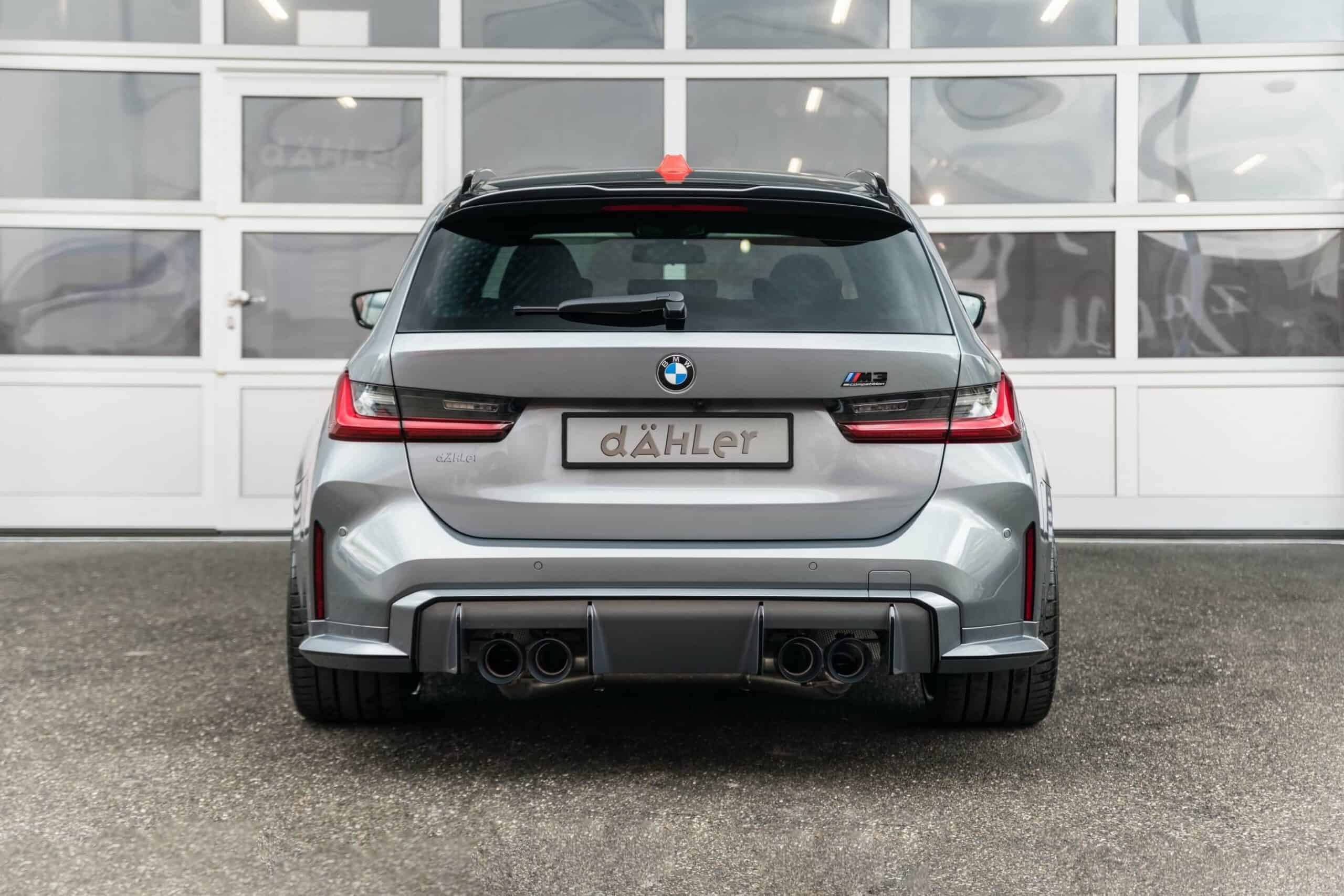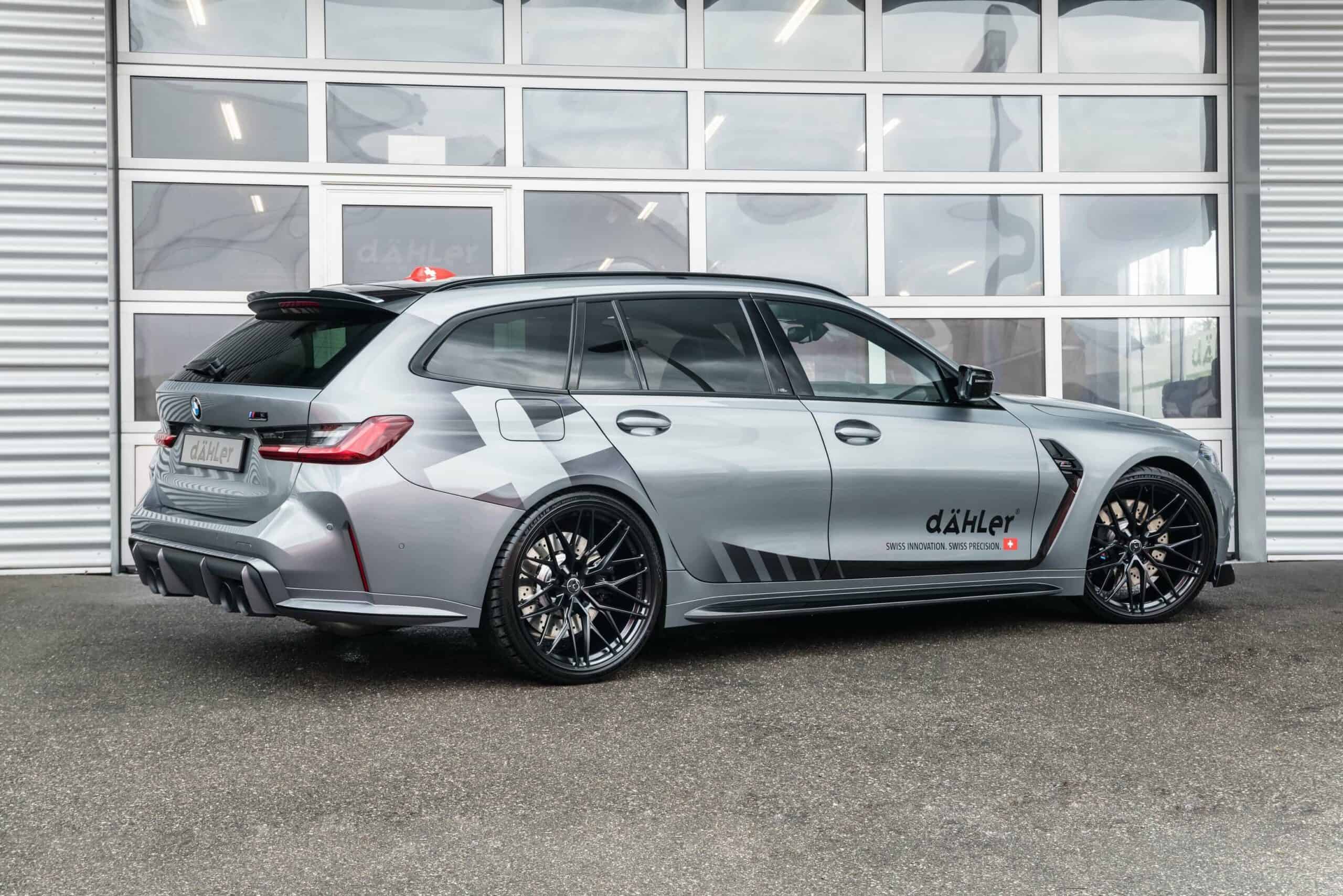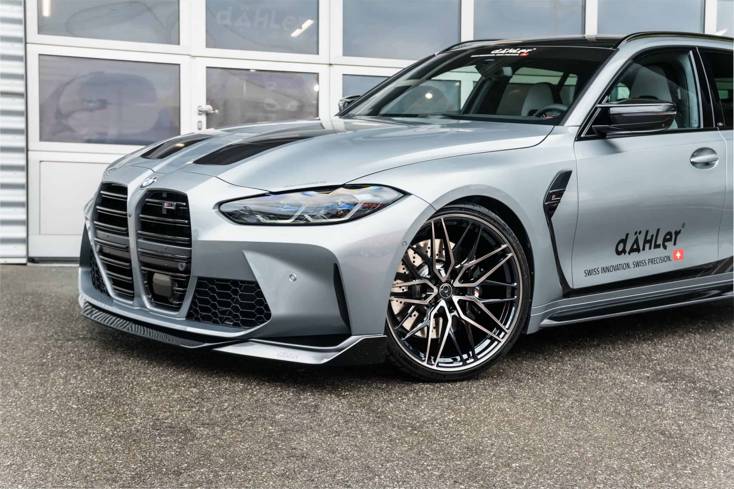 With the M3 Touring out and about, tuners can finally work on the super wagon and apply the lessons learned while modifying the M3 Sedan. The Swiss aftermarket specialists at dAHLer are among the first to upgrade the G81 to squeeze out more power and give the Audi RS4 Avant rival a more aggressive body kit. The first order of business was to lower the speedy family hauler by 28 mm at the front and 15 mm at the rear courtesy of stiffer suspension springs.