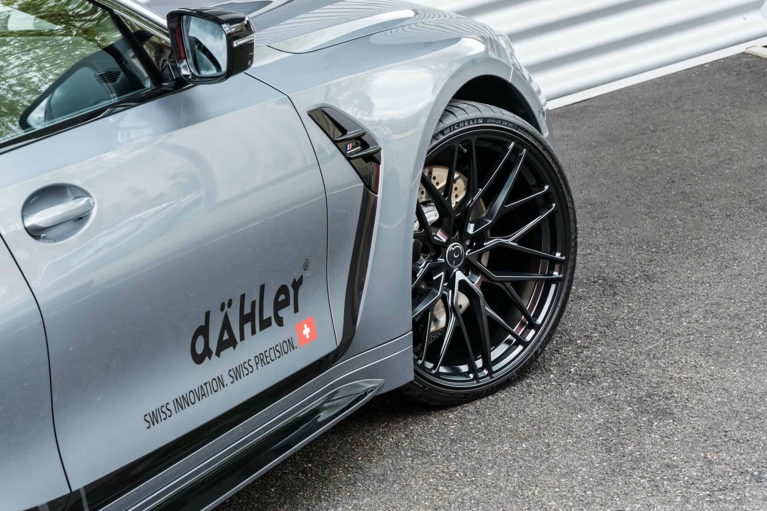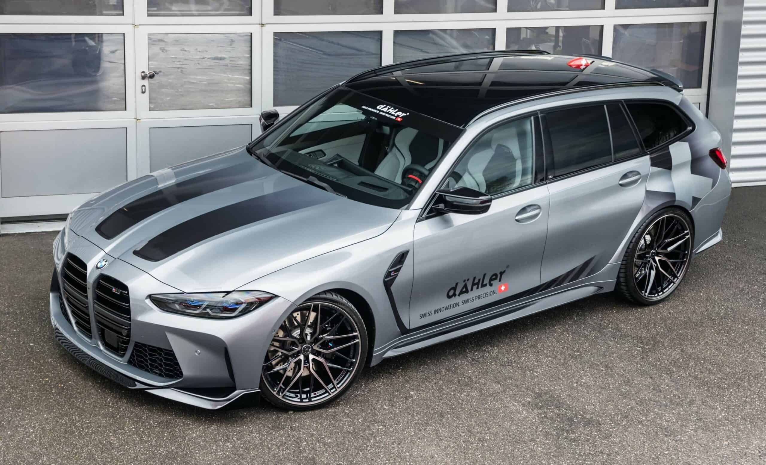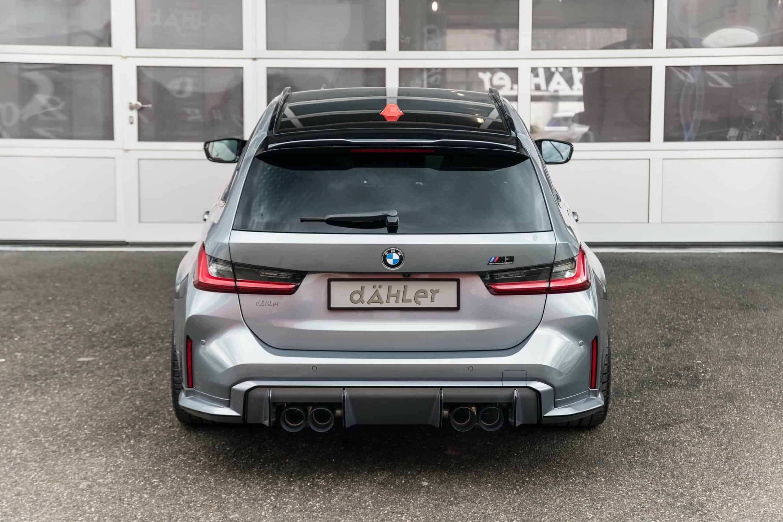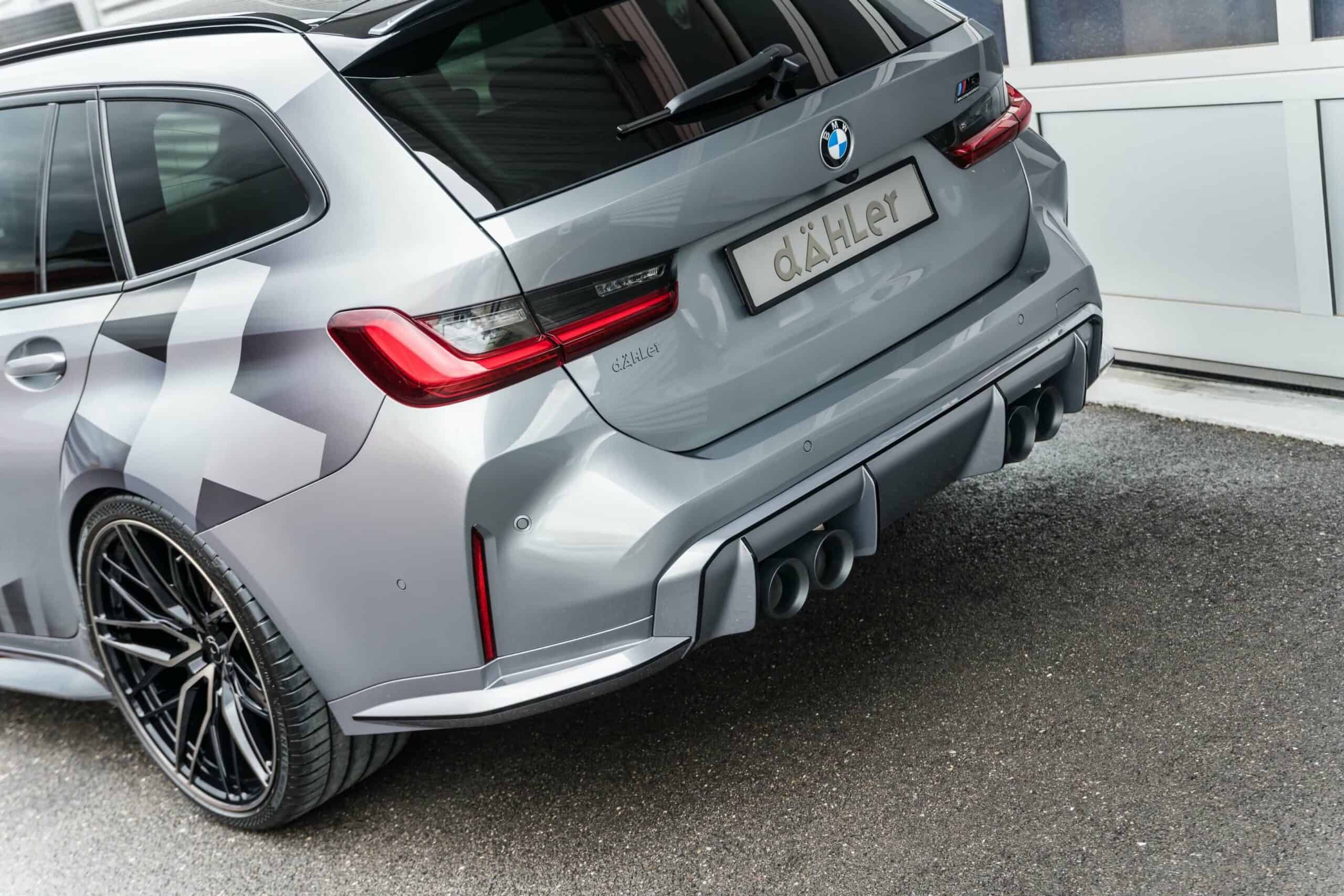 With the M3 Touring out and about, tuners can finally work on the super wagon and apply the lessons learned while modifying the M3 Sedan. The Swiss aftermarket specialists at dAHLer are among the first to upgrade the G81 to squeeze out more power and give the Audi RS4 Avant rival a more aggressive body kit. The first order of business was to lower the speedy family hauler by 28 mm at the front and 15 mm at the rear courtesy of stiffer suspension springs.