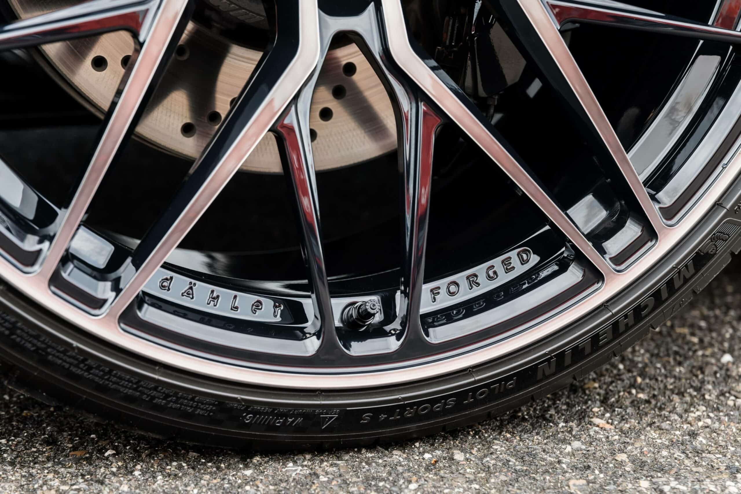 Gone are the OEM wheels as this long-roof M3 rides on 21-inch forged wheels at both axles, complete with 275/25 ZR21 front and 295/25 ZR21 rear tires. dAHLer also worked on the body by attaching a custom front spoiler lip made from carbon fiber. It’s shown here with a bi-color appearance but can be optionally had with visible carbon fiber or a clear-coated finish. At an additional cost, the side mirror caps and rear diffuser can share the same look.