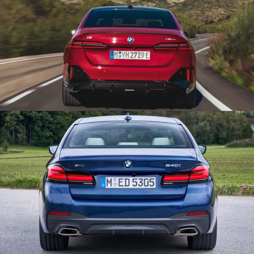Call me crazy but I actually like the side profile of the new G60 5 Series. It’s the best looking angle of the car. I like its stance, the shape of its silhouette, and I like the cut of its roof line, especially at the C-pillar. It looks sporty, athletic, and stylish. BMW head of design said that the new 5 Series has a more Italian approach than a German one. While that’s mostly hogwash, I can sort of see what he’s talking about when lookin at its profile. The old G30 5 Series is great looking from the side but it’s a bit boring compared to the new car. It will age incredibly well, and I appreciate it, but the new car wins here.