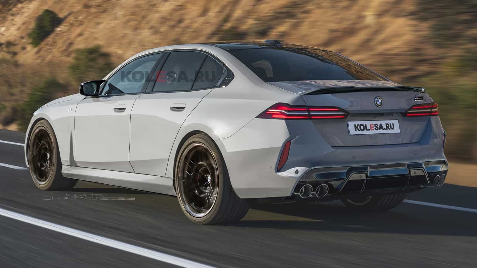 The adjacent digital design exercise is likely quite close to the real thing, right down to the carbon fiber trunk lid spoiler. The M-specific side mirrors have already been revealed for the i5 M60 and are likely to be installed on the unannounced M560e rumored to arrive by mid-2024 with an electrified inline-six powertrain.