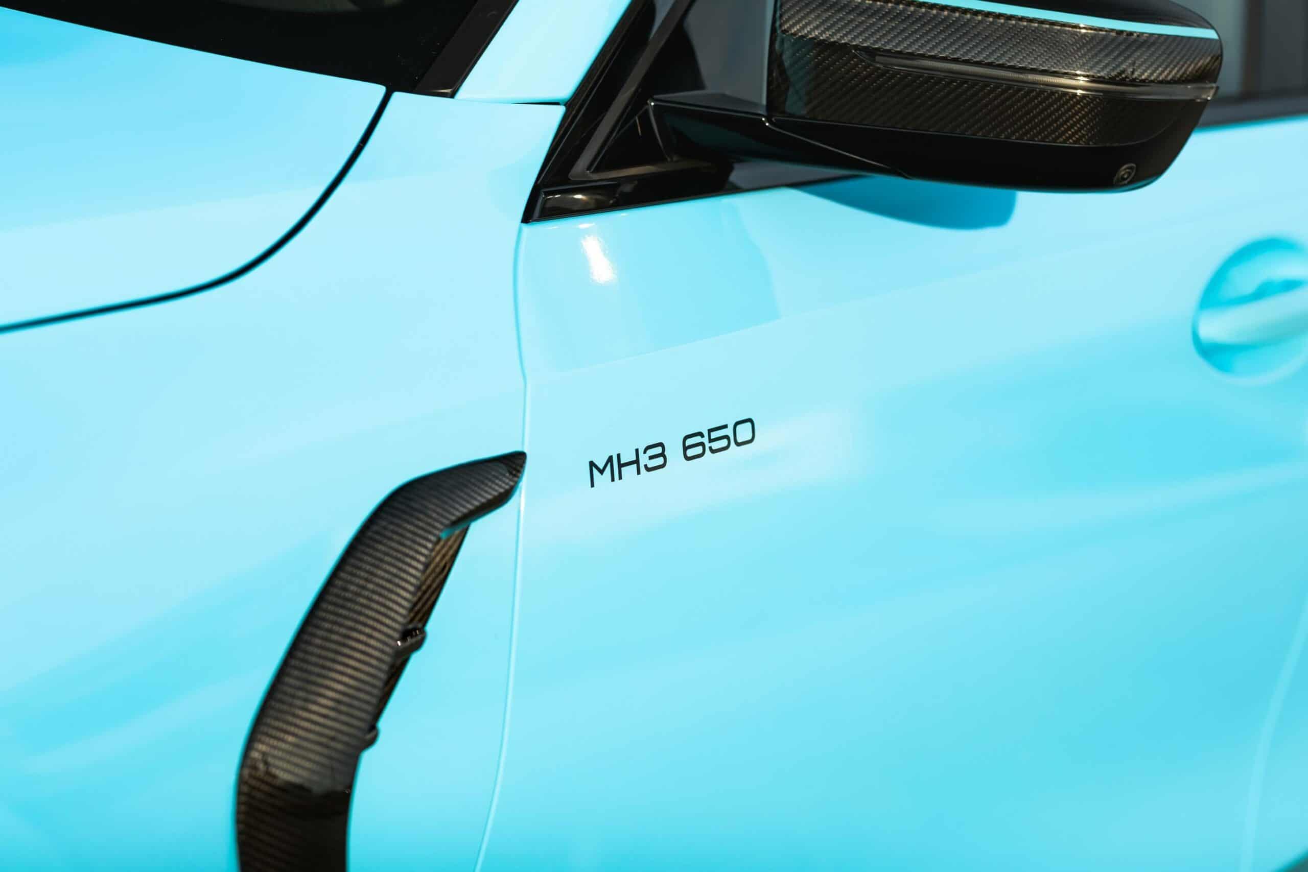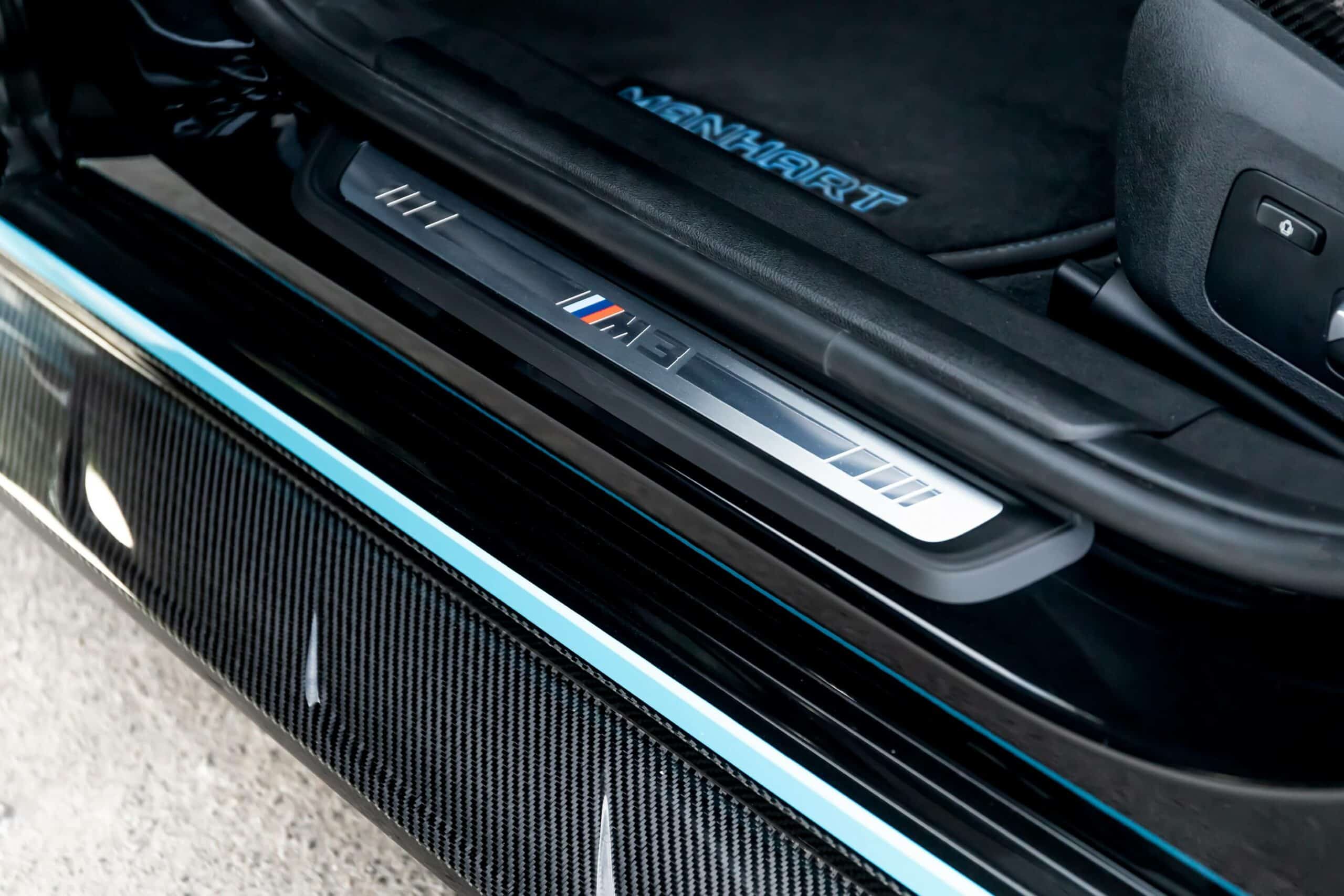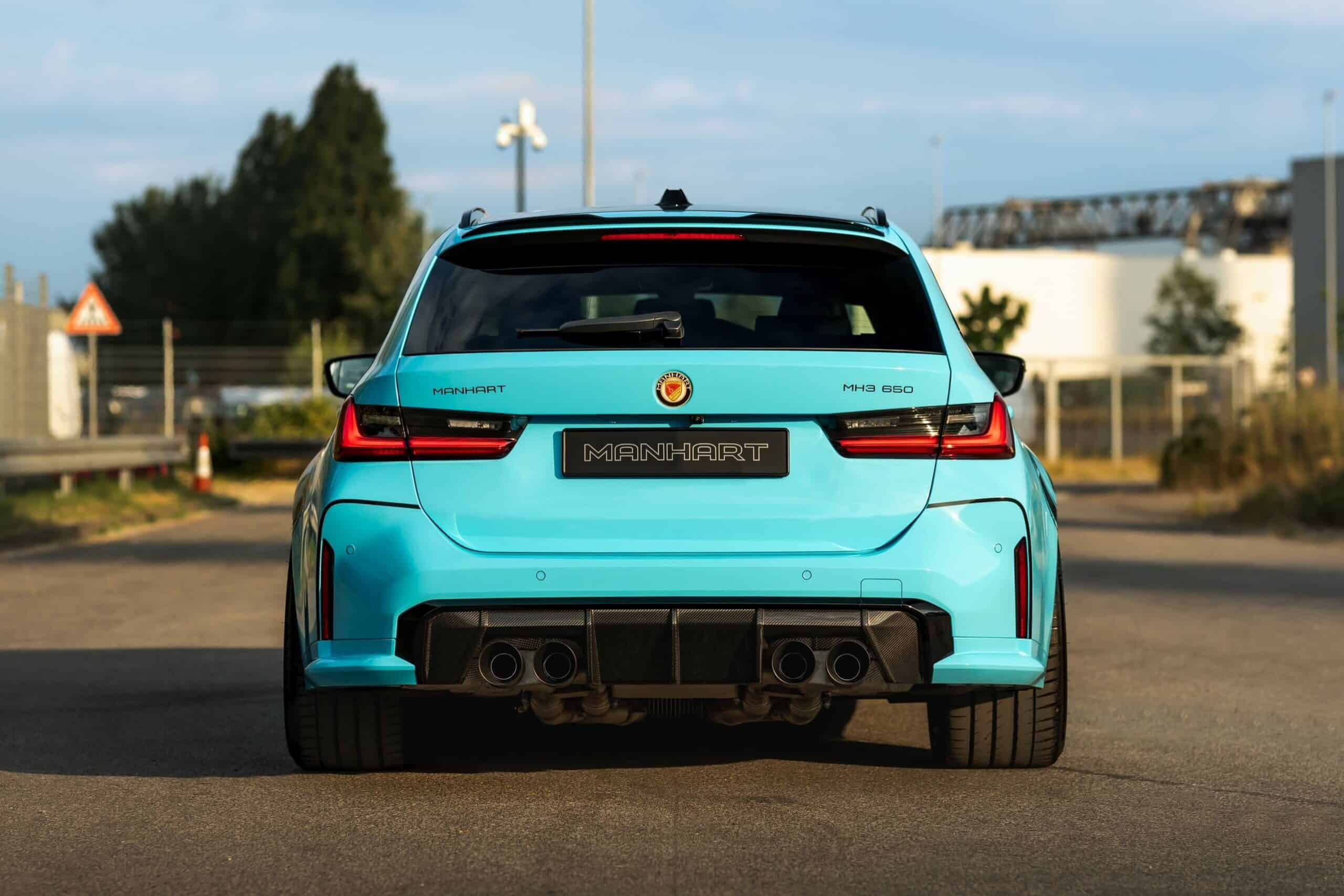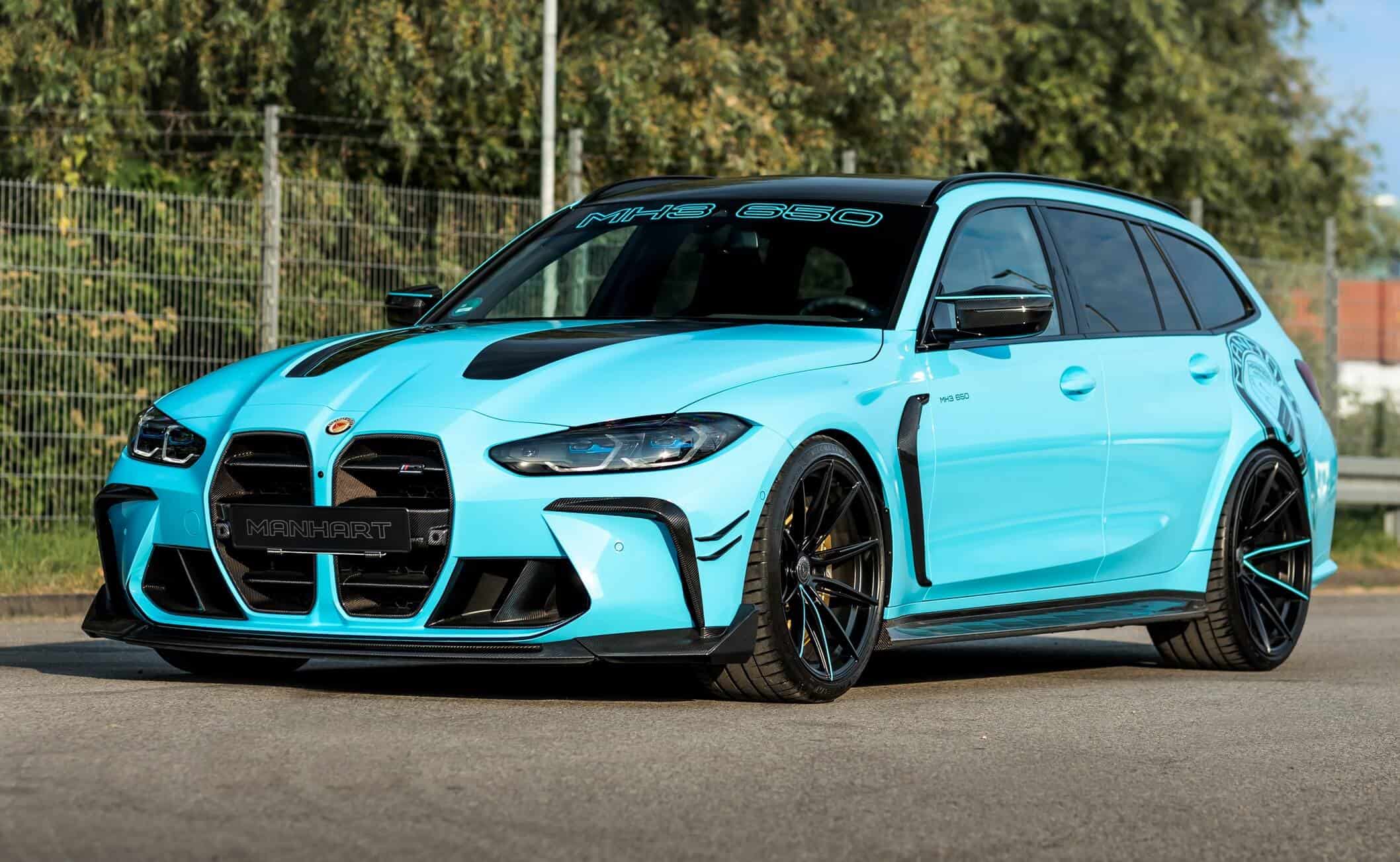 To make it even more of an eye-grabbing wagon, Manhart gave the first-ever M3 Touring a carbon-effect roof finish to further contrast the baby blue body wrap. It also replaced the BMW roundel with the tuner’s own logo, including the center caps belonging to a Yido Performance set of 20-inch front and 21-inch rear wheels. For a meaner stance, the speedy estate has been brought slightly closer to the road by installing H&R lowering springs.