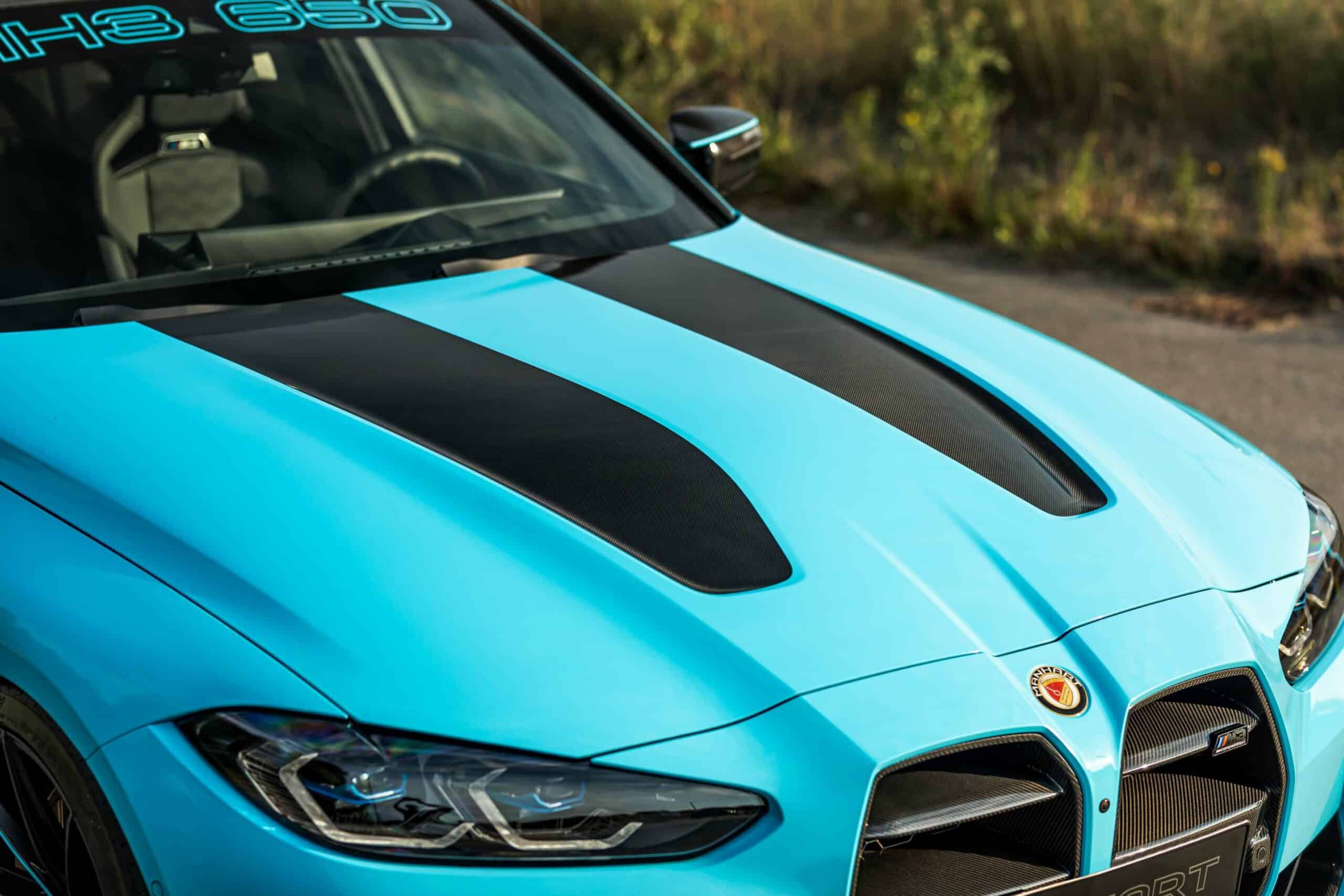 It’s not all show without any extra go as the aftermarket specialist also worked on the S58 engine. The twin-turbo, inline-six has been massaged to deliver a respectable 650 horsepower and 800 Newton-meters (588 pound-feet) of torque. That’s quite the bump from the factory output of 510 hp and 650 Nm (479 lb-ft). The 3.0-liter unit now works in conjunction with a modified exhaust featuring a Remus rear silencer, HJS downpipes, and Manhart’s own 100-mm quad tips.