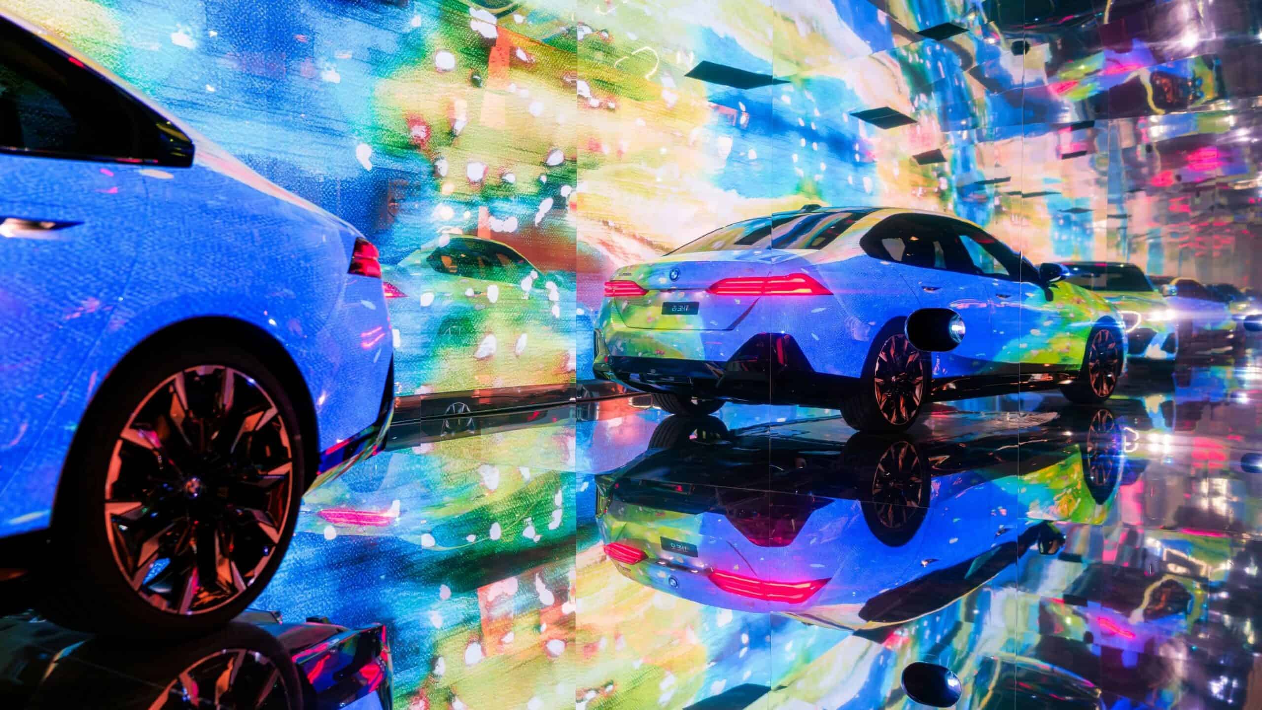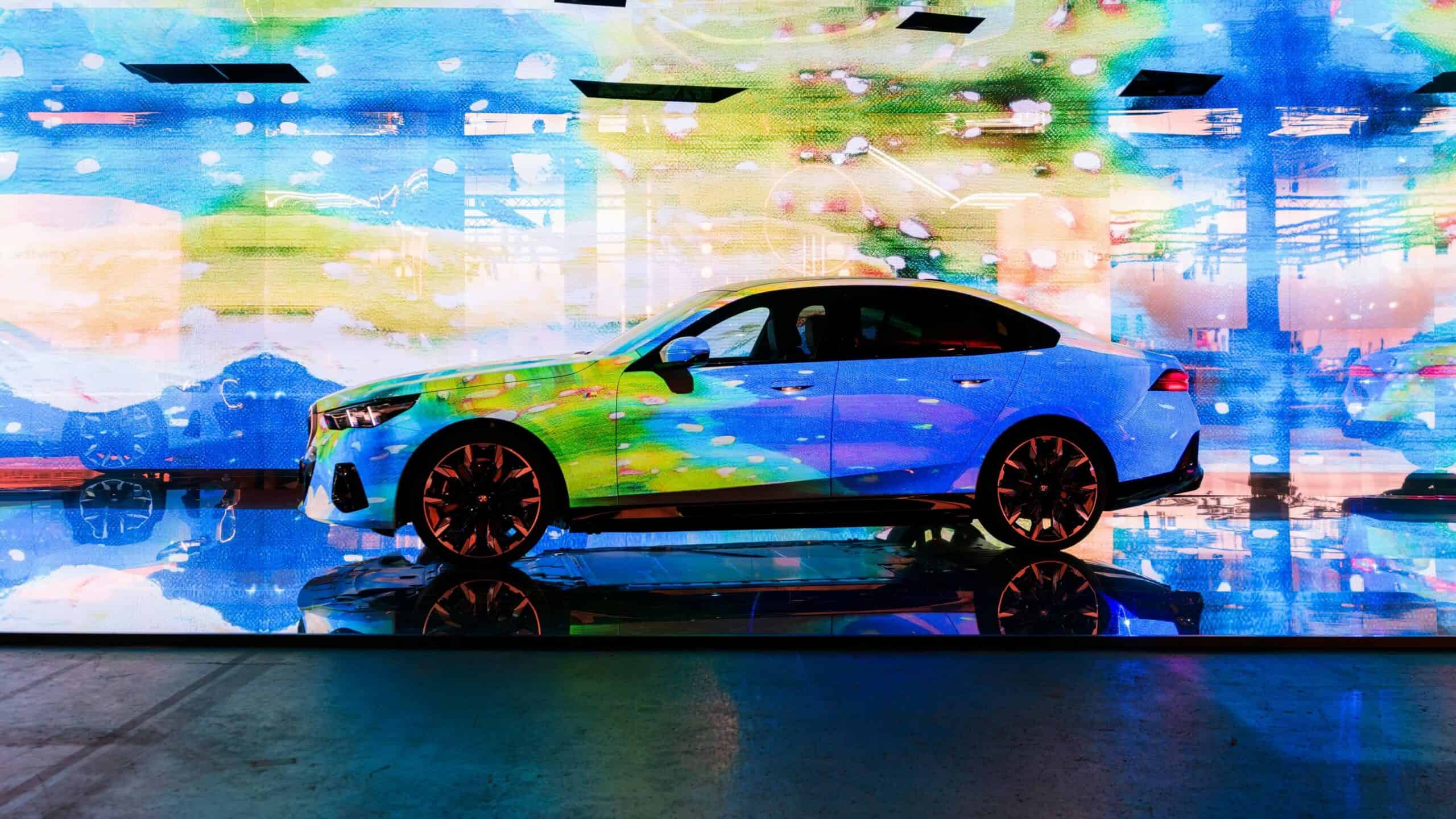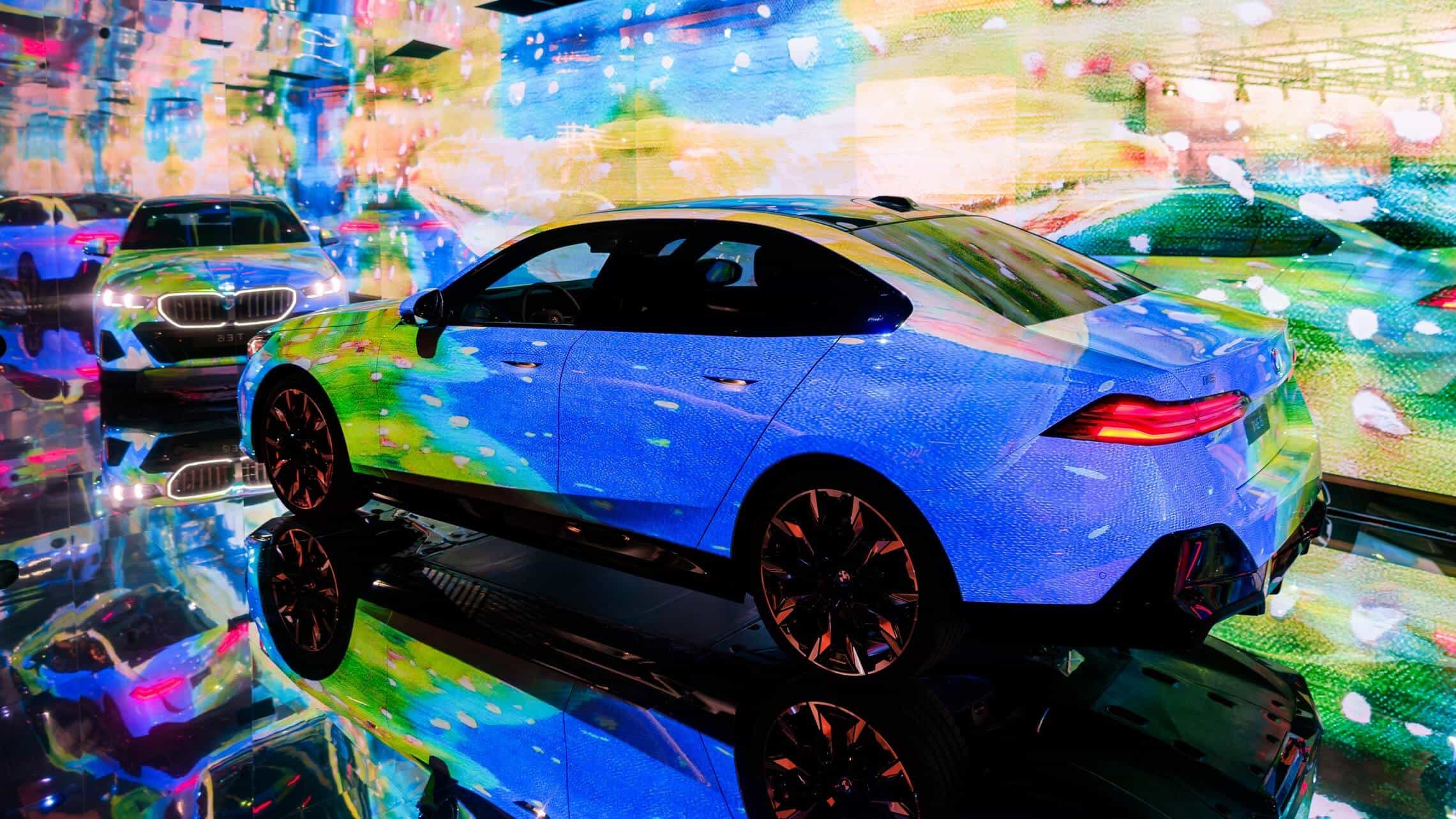 Instead, “The Electric AI Canvas” as the i5 has been described has morphed into a canvas on which designs created by artificial intelligence algorithms have been projected. The abstract liveries are the result of combining more than 50,000 photos spanning 900 years of art history. The outcome is a mélange of classical and contemporary art exhibited onto the G60, which is the largest 5 Series ever made, stretching at 5060 millimeters (199.2 inches) long.