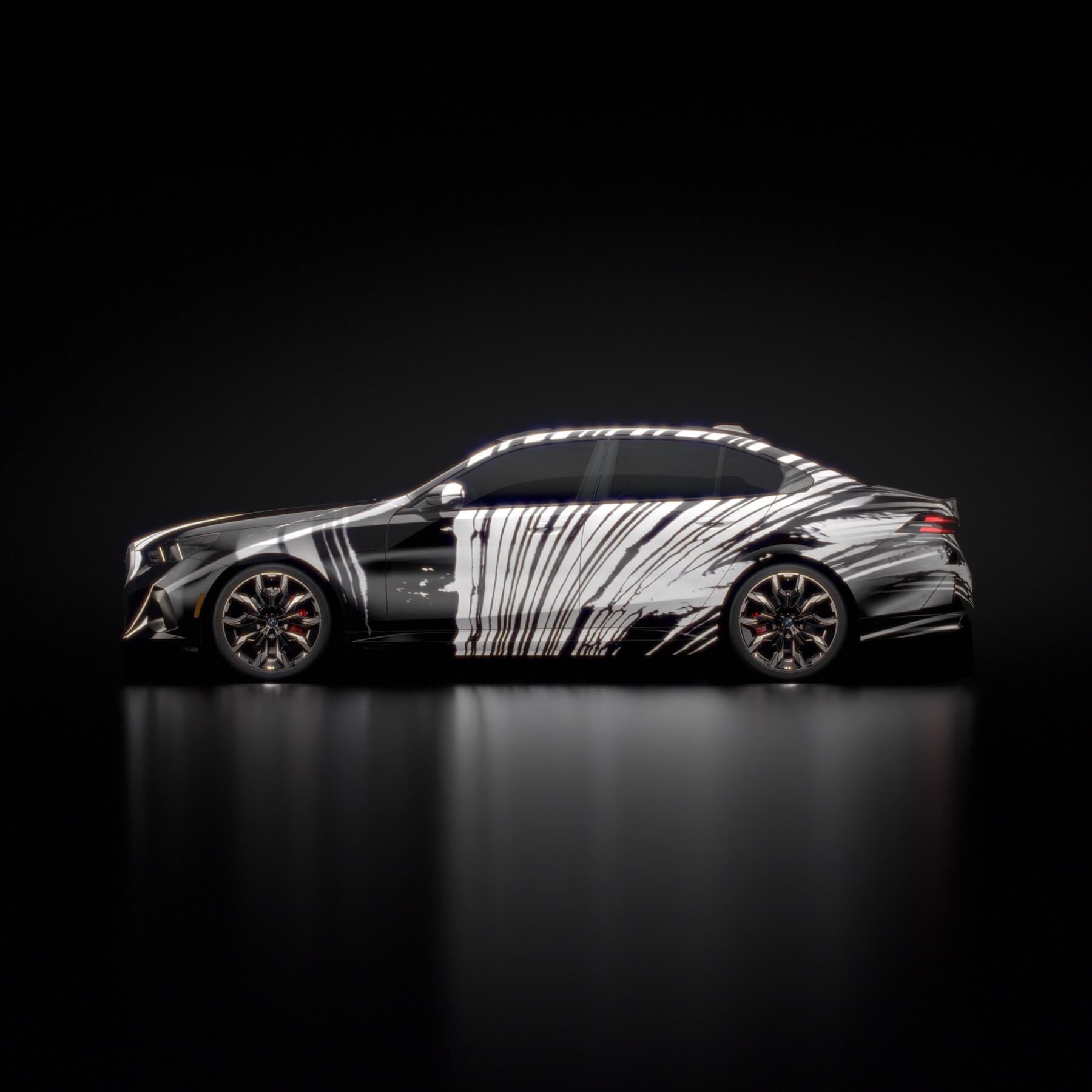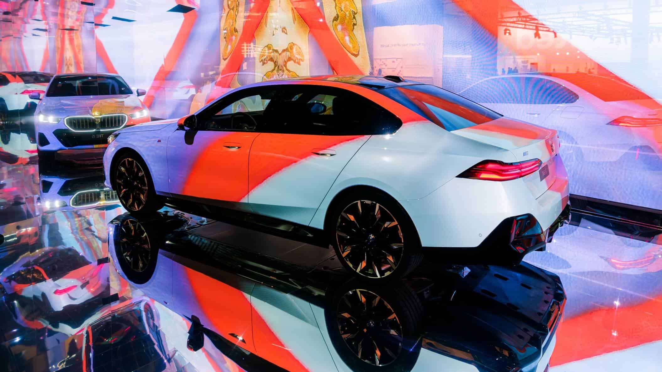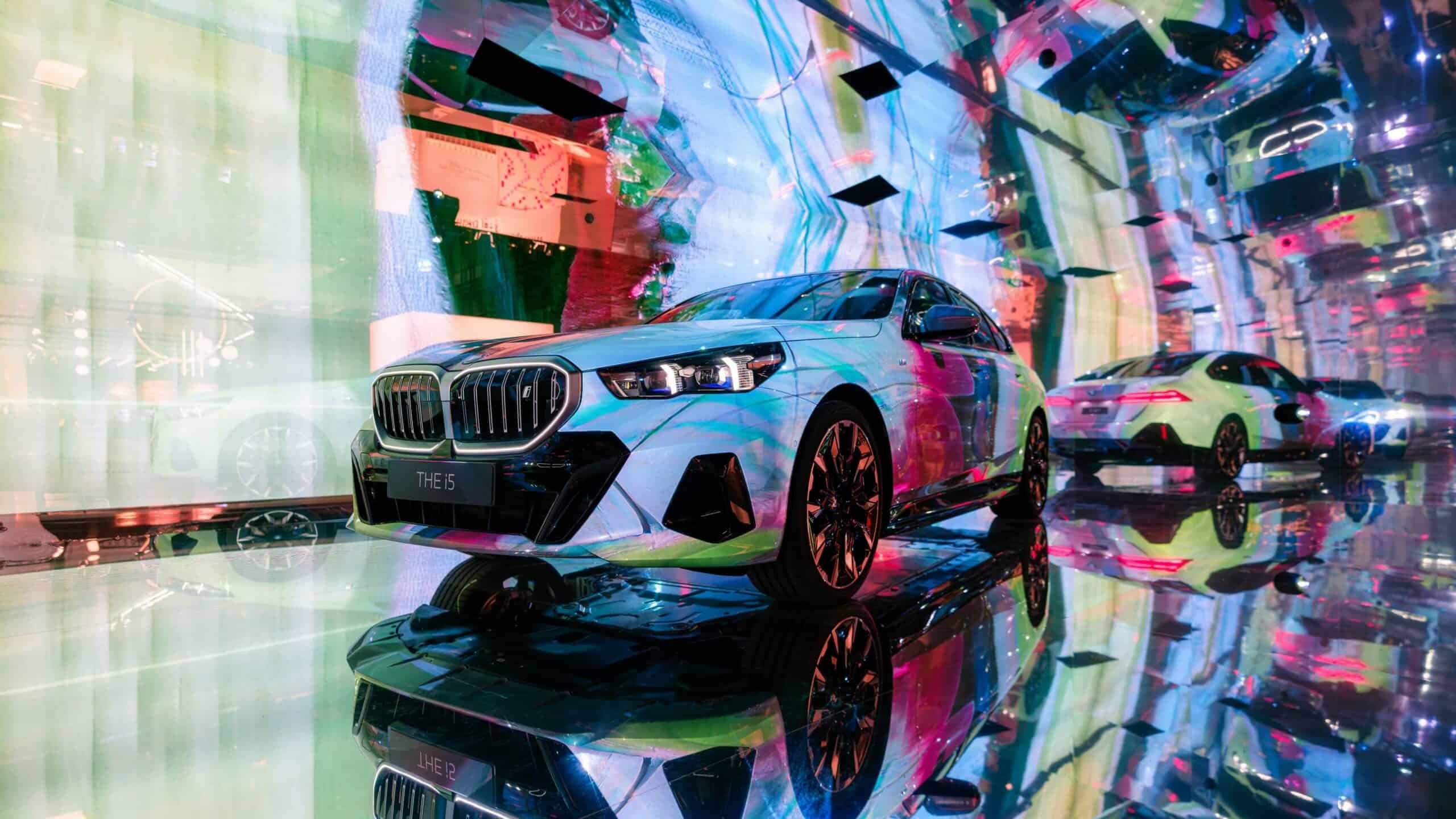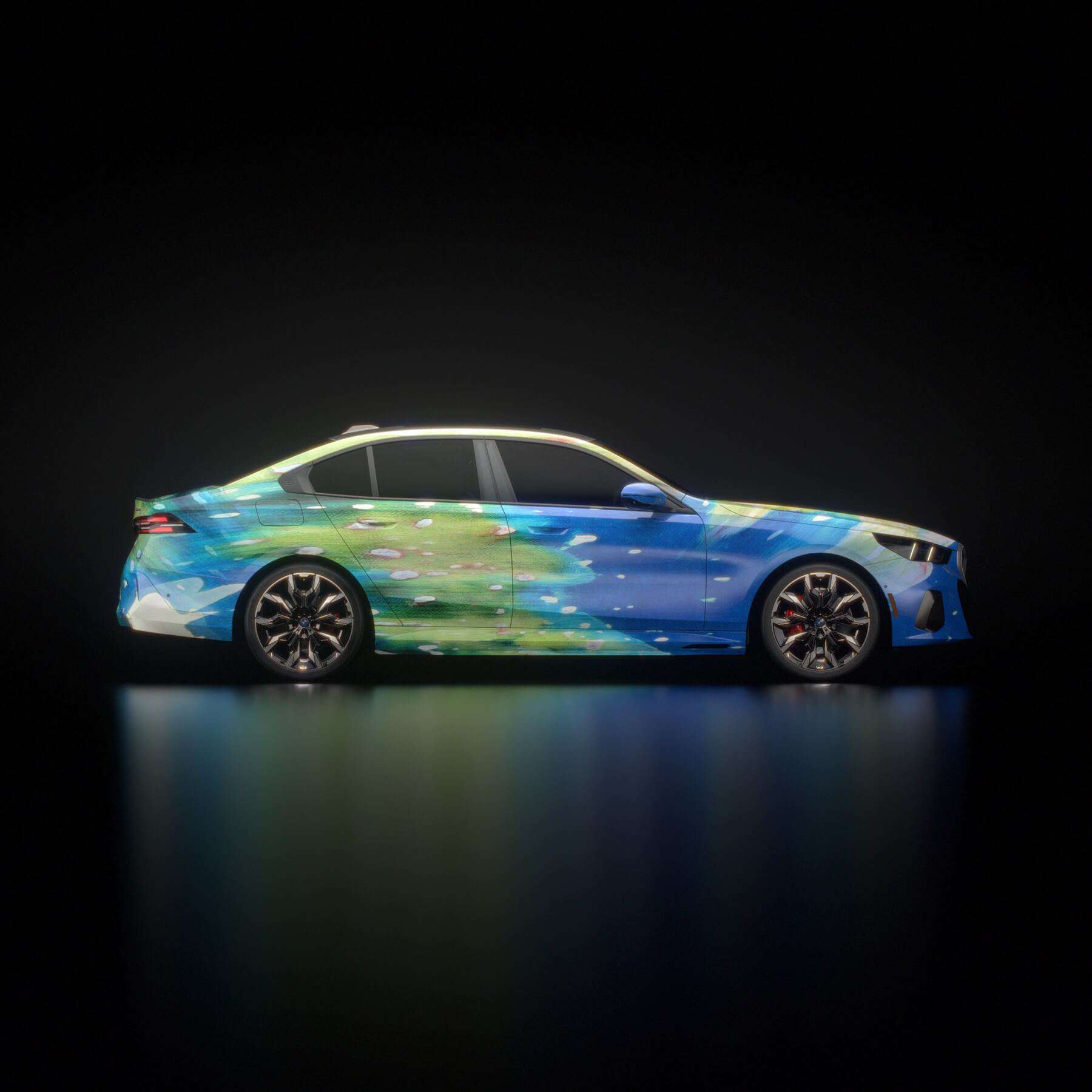 Instead, “The Electric AI Canvas” as the i5 has been described has morphed into a canvas on which designs created by artificial intelligence algorithms have been projected. The abstract liveries are the result of combining more than 50,000 photos spanning 900 years of art history. The outcome is a mélange of classical and contemporary art exhibited onto the G60, which is the largest 5 Series ever made, stretching at 5060 millimeters (199.2 inches) long.