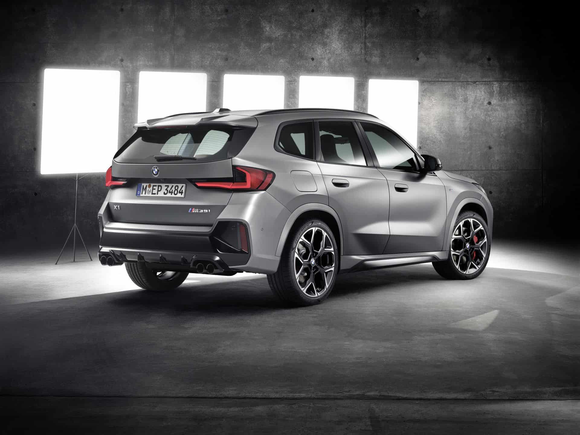Over in Europe, BMW cites a 0 to 62 mph (100 km/h) sprint in 5.4 seconds whereas the US-spec model hits 60 mph (that’s technically 96.5 km/h) in 5.2 seconds. Both max out at an electronically limited 155 mph (250 km/h). Much like in North America, the Euro-spec X1 M35i gets a standard adaptive M suspension and optional M Compound brakes.