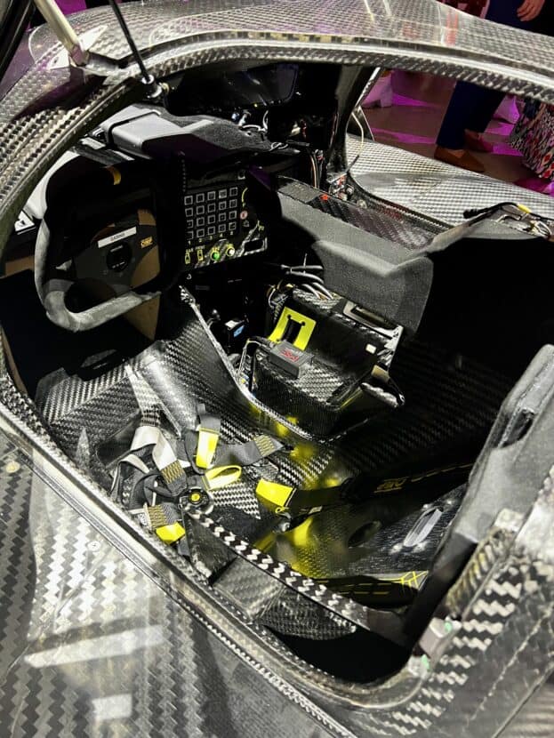 “This is a moment to push the [design] of the vehicle to be more than the car can otherwise be. That blur of a racecar going by is one of the first things that struck me when I saw this car on the racetrack,” referencing her visit to Daytona earlier in the year to see the car perform its initial on-track tests. “That moment of a car speeding by, the uncertainty of it, is interesting for me to investigate. And a big part of art is play,” she added. “That uncertainty, of a racecar at speed on the edge, is something I want to explore in creating something like this.”