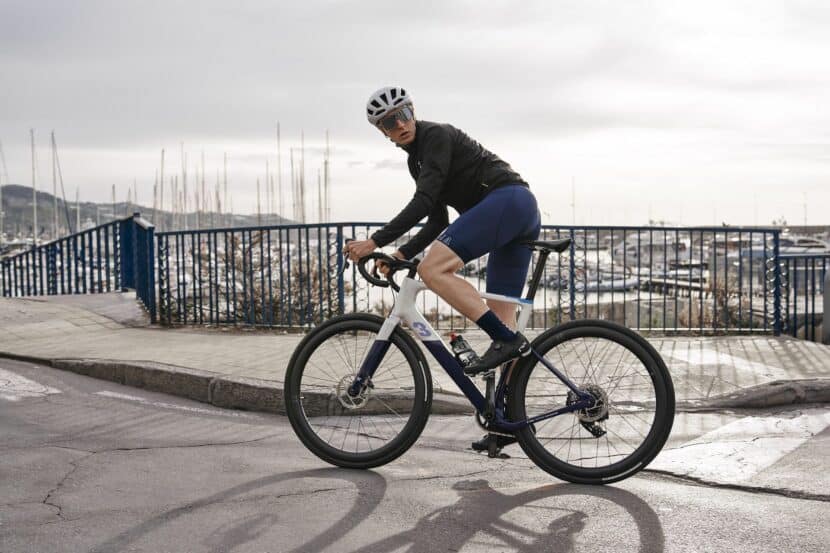 For road cycling enthusiasts, BMW introduces the Exploro Road, boasting 28-inch carbon fiber wheels, Panaracer GravelKing Slick tubeless-ready tires, and aerodynamic features such as an aero seatpost and carbon fiber racing bike handlebars. This model prioritizes weight reduction, allowing for higher speeds on asphalt surfaces. The electric variant of the Exploro Road, equipped with a smaller battery capacity of just under 250 Wh, offers a significant weight saving and slightly shorter range compared to its non-electric counterparts.