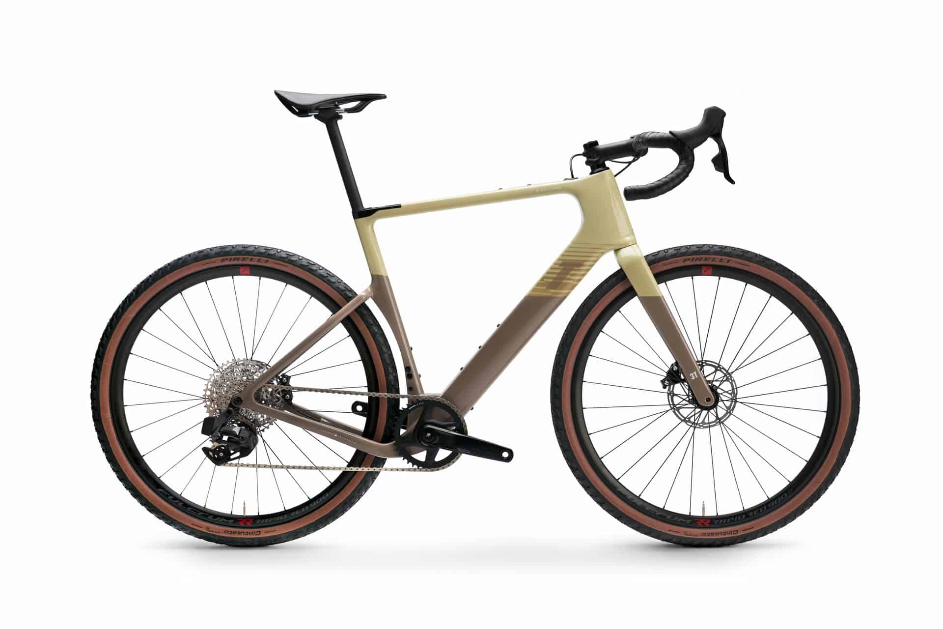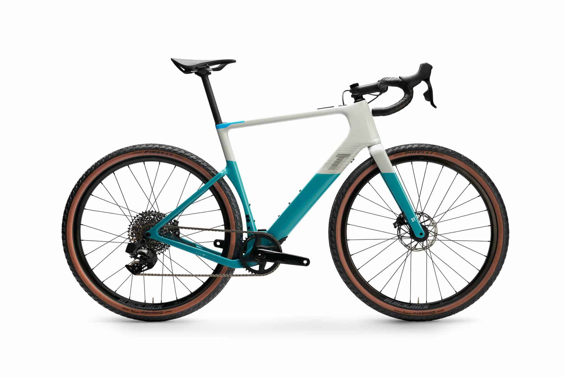 The bikes come with impressive features such as 12-speed gearing, hydraulic disc brakes, and the option for a fully integrated rear-wheel hub motor. The Rival AXS groupset from SRAM provides electronic, wireless 12-speed gearing, ensuring precise and smooth gear changes while maintaining a clean and organized cockpit. The carbon fiber frames of the bikes showcase a modern two-tone paint finish, with cables for the hydraulic disc brakes neatly routed inside the frame.