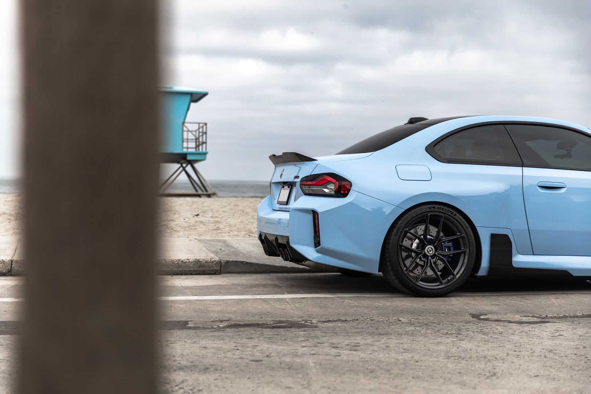 Your options are quite limited when it comes to choosing OEM wheels for the new M2 as BMW has only a few sets of alloys available for the G87. If none of them tickle your fancy, there are already plenty of aftermarket alternatives. Case in point, HRE Wheels is showing off its FlowForm FF21 set on the sports coupe finished in the exclusive Zandvoort Blue. The rear-wheel-drive machine also happens to have some add-ons like the chunky trunk lid spoiler, the side spats on the front bumper, side skirt winglets, and the 50 years of M roundels.