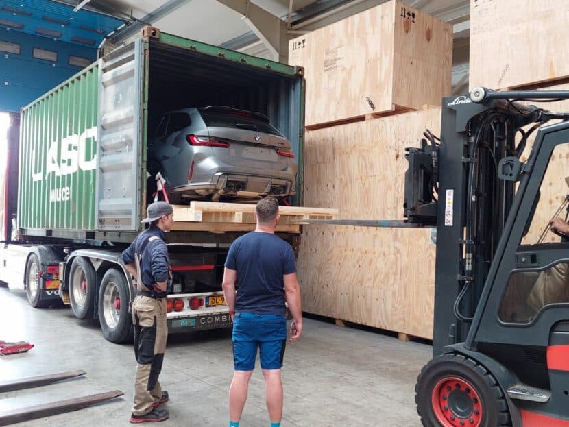 Shipped all the way from Switzerland, the performance wagon painted in Skyscraper Grey has Silverstone/Black leather. BMW doesn’t offer a carbon fiber roof option on the M3 Touring as only the M3 Sedan (and even the M340i/M340d Sedan) can be ordered with the lightweight panel.