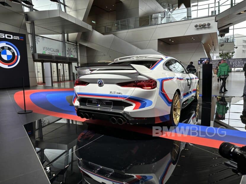 As for the interior, it largely retains the M4 CSL’s two-seat layout with the previous-generation iDrive, but with a white gear shifter knob and a third pedal. As expected, the 3.0 CSL is individually numbered as each car comes with a special plaque denoting its spot in the production sequence. Over 100 people work on these cars and fit them with an Alcantara-wrapped steering wheel, an anthracite headliner, and matte carbon trim.