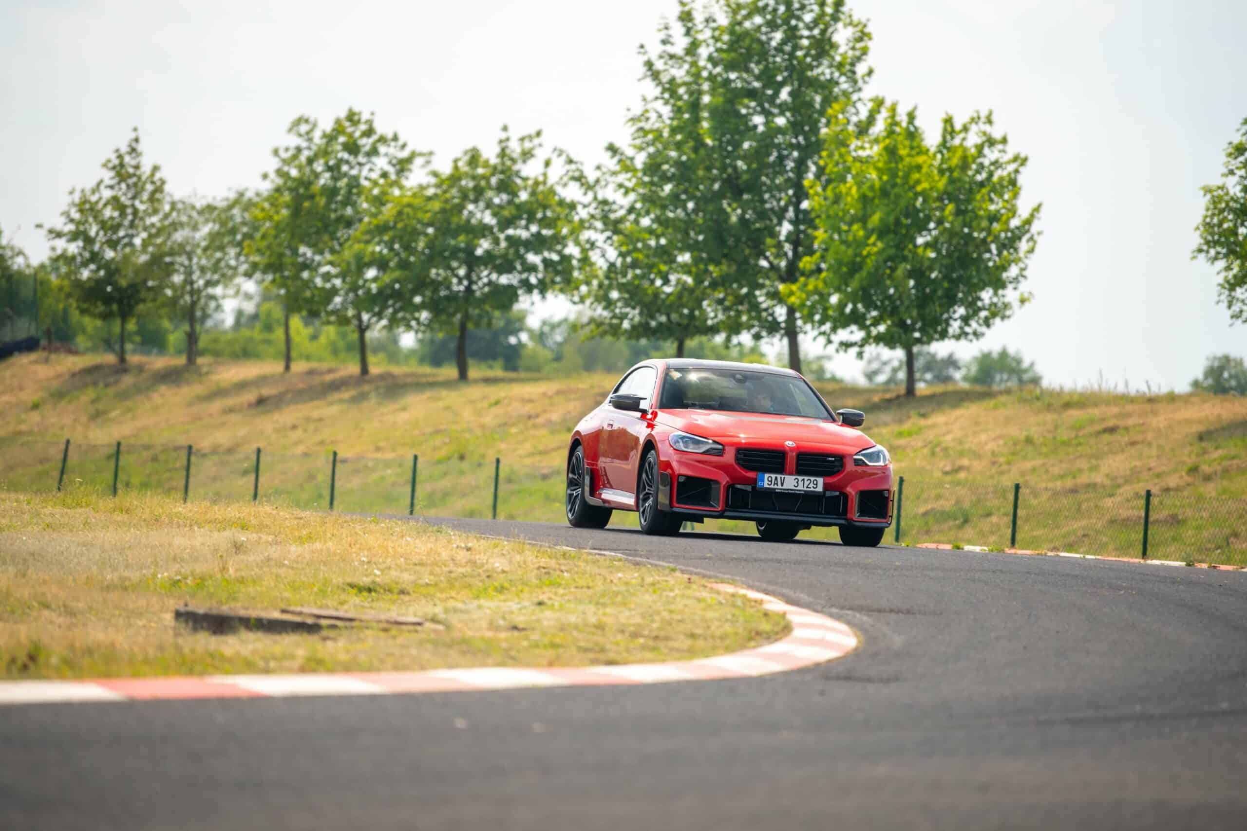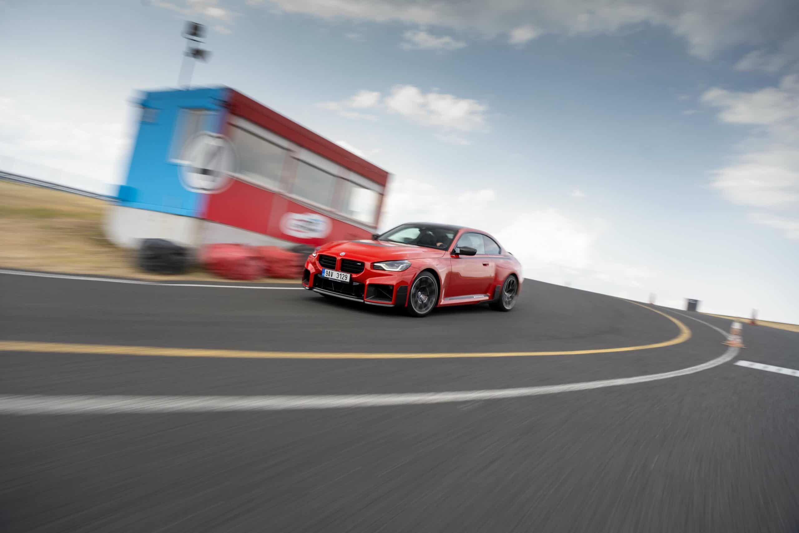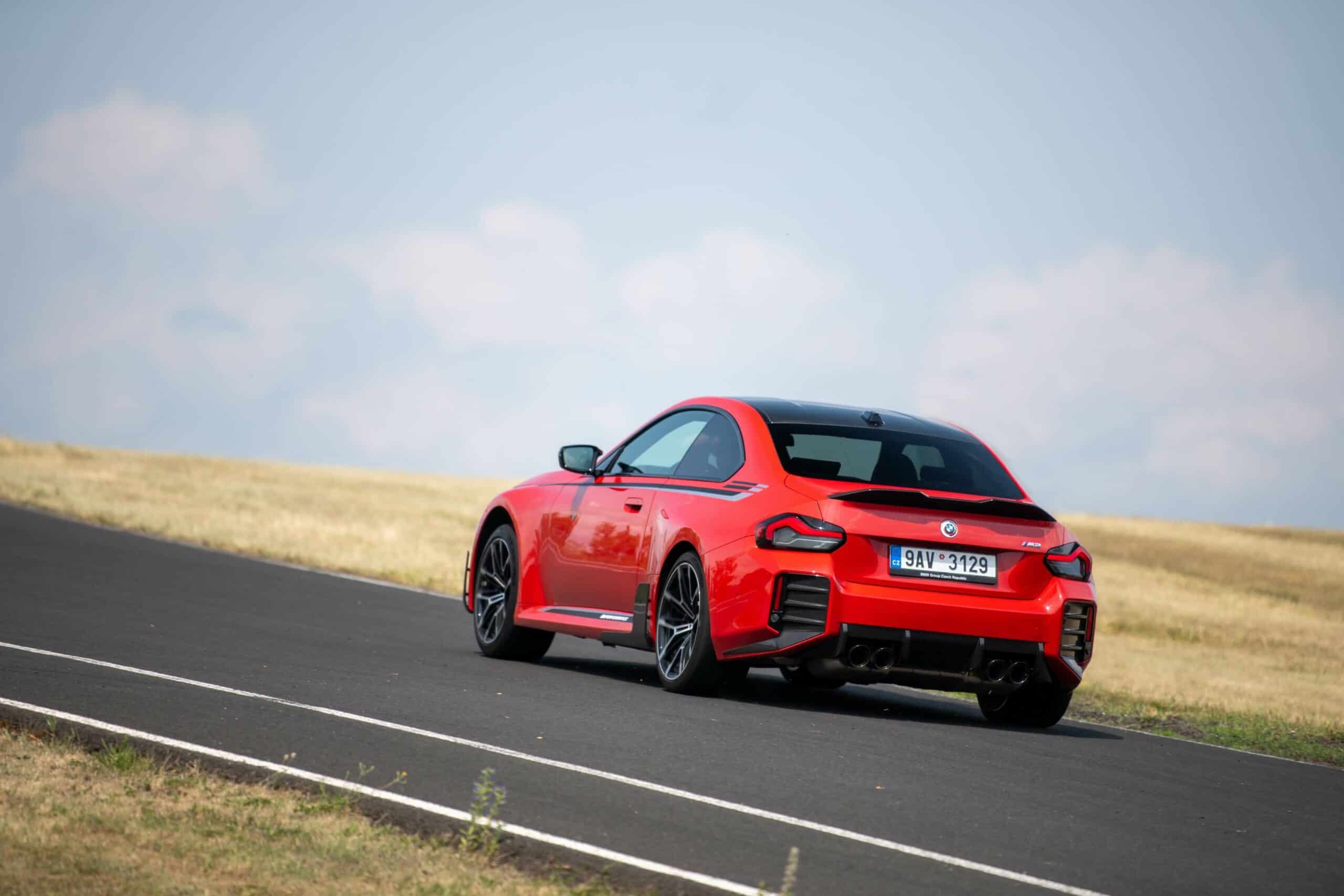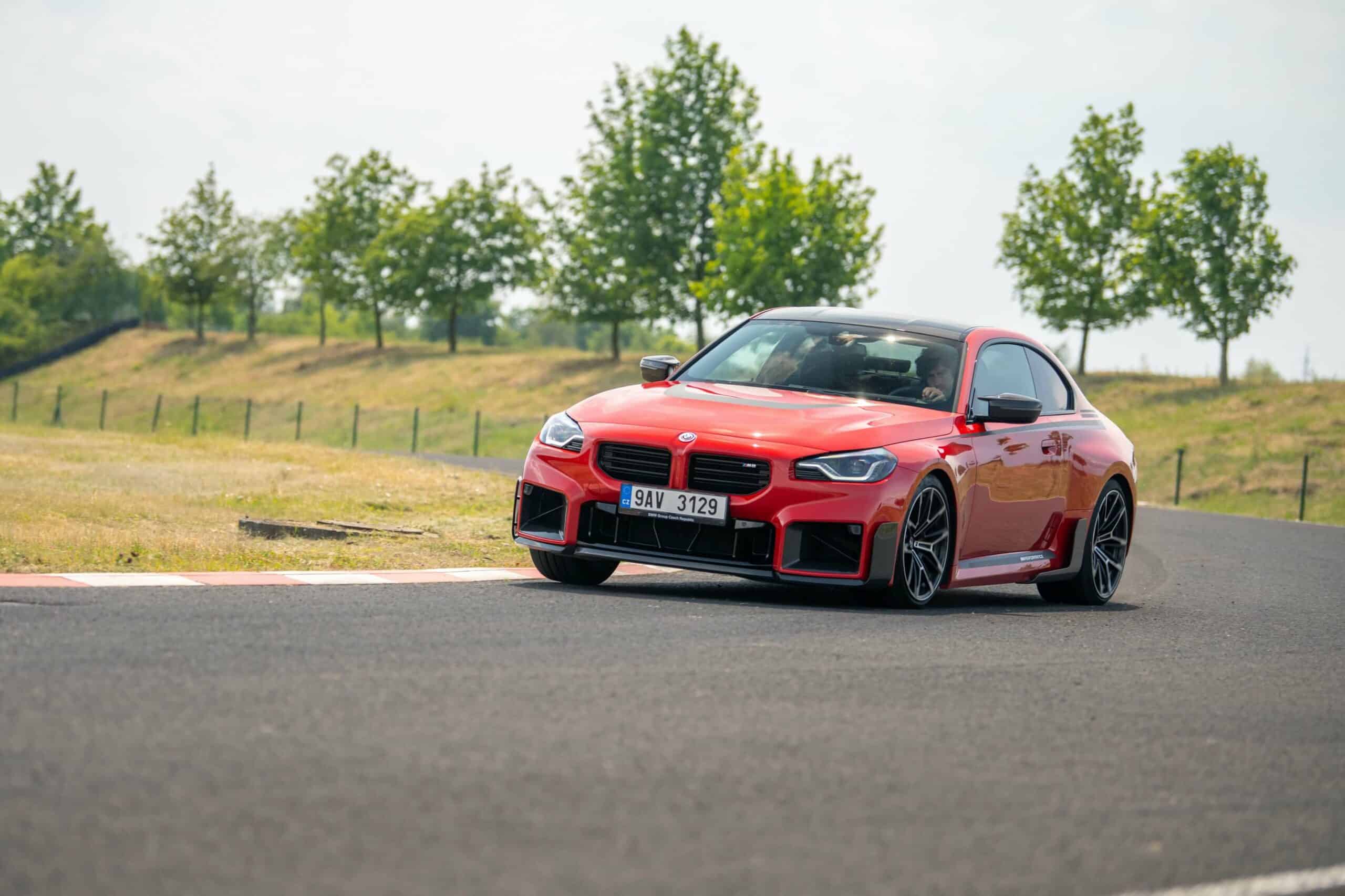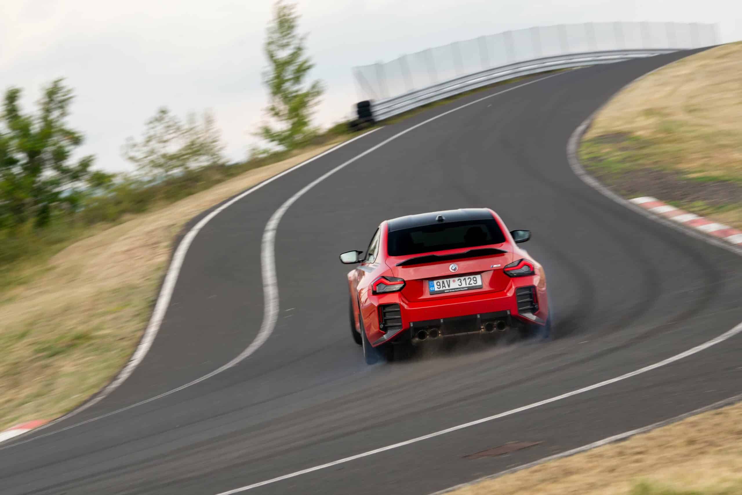 Photographed going sideways in the Czech Republic at the Autodrom Most, the new M2 is chock-full of MPP goodies. Save for the center-mounted exhaust tips and the roof spoiler, it has nearly all the other items. It boasts carbon fiber side spats along with a chunky trunk lid spoiler made from the same material. The front air intakes and spoiler lip are also from carbon fiber to complement the carbon roof and side mirror caps.