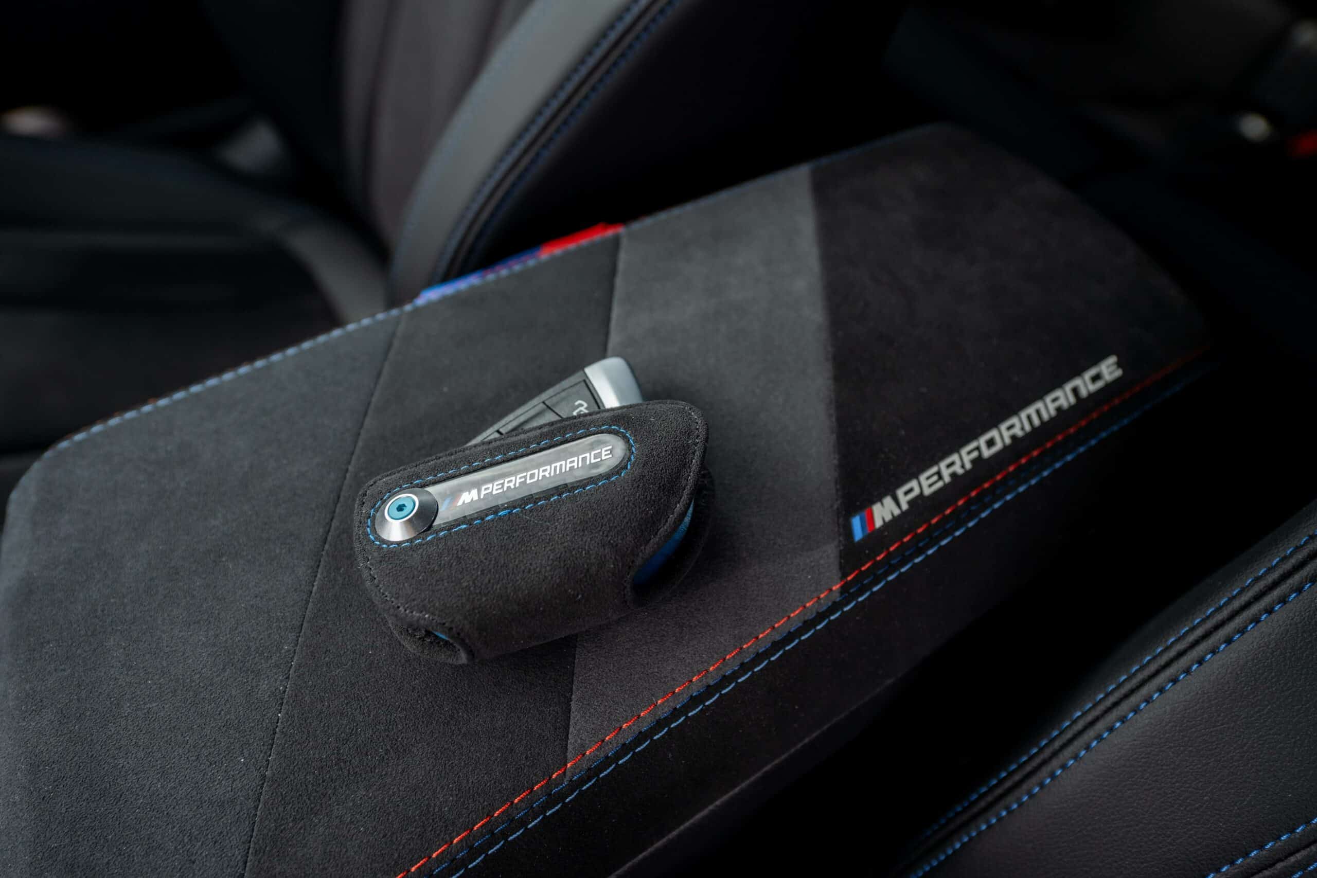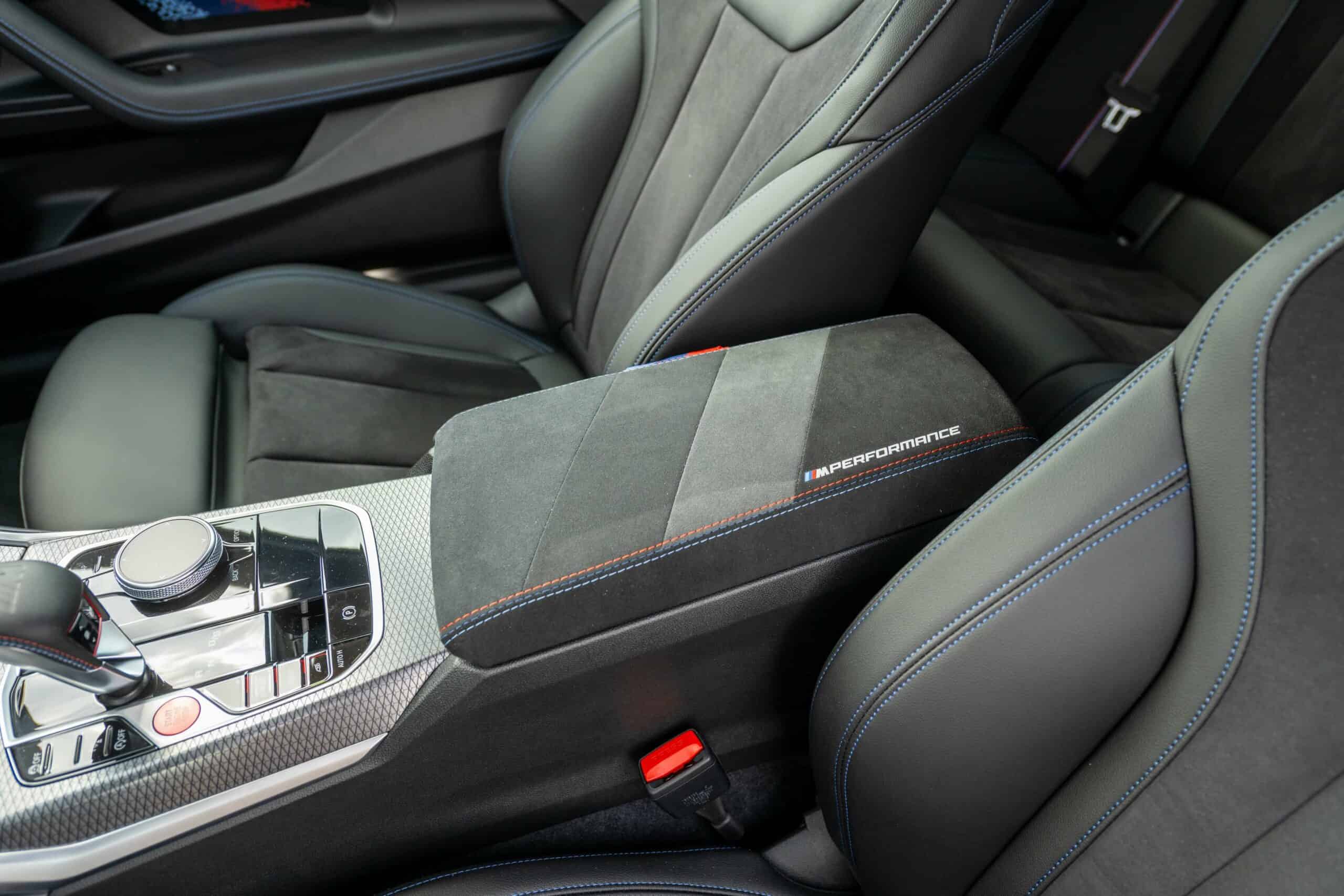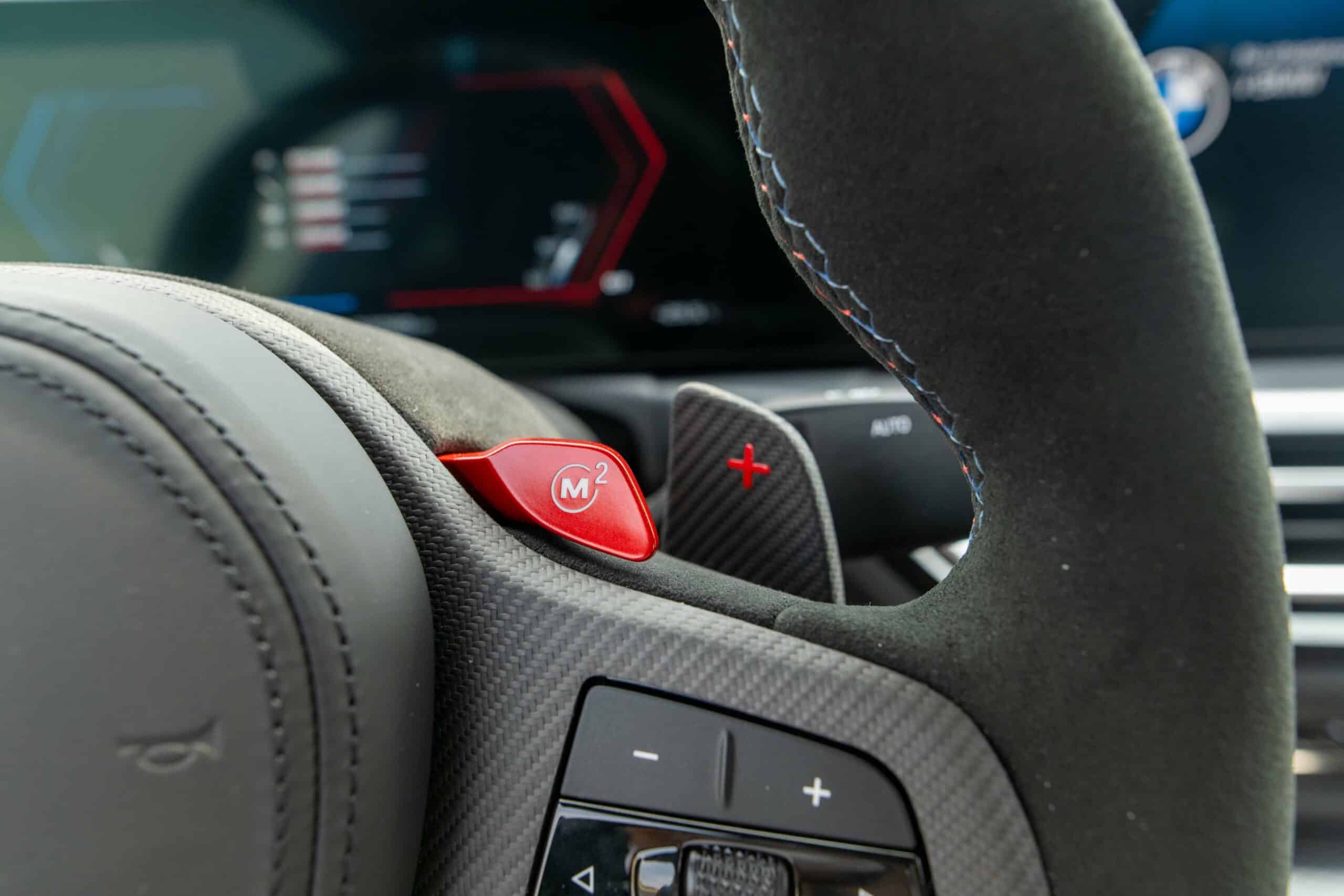 Don’t go into thinking M Performance Parts are limited to the exterior because this G87 with the automatic transmission also has quite a few upgrades inside. Alcantara was used to wrap the central armrest, parts of the steering wheel, and even the key holder. BMW also put M-branded door lock pins along with some extra carbon fiber you don’t get on the regular M2.