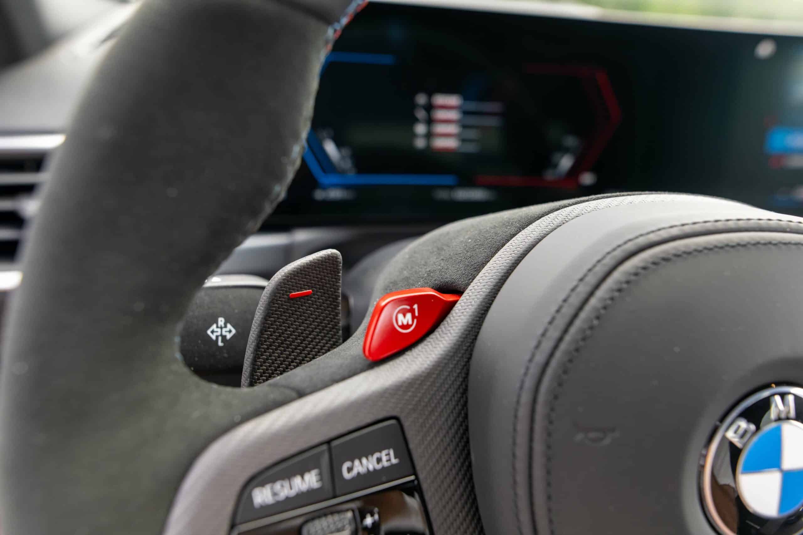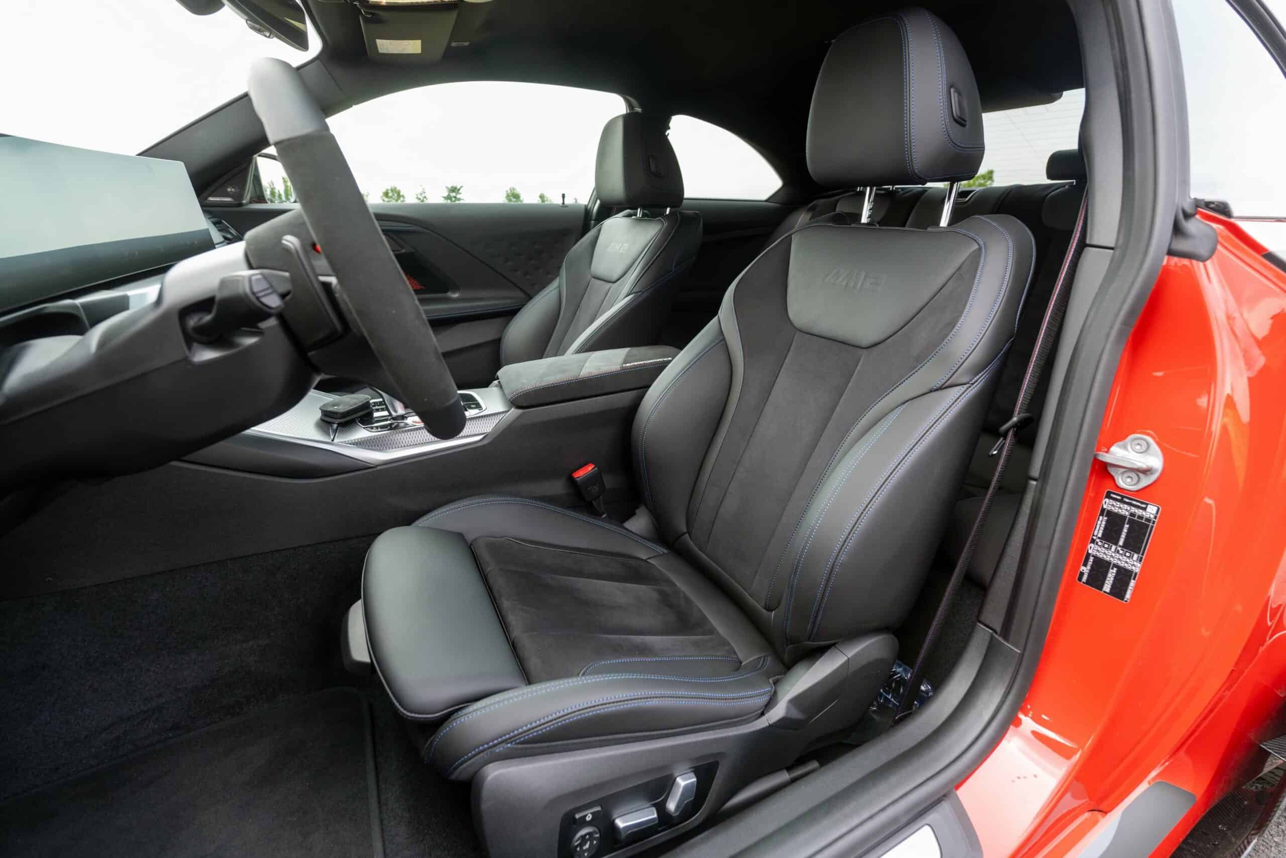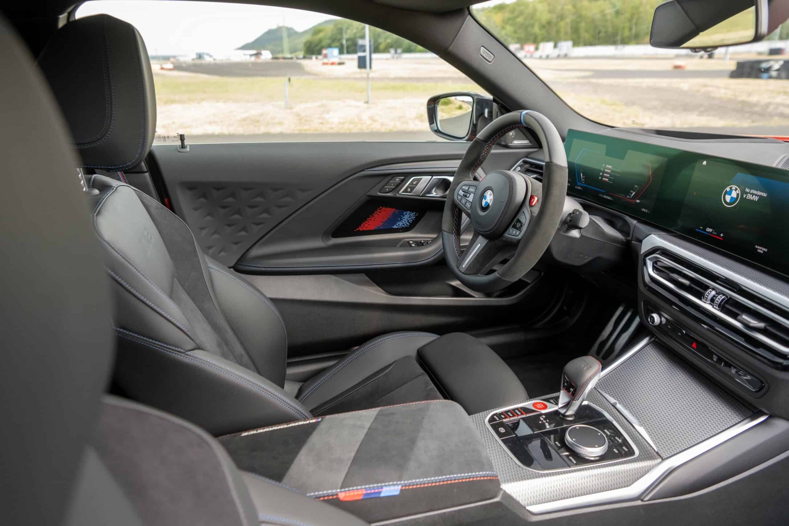 Don’t go into thinking M Performance Parts are limited to the exterior because this G87 with the automatic transmission also has quite a few upgrades inside. Alcantara was used to wrap the central armrest, parts of the steering wheel, and even the key holder. BMW also put M-branded door lock pins along with some extra carbon fiber you don’t get on the regular M2.