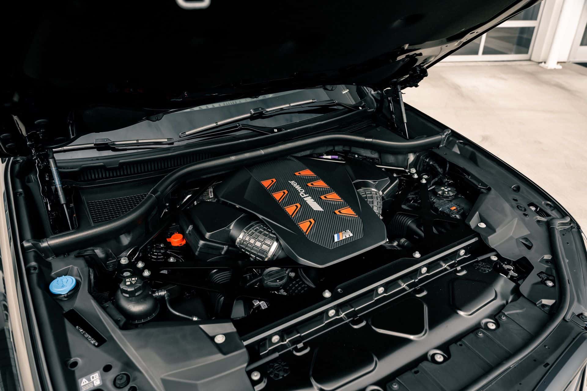 As standard, the X5 M now gets Extended Shadowline Trim and M Shadowline Lights as standard equipment in the United States, lending this Sapphire Black build a menacing appearance. Under the hood is the new S68 engine, a mild-hybrid 4.4-liter V8 shared with the XM. In this application, it packs 617 horsepower and 553 pound-feet sent to the xDrive system via an eight-speed M Steptronic transmission featuring an integrated electric motor good for an extra 12 hp and 147 lb-ft.