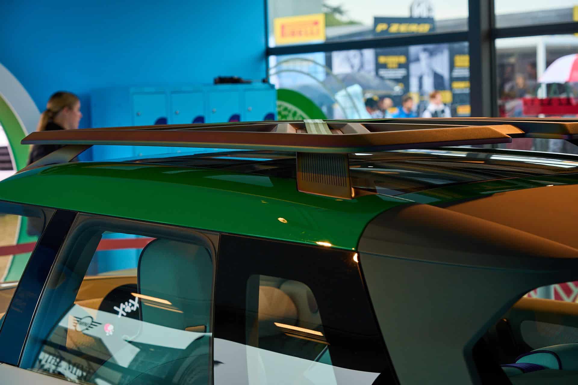 The MINI ACEMAN’s side profile exudes a rugged charm, thanks to its almost square wheel arches that are adorned with plastic cladding. This clever use of cladding adds a touch of toughness to the overall design. Contributing to its striking presence are the 20-inch wheels, which enhance the car’s silhouette, giving it an imposing stance.