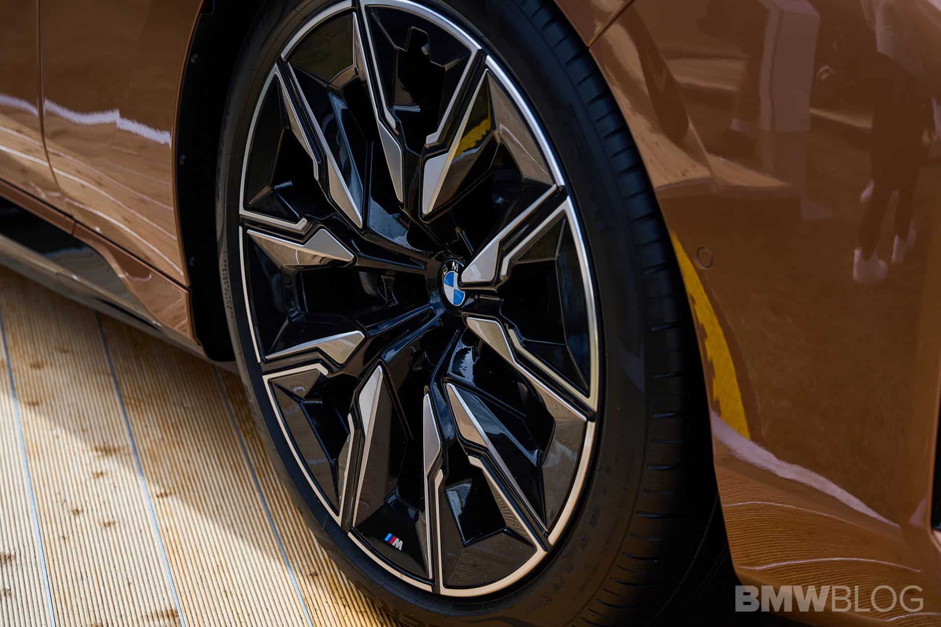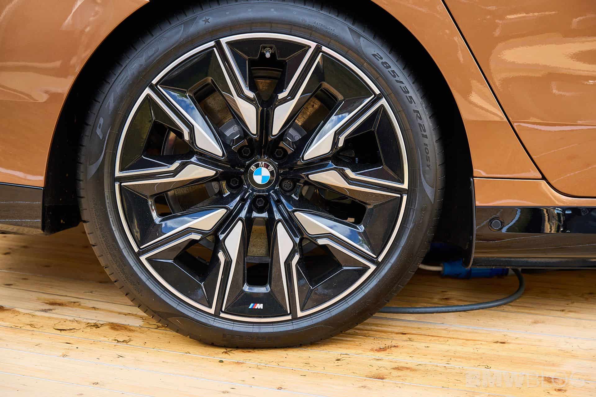 Look closer and you’ll notice the two contrasting colors are separated by a discreetly applied coachline Ă la Rolls-Royce. If this finish doesn’t tickle your fancy, the i7 M70 is offered in more than 100 Individual colors, including eight two-tone options as well as matte (Frozen) paints using made from biomass instead of crude oil. BMW chose to show off the sporty zero-emission 7er with 21-inch wheels (909 M style) featuring a bi-color finish.