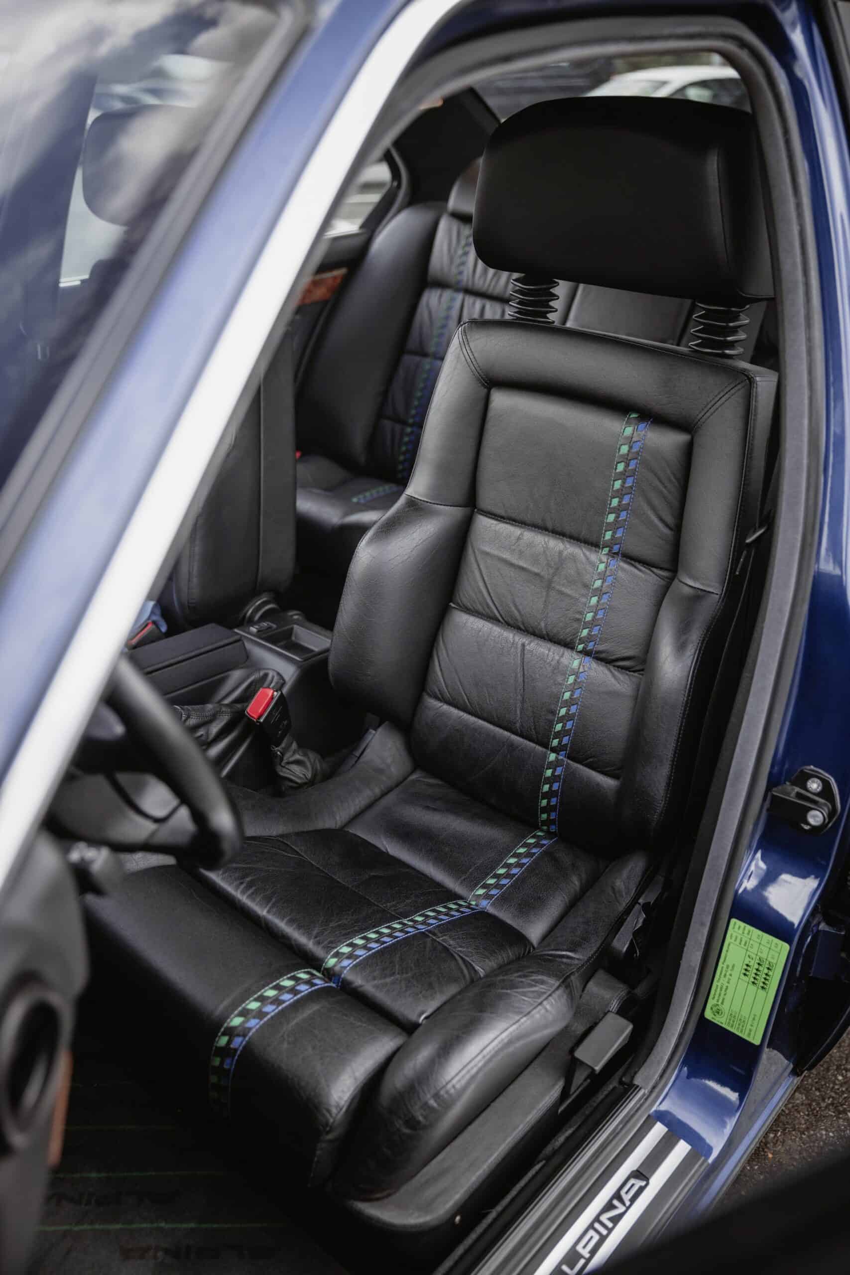 Even though it cost nearly twice the price of an M5 E34, the B10 Bi-Turbo became ALPINA’s best-selling product up to that point. Of the 507 cars made, the last 50 units can be visually distinguished by their wider kidney grille inspired by the V8-powered models. These cars also had the updated side mirrors, a different rear spoiler, leather (instead of cloth) upholstery, and a blue look for the instrument cluster dials – as seen in the adjacent images taken in Zandvoort where the B5 GT was presented to members of the media.