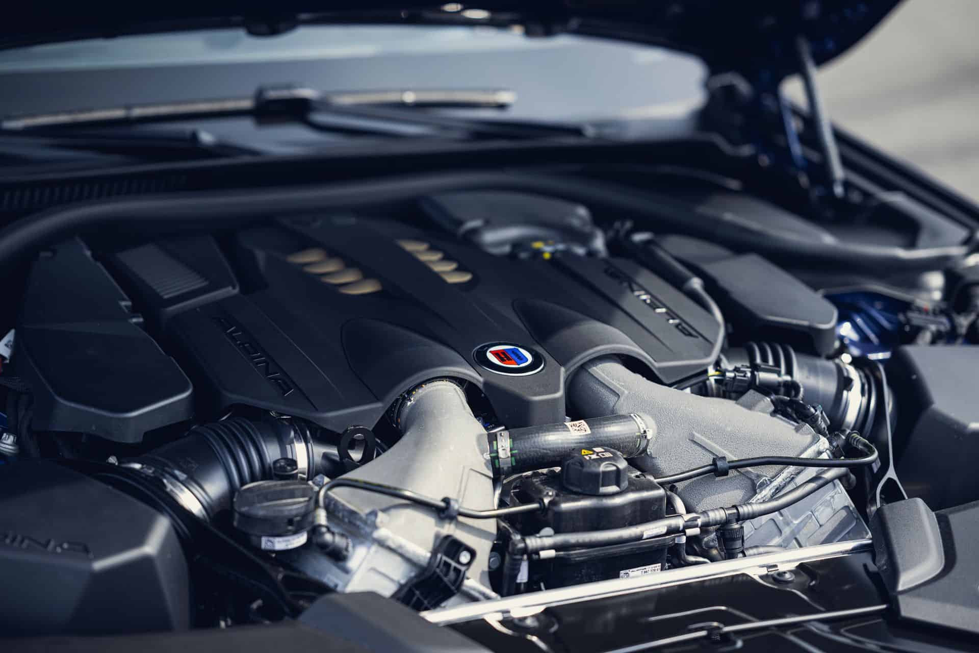 The GT also received a new dome-bulkhead-strut, which serves as a front-end reinforcement, improving steering precision and feedback, and a set of enhanced brake pads fitted to the ALPINA brake system, which consists of four-piston fixed brake calipers from Brembo with brake discs of 395×36 mm diameter on the front axle and floating brake calipers with brake discs of 398×28 mm diameter on the rear axle.
