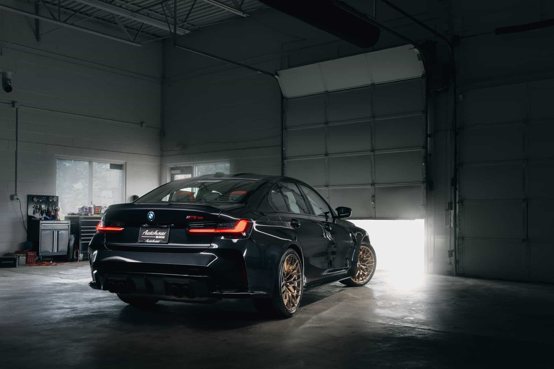 BMW offers the new G80 M3 CS in four distinct colors. The optional BMW Individual Frozen Solid White metallic paint is exclusive to the M3 CS. Brooklyn Grey metallic, Black Sapphire metallic, and BMW Individual Signal Green are also available. While all great colors, there is one that’s closer to our heart: Black Sapphire Metallic. Autohaus BMW in St. Louis has a 2024 BMW M3 CS painted in Black Sapphire and as you can see in these photos, it’s an easy choice to make.