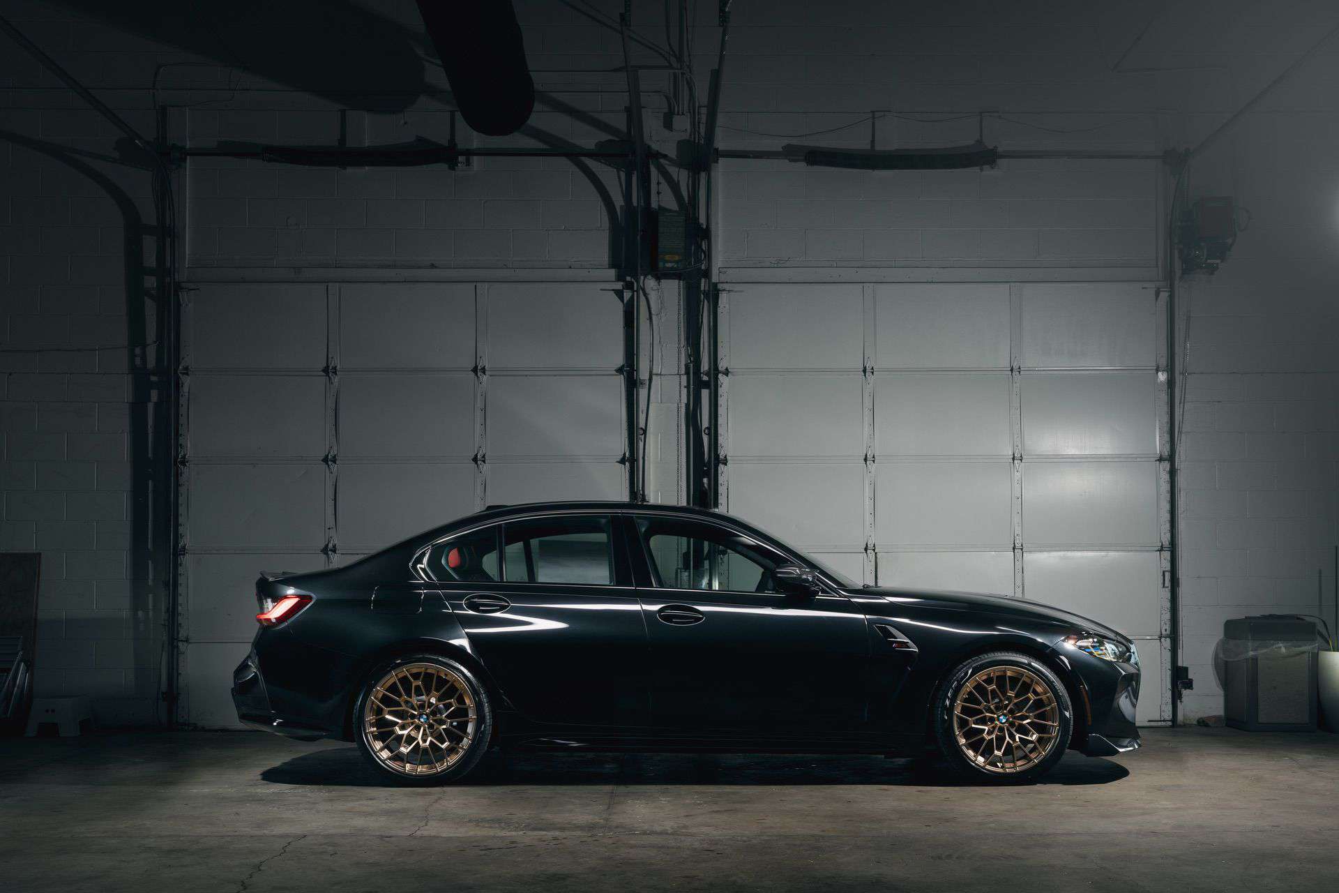The elegant black paint complements the M3 CS impeccably, harmonizing flawlessly with its striking red accents and even the gold-painted wheels. To complete this ideal pairing, the interior features exquisite Merino leather in black, tastefully adorned with Mugello red accents. Notably, the yellow headlights stand out even more intriguingly against the backdrop of the deep black paint job.