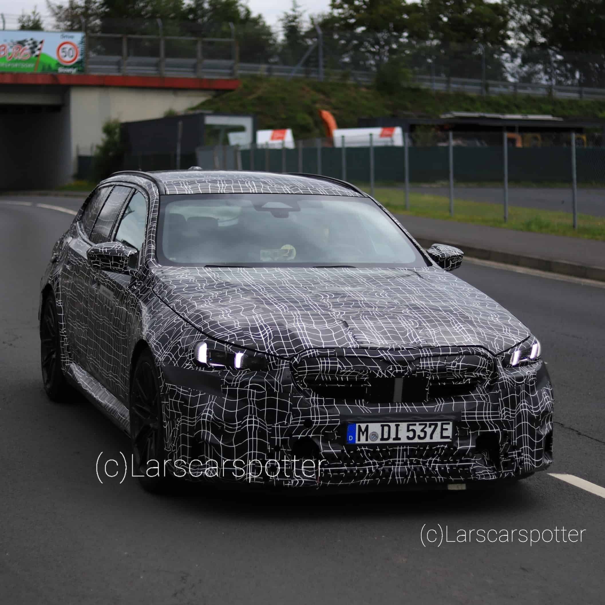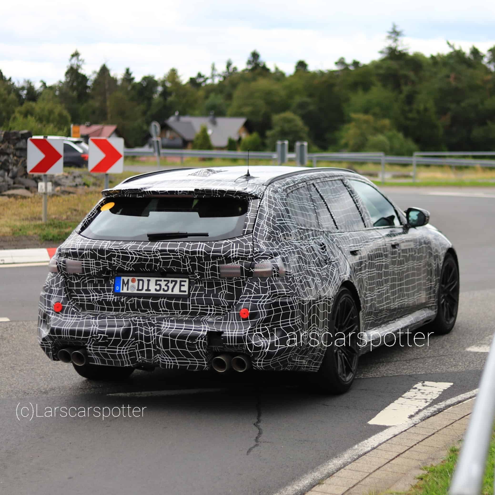 Today, we bring you the first spy photos of the 2025 BMW M5 Touring. A prototype of the upcoming sports wagon was spotted near the Nurburgring. Staying true to its M lineage, the forthcoming BMW M5 Touring (G99) adopts a wide body design that distinguishes it from the standard 5 Series lineup. As you expect, the rear fenders are wide, reating a clear and unique visual demarcation for the G90/G99 M5. These photos also show the G99 BMW M5 Touring cruises on 20-inch wheels in the front and impressive 21-inch wheels in the rear.