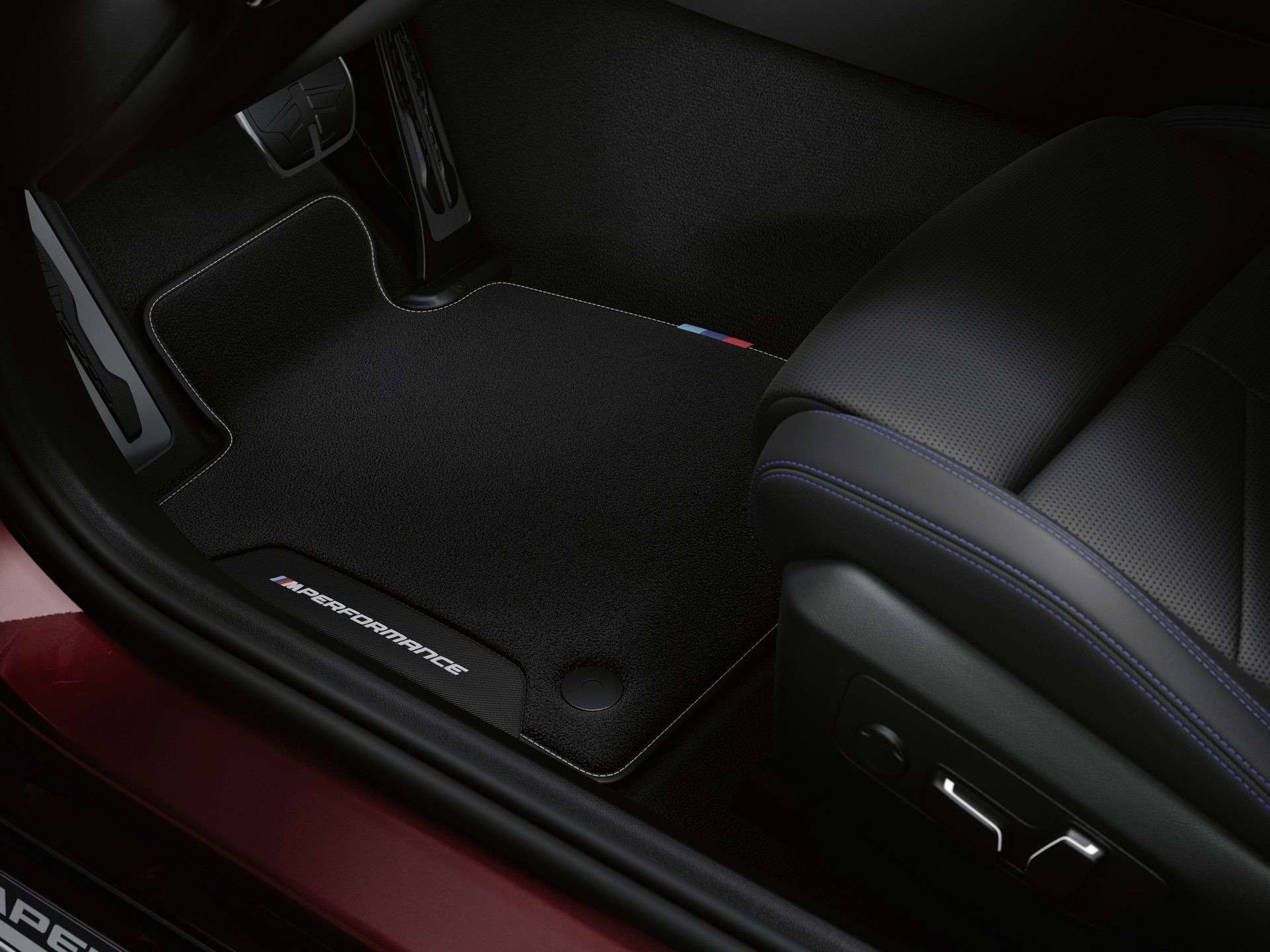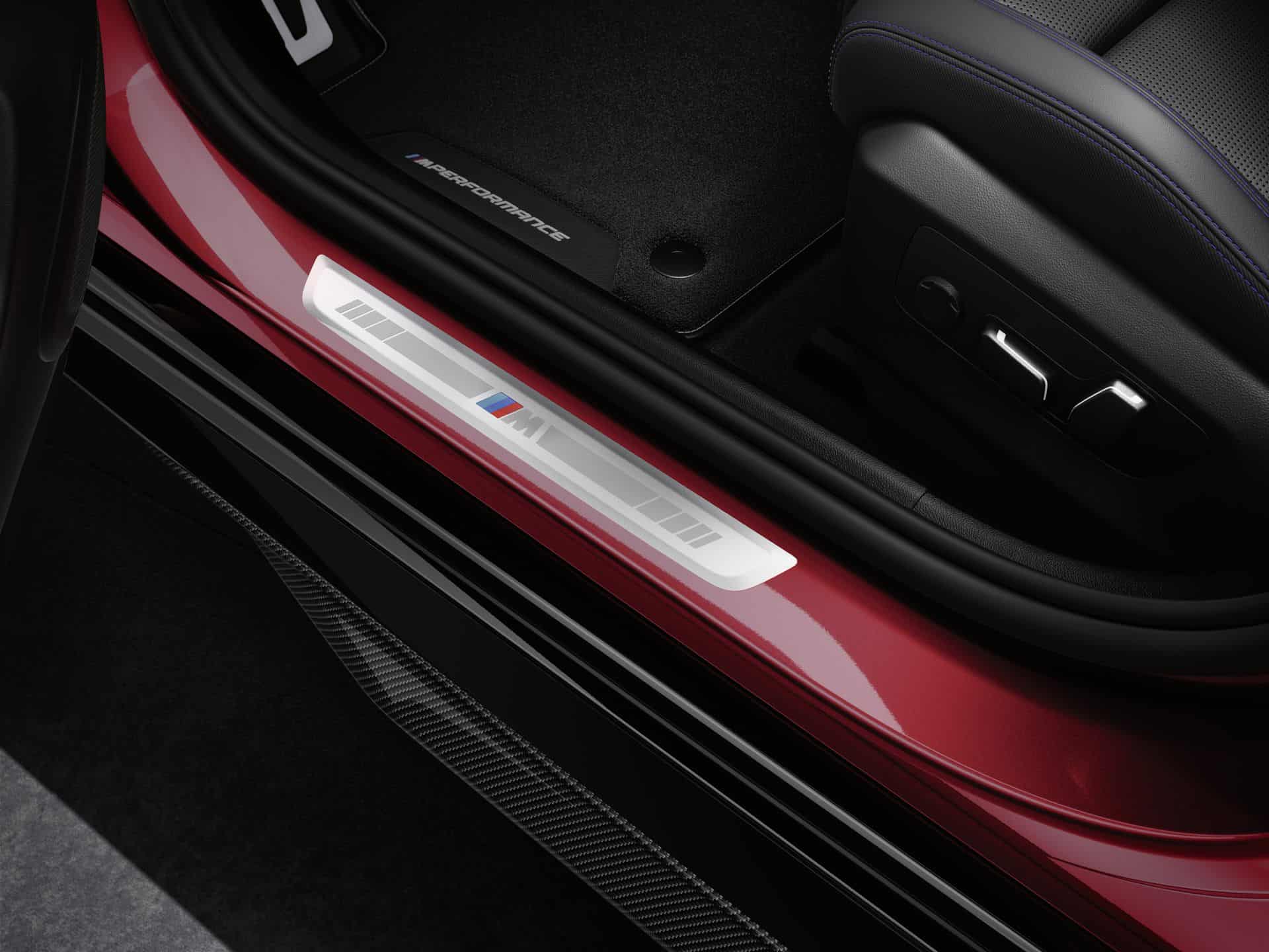 Inside, the M Performance Parts offering starts with Carbon door sill plates and velours floor mats, with synthetic leather edges and contrasting stitching. The front mats boast M Performance embroidery and the M colors. Owners of the new 5 Series and i5 will also get an M Performance key case, made of nappa leather with carbon fiber effect and Alcantara.