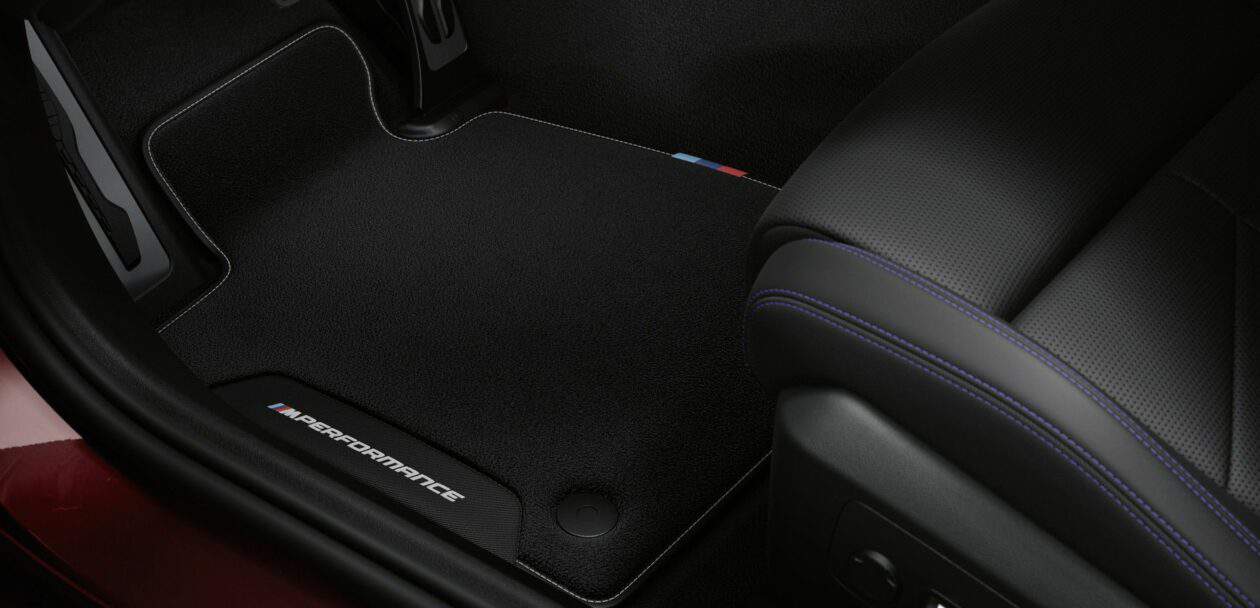 Inside, the M Performance Parts offering starts with Carbon door sill plates and velours floor mats, with synthetic leather edges and contrasting stitching. The front mats boast M Performance embroidery and the M colors. Owners of the new 5 Series and i5 will also get an M Performance key case, made of nappa leather with carbon fiber effect and Alcantara.