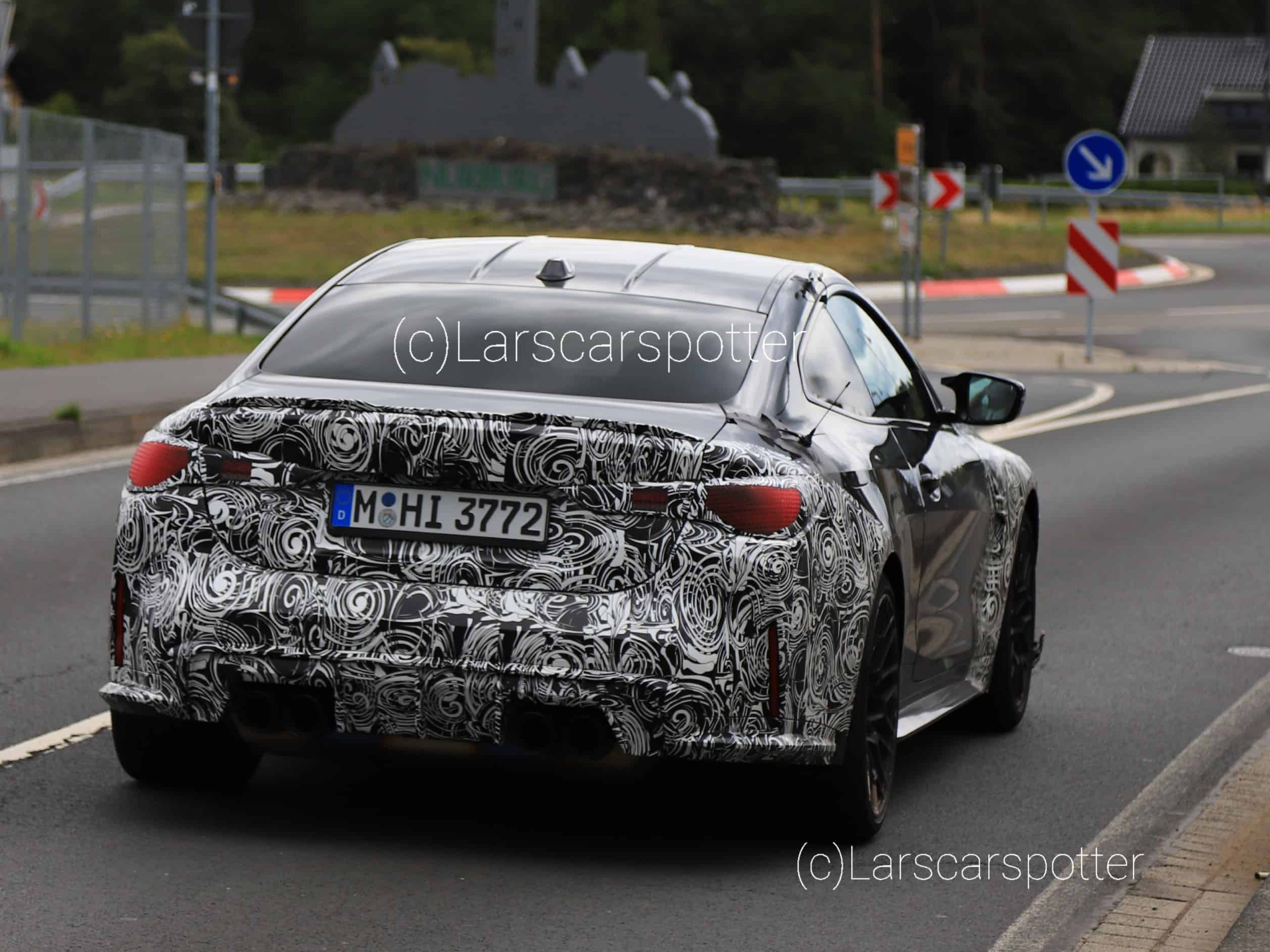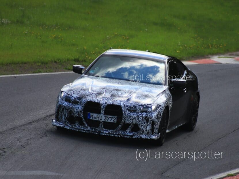 Speaking of which, we’ll remind you the M3 CS lost about 75 pounds compared to the M3 Competition xDrive and it should be a similar story with its coupe sibling. Even if this prototype caught at the Green Hell has the front and rear camouflaged, it’s easy to see the styling tweaks take after those BMW applied to the four-door model. The meaner-looking kidney grille and more aggressive bumper with an extended spoiler lip are derived from the M3 CS, which itself took inspiration from the M4 CSL.