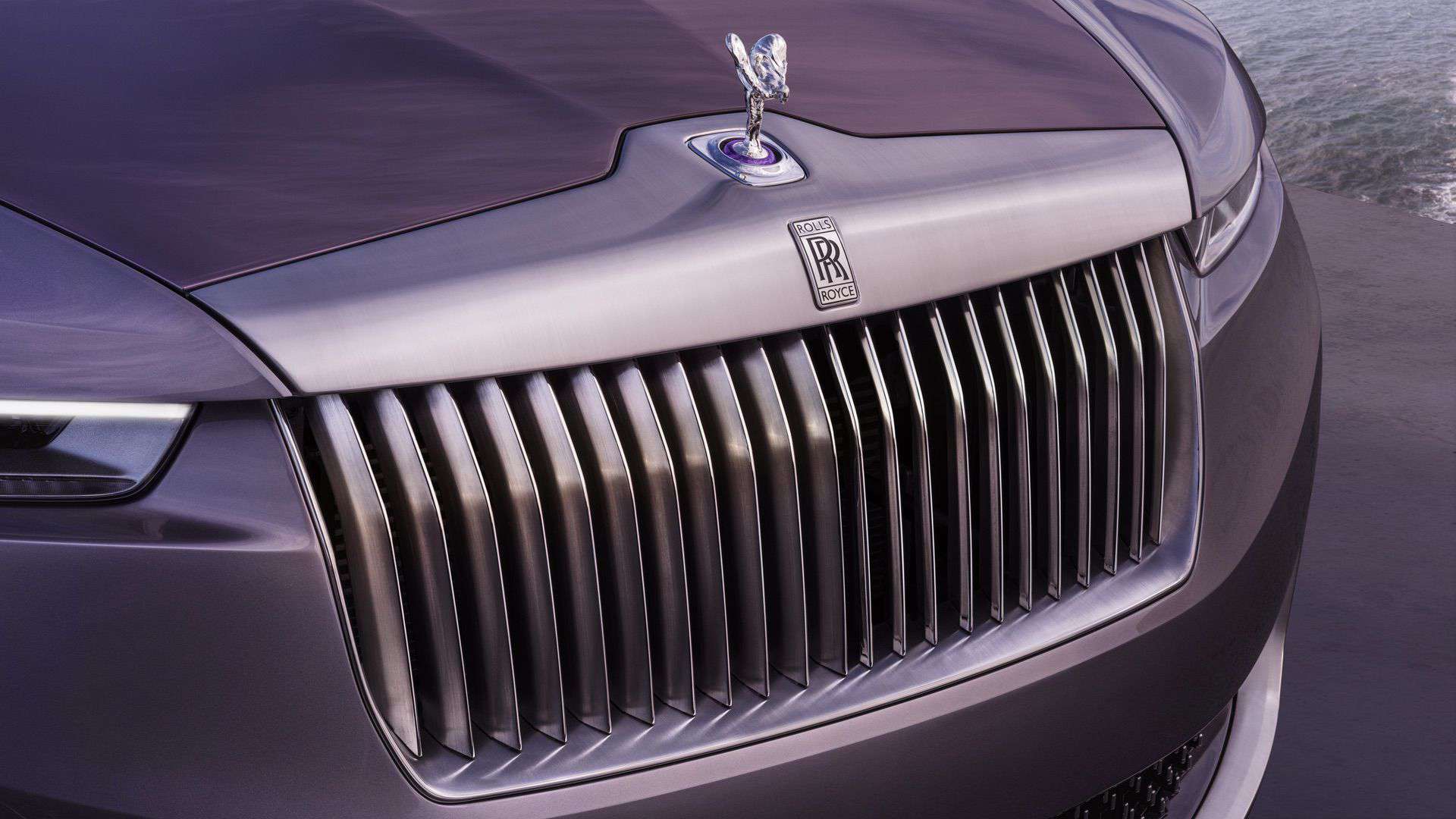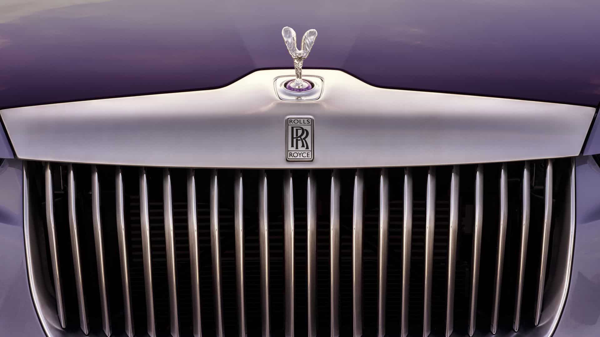 The Amethyst Droptail rides on 22-inch wheels with subtle body-colored accents contrasting the polished surface. At the front, this is the first Rolls-Royce to have a brushed and polished finish for the imposing Pantheon grille. As with the first Droptail car, the front grille has gently kinked vanes at the top. It took more than 50 hours to give the grille its unique look featuring a partially hand-brushed and partially hand-polished finish.
