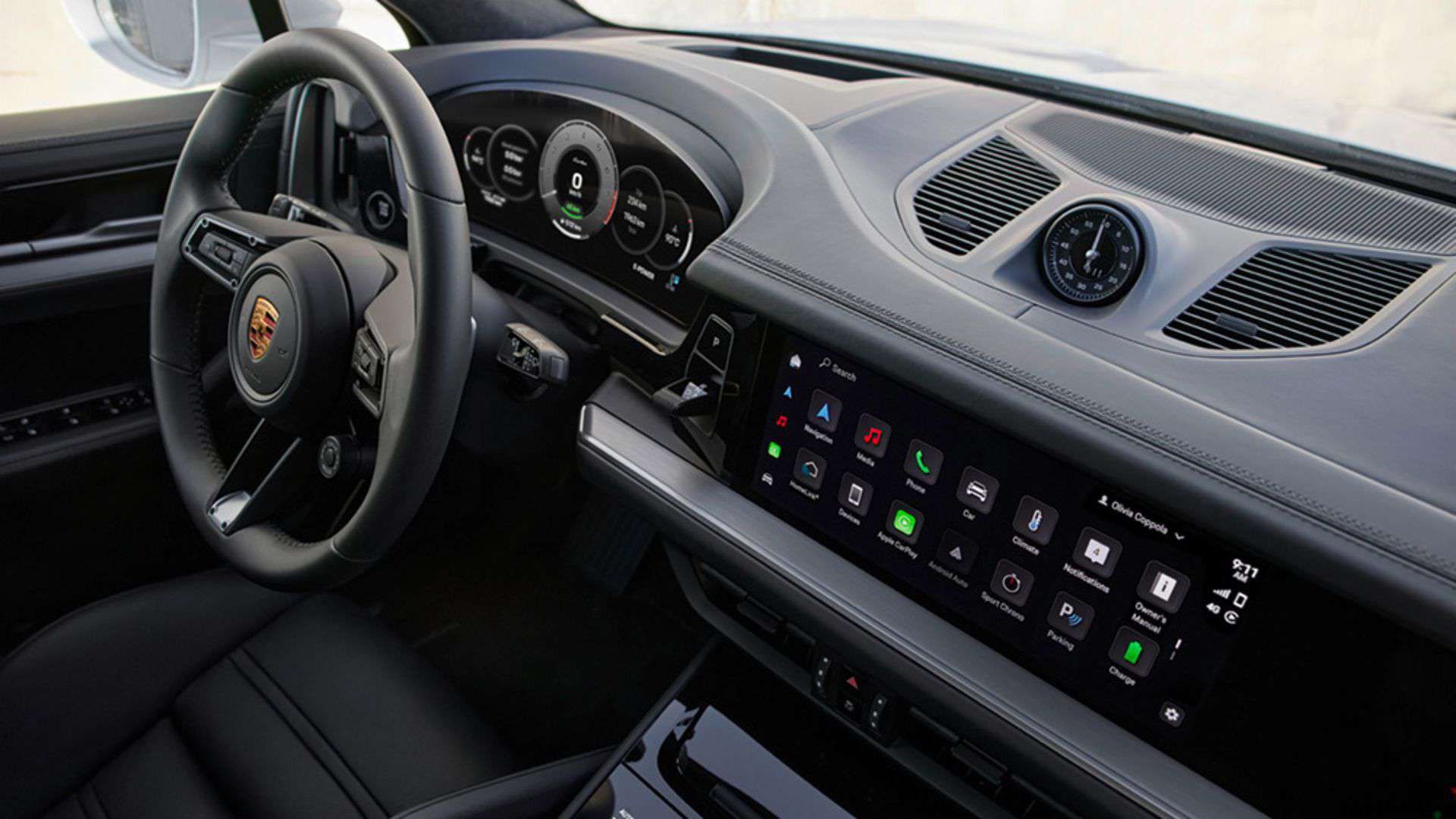 The electric motor in the Cayenne Turbo E-Hybrid now contributes a remarkable 174 horsepower, a substantial increase from its predecessor’s 134 horsepower. This immense power translates to blistering performance figures, with a claimed zero-to-60 mph time of 3.5 seconds and a top speed of 183 mph. Porsche’s commitment to hybrid technology is evident in the substantial improvement in battery capacity. The new Turbo E-Hybrid’s battery capacity has nearly doubled, going from 14.1 kWh to an impressive 25.9 kWh. This enhancement not only provides a longer electric-only range—estimated to be around 30 miles—but also reduces charging times due to the inclusion of an 11.0-kW onboard charger.