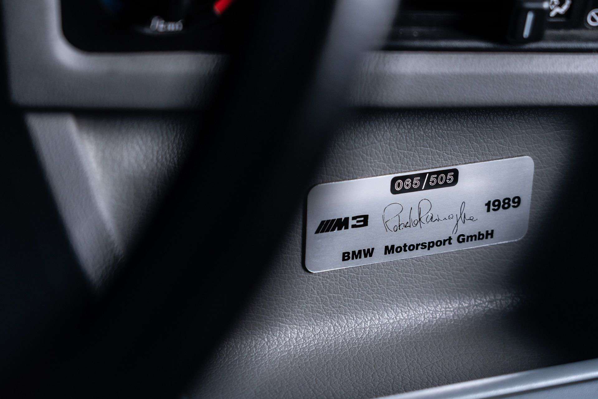 They were distinguished by their Misano Red paintwork, distinctive wheels, and body-color painted rocker cover and plenum. Each car also came with a plaque signed by Roberto Ravaglia, who won the World Touring Car Championship in the M3 in 1987 and the European Touring Car Championship in 1988.