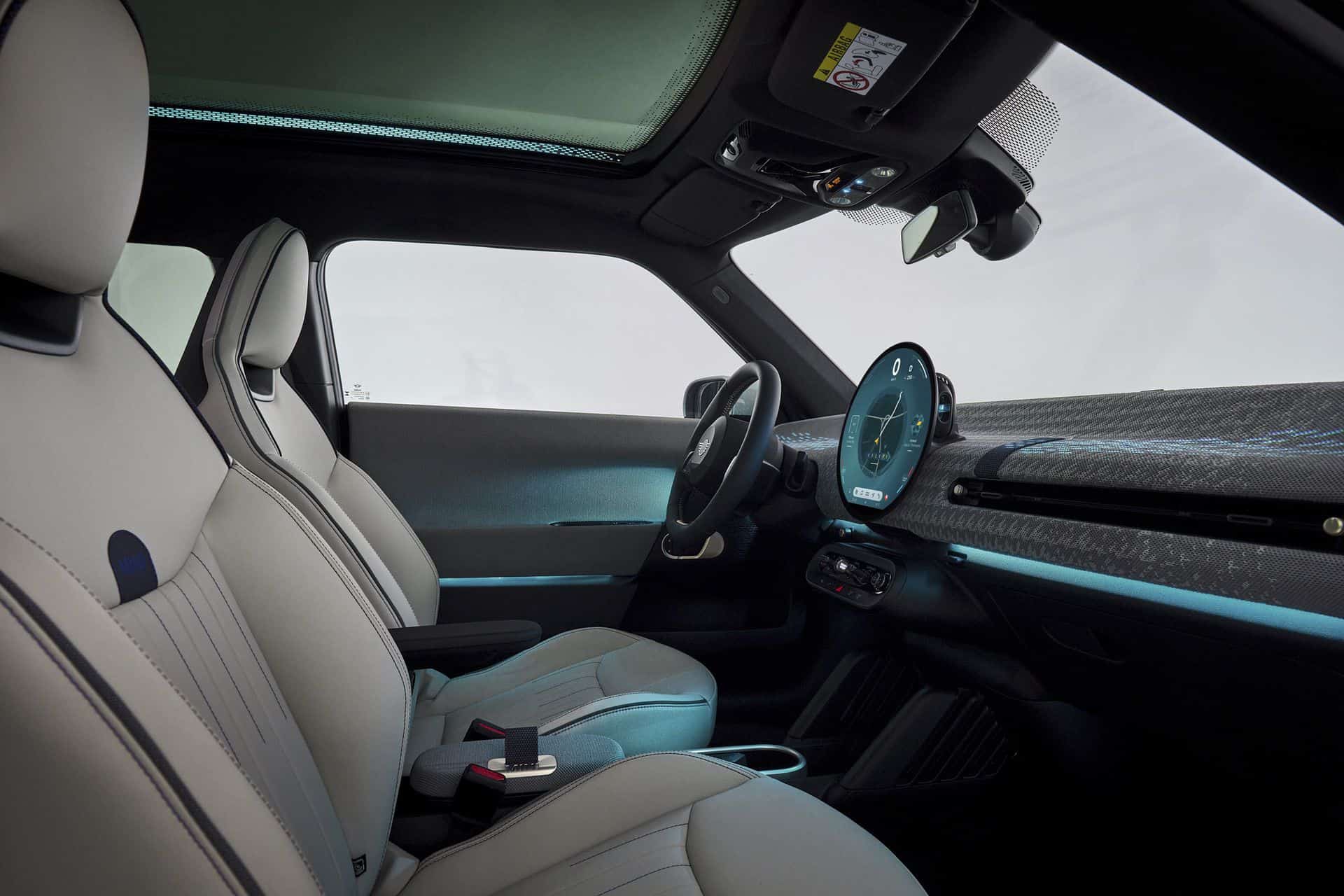 But the changes didn’t stop at the exterior. Inside the cabin, a complete redesign awaited, embracing the same minimalist ethos. The centerpiece of the interior was undoubtedly the circular OLED screen, measuring 9.4 inches in diameter. This innovative display served as the hub for an all-new infotainment system, running on the MINI Operating System 9.
